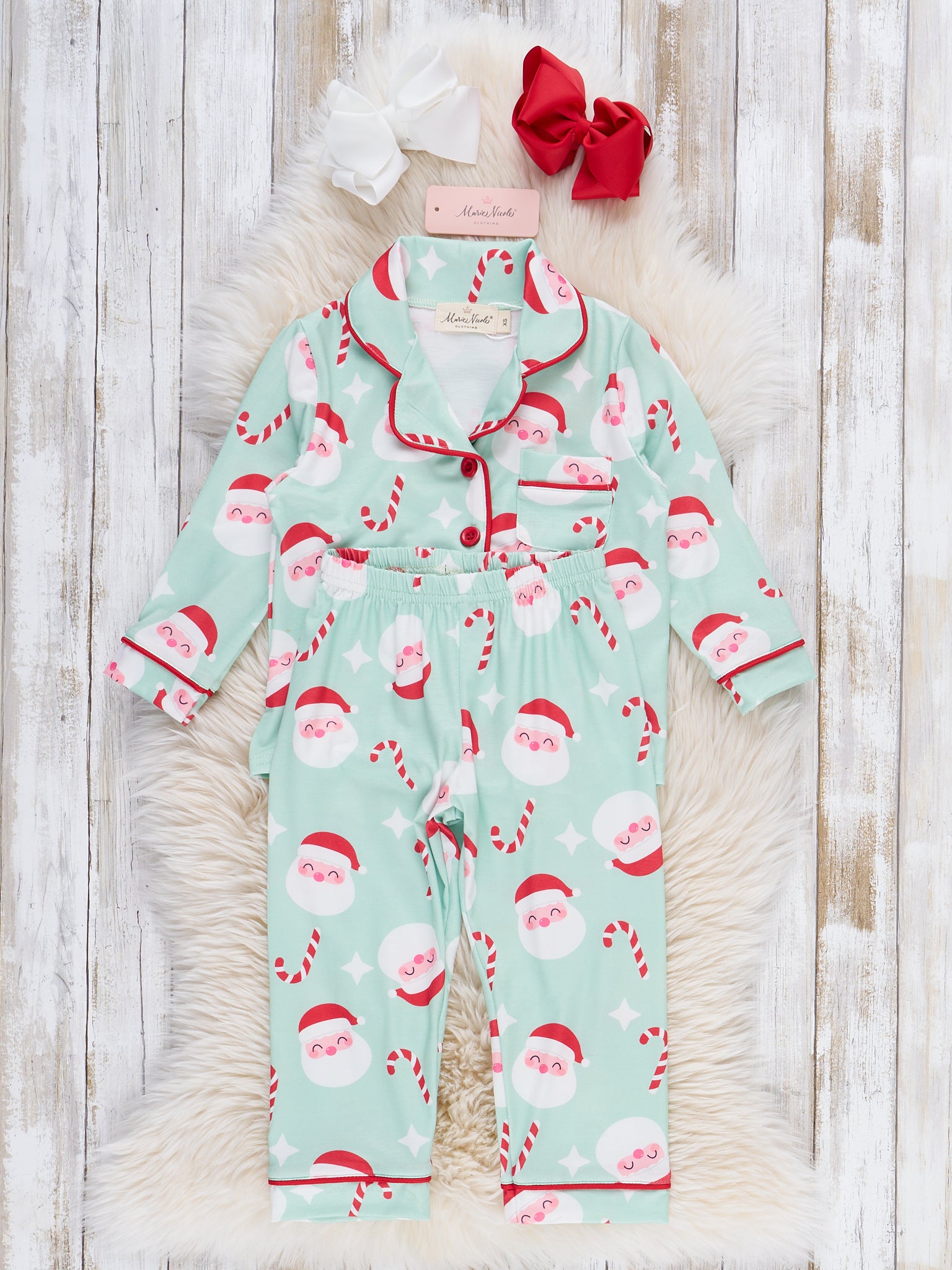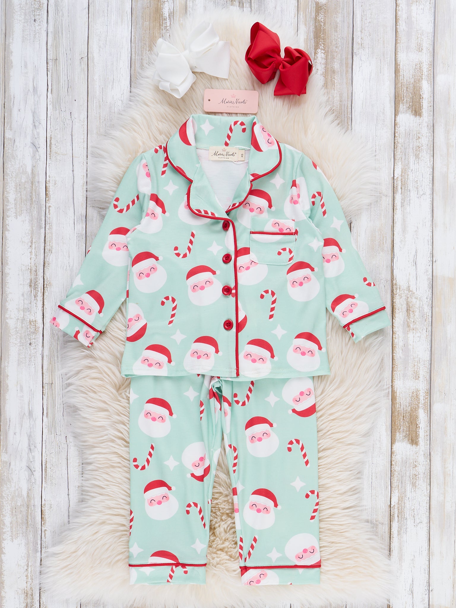Santa Treat Time Embroidered Footed Sleeper Pajamas