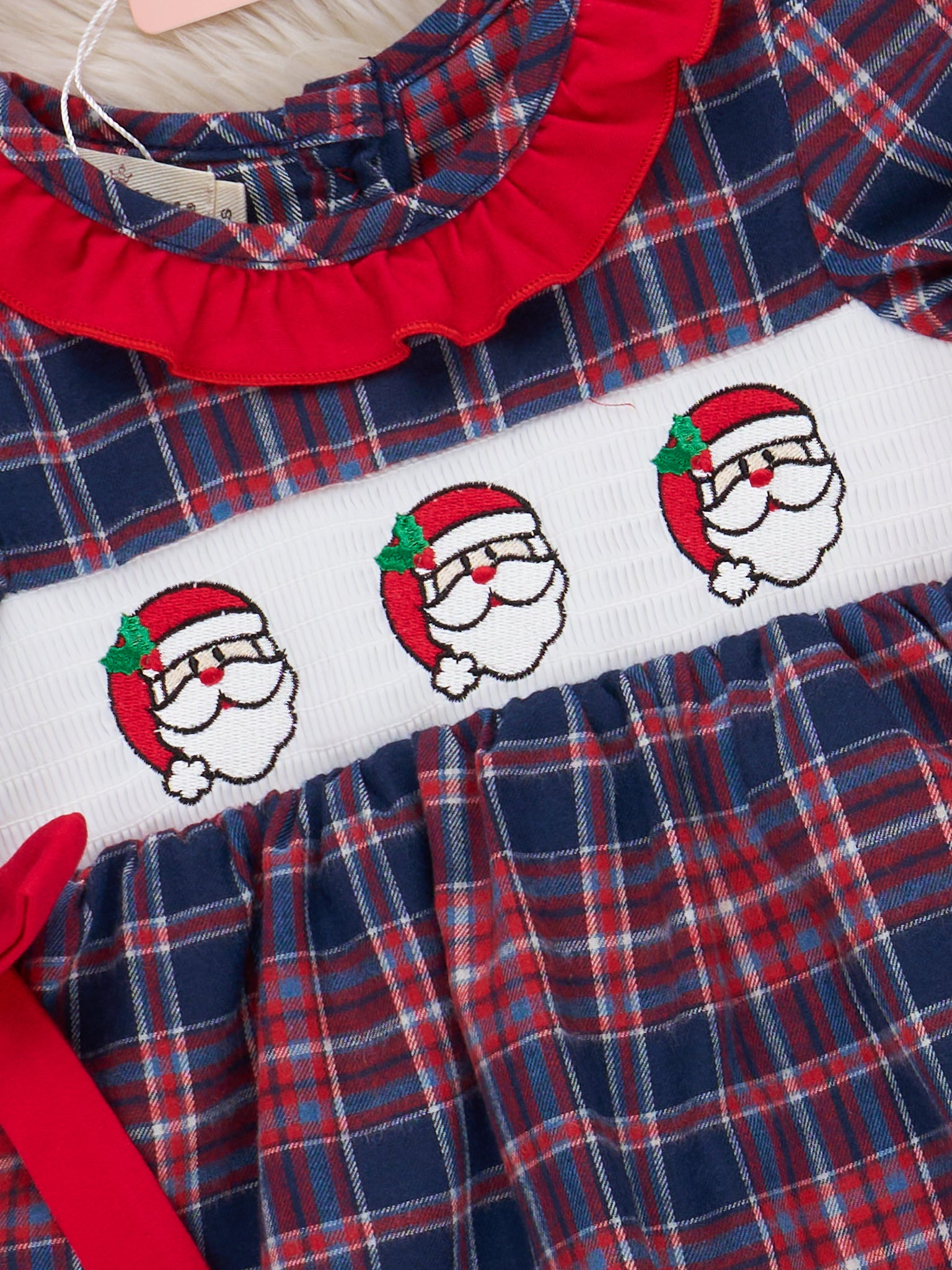Santa Spirit Smocked Ruffle Flannel Dress