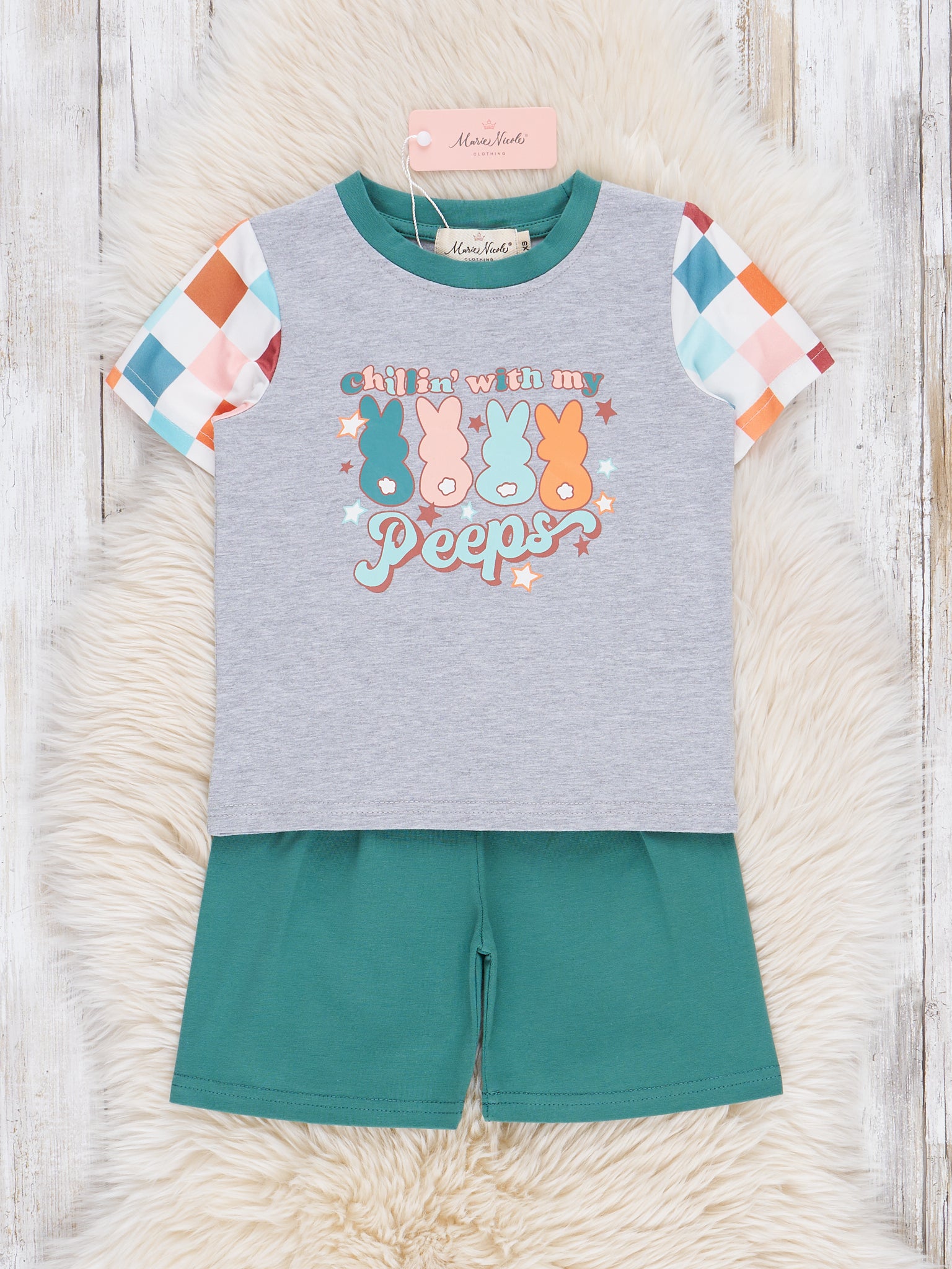 Pink & Green Gingham Embroidered T-Rex Ruffle Outfit