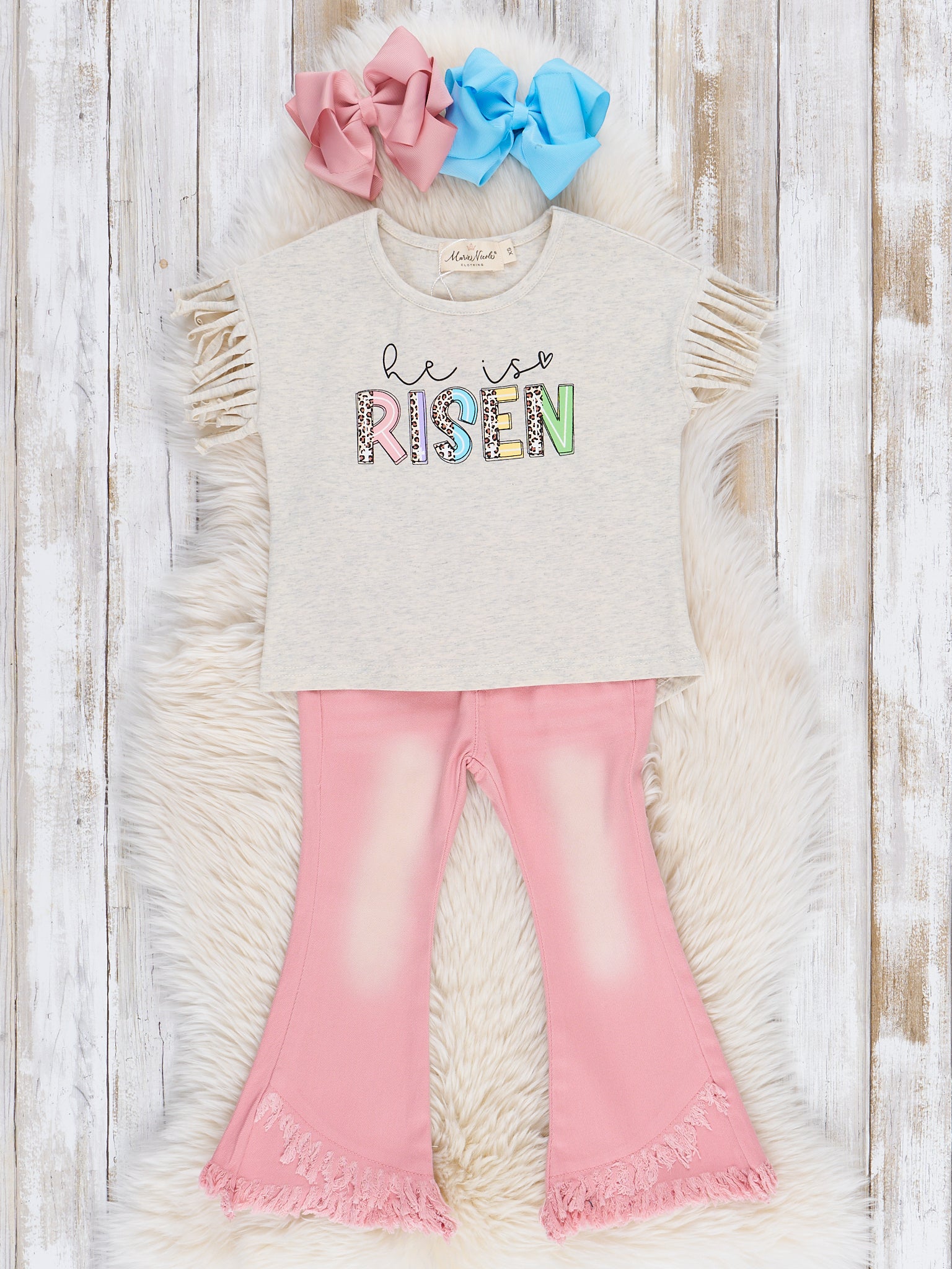 Pink Fringe "He is Risen" Outfit w/ Jeans