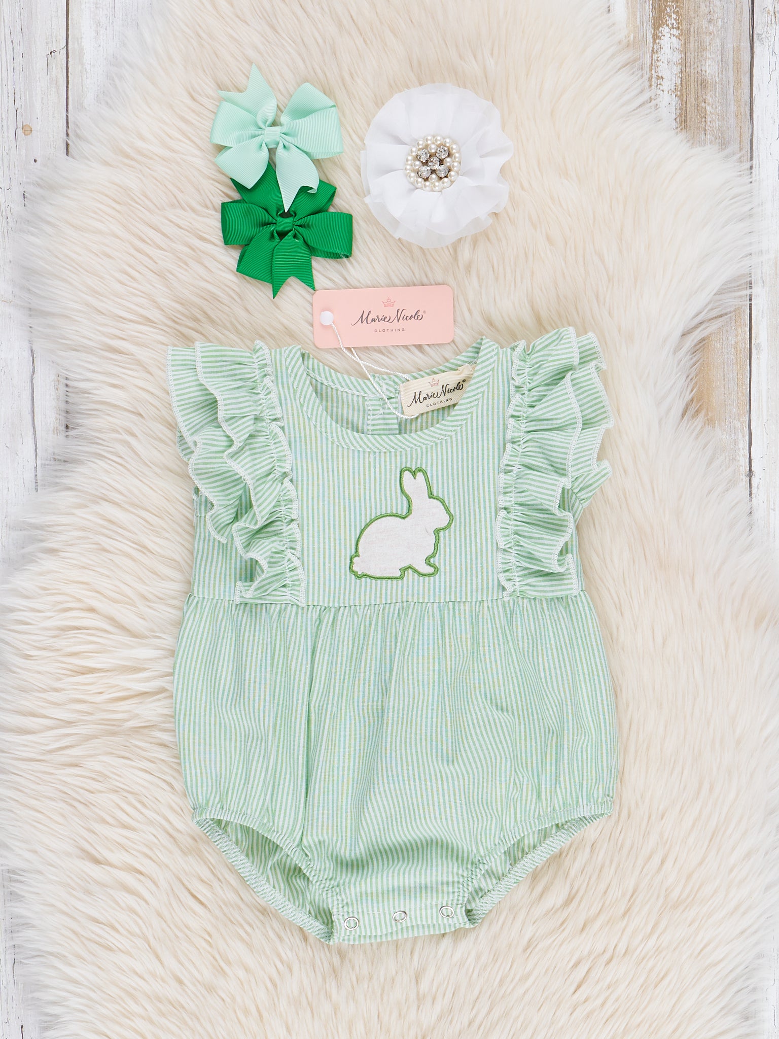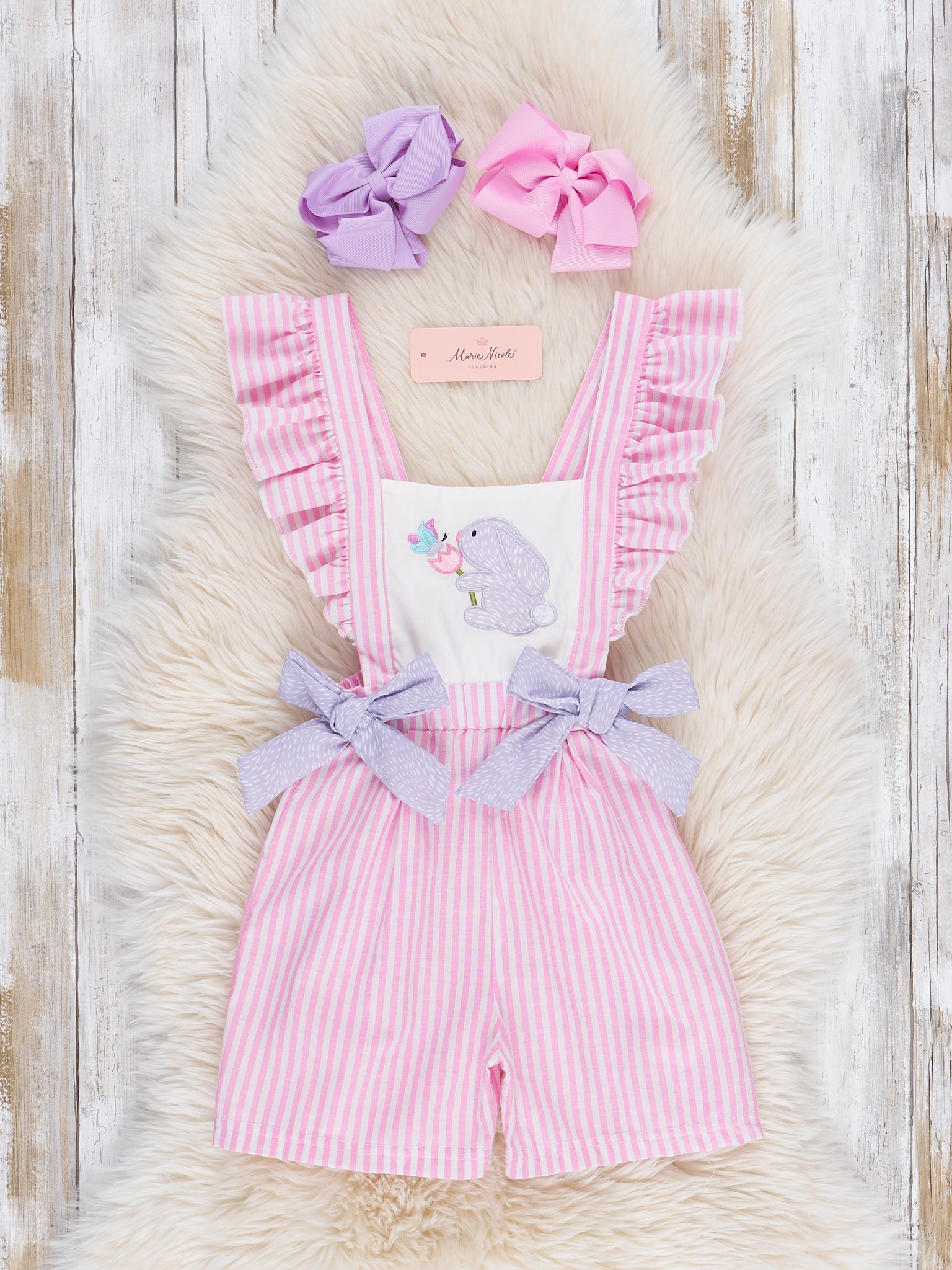 Pink Pinstriped Bunny Ruffle Jumpsuit