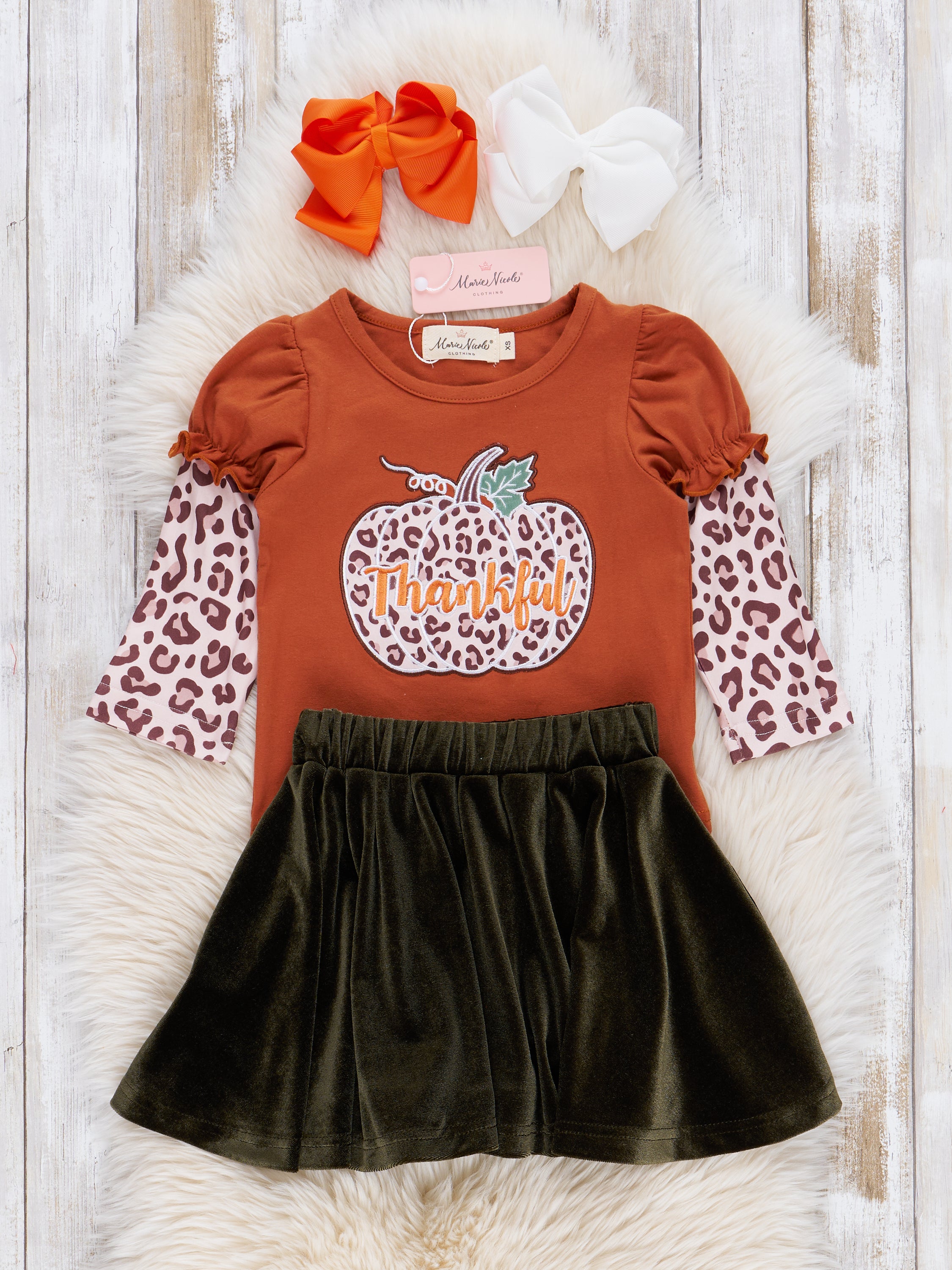 Bronze & Olive Leopard Pumpkin Suede Outfit w/ Shorts