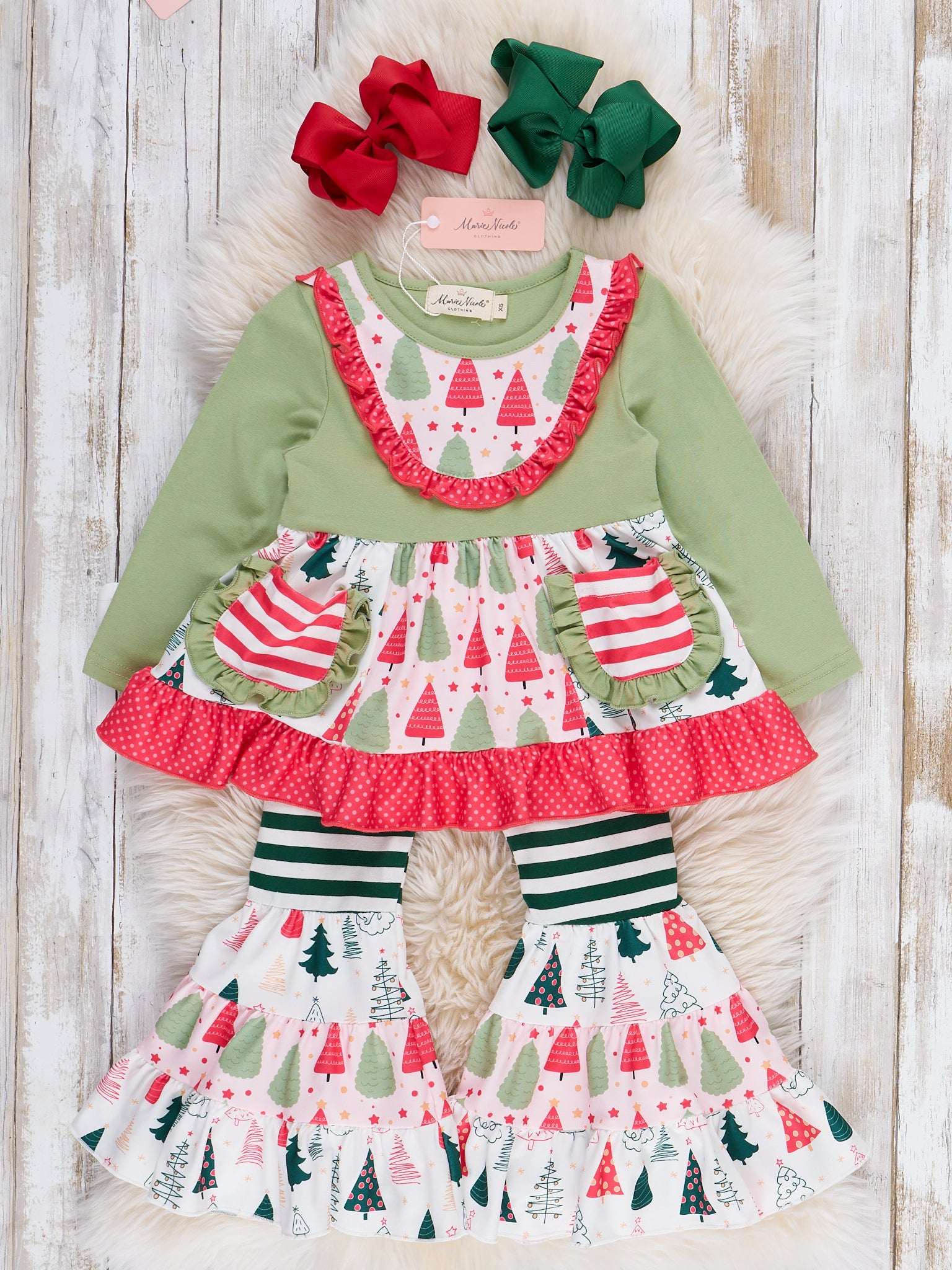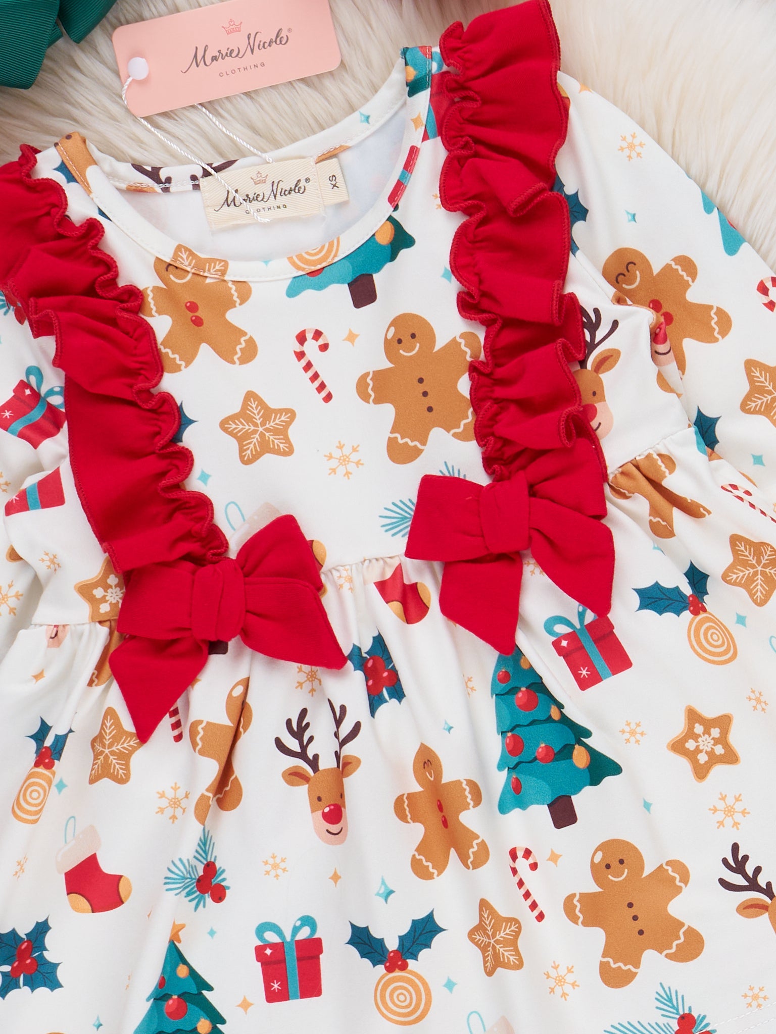 Red & Green Smocked Christmas Tartan Ruffle Dress
