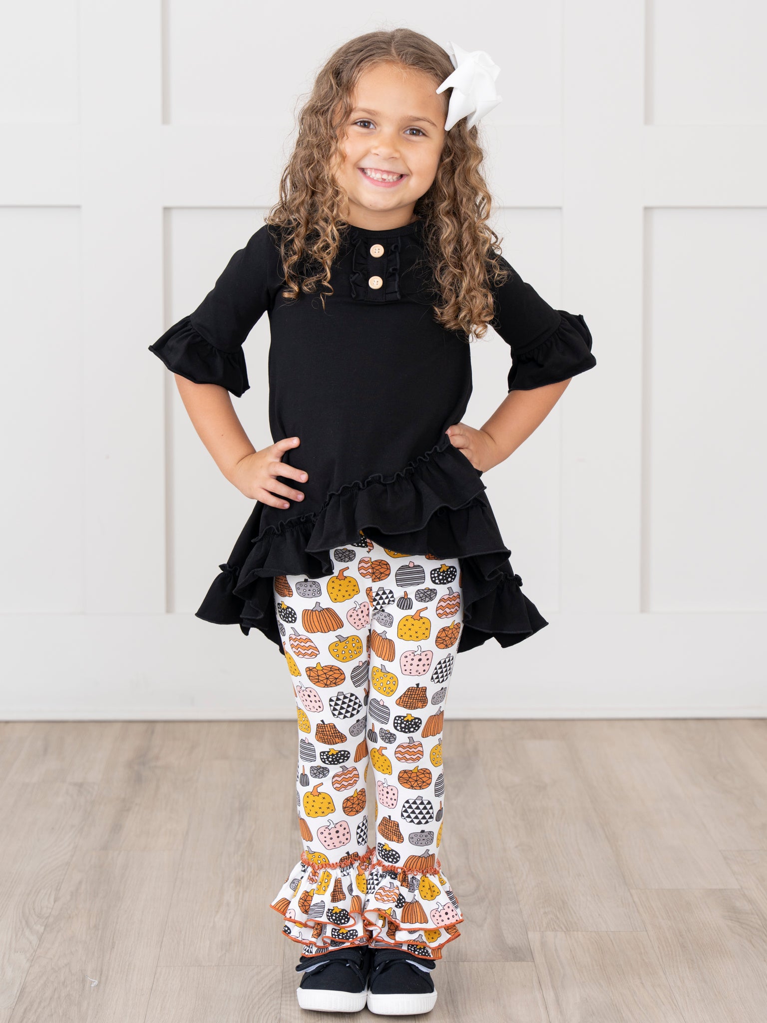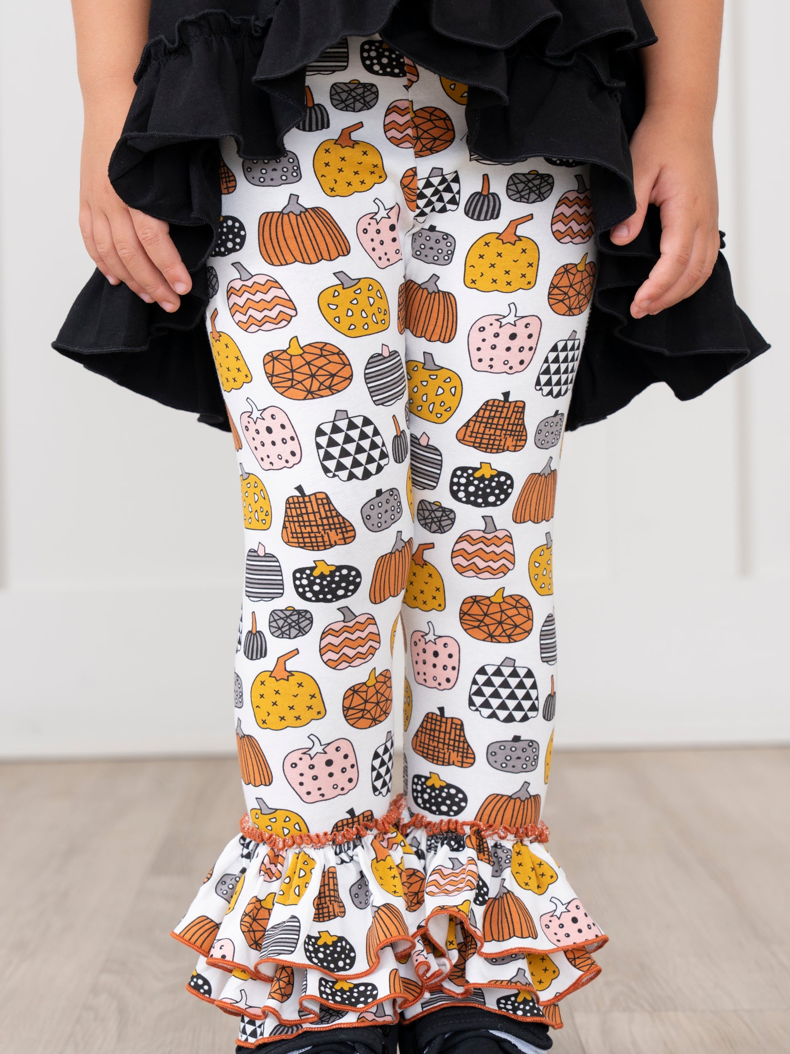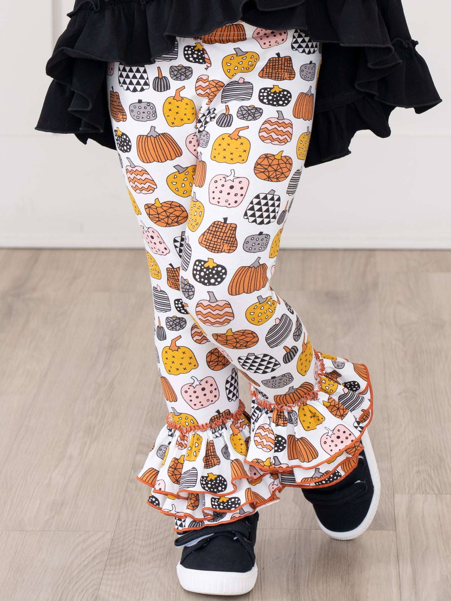 Cotton Bell Ruffle Leggings - Pumpkin Print