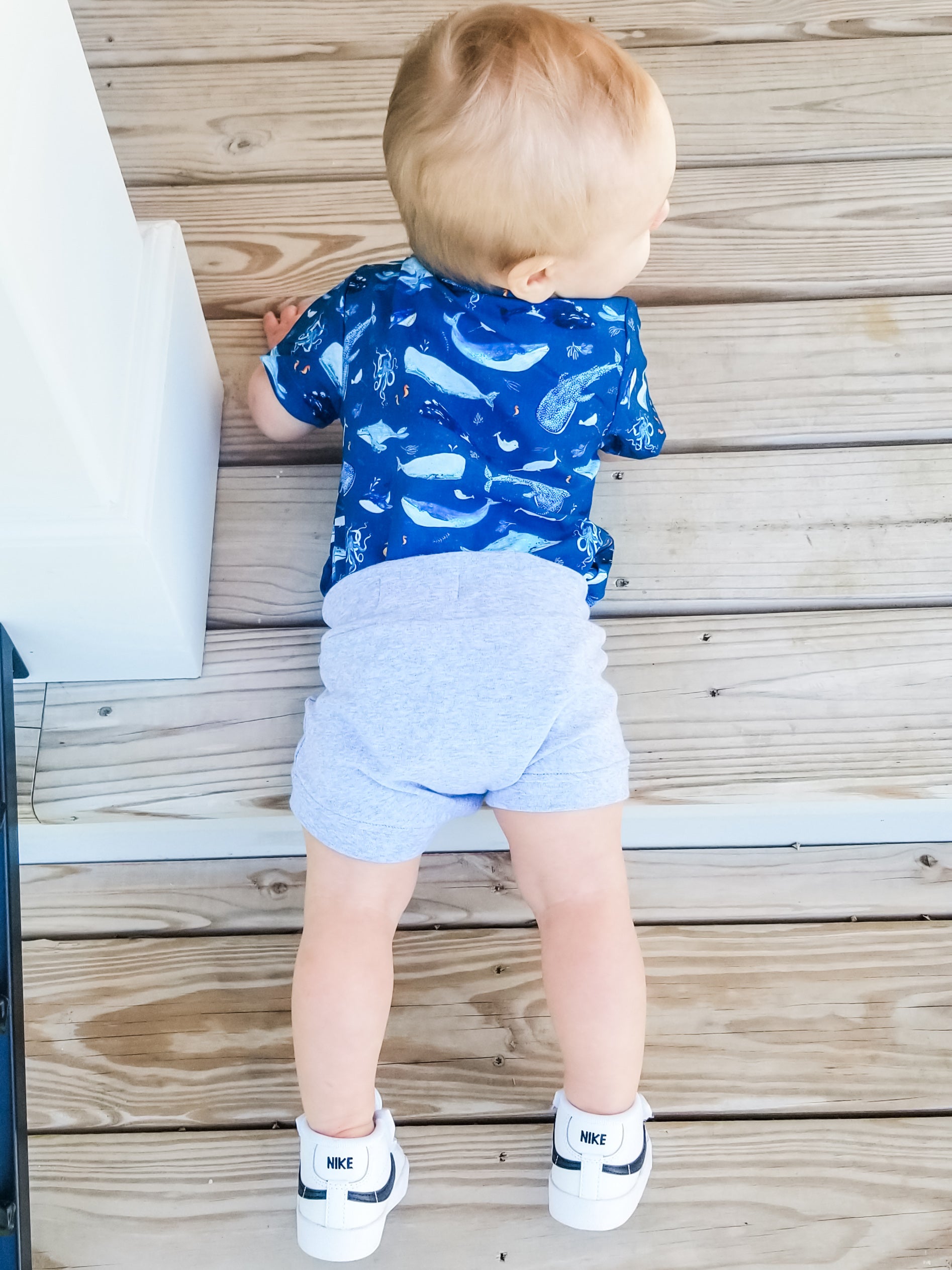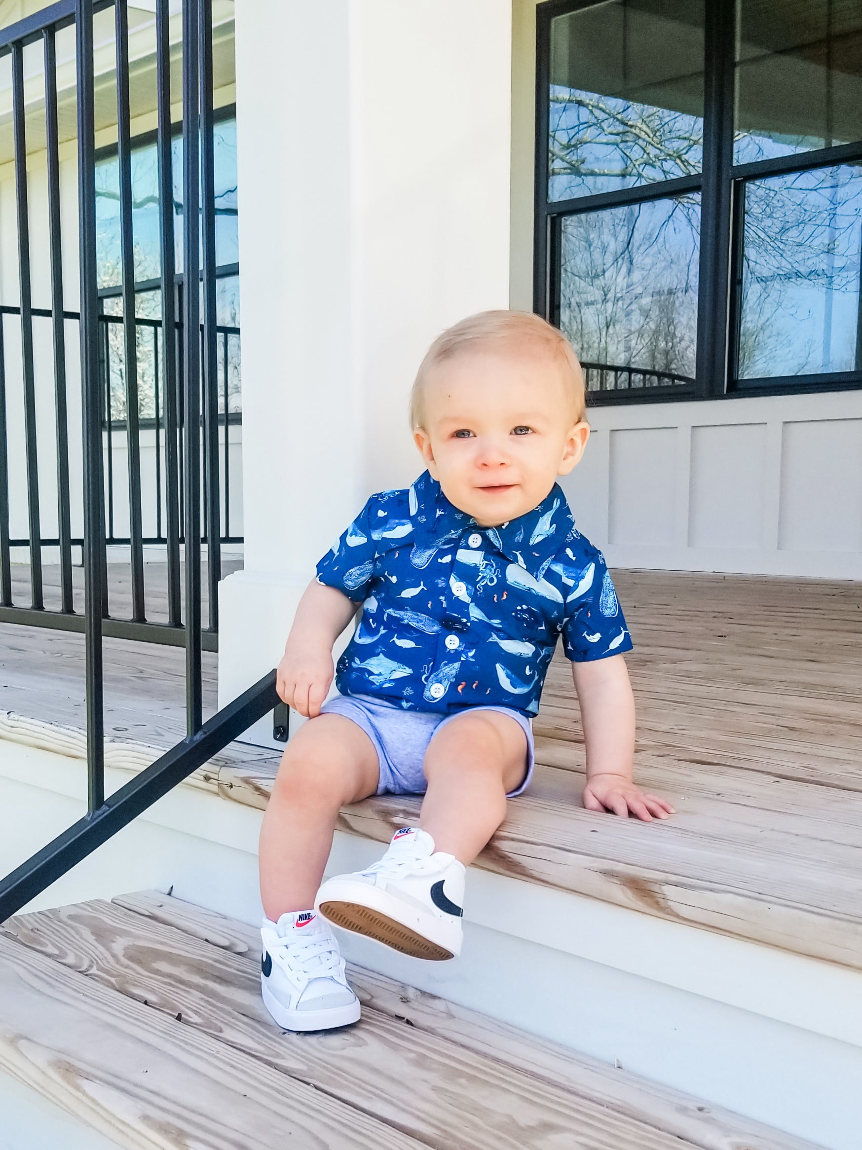 Jameson is 21 pounds, 29.5 inches tall wearing 9/12MOS.