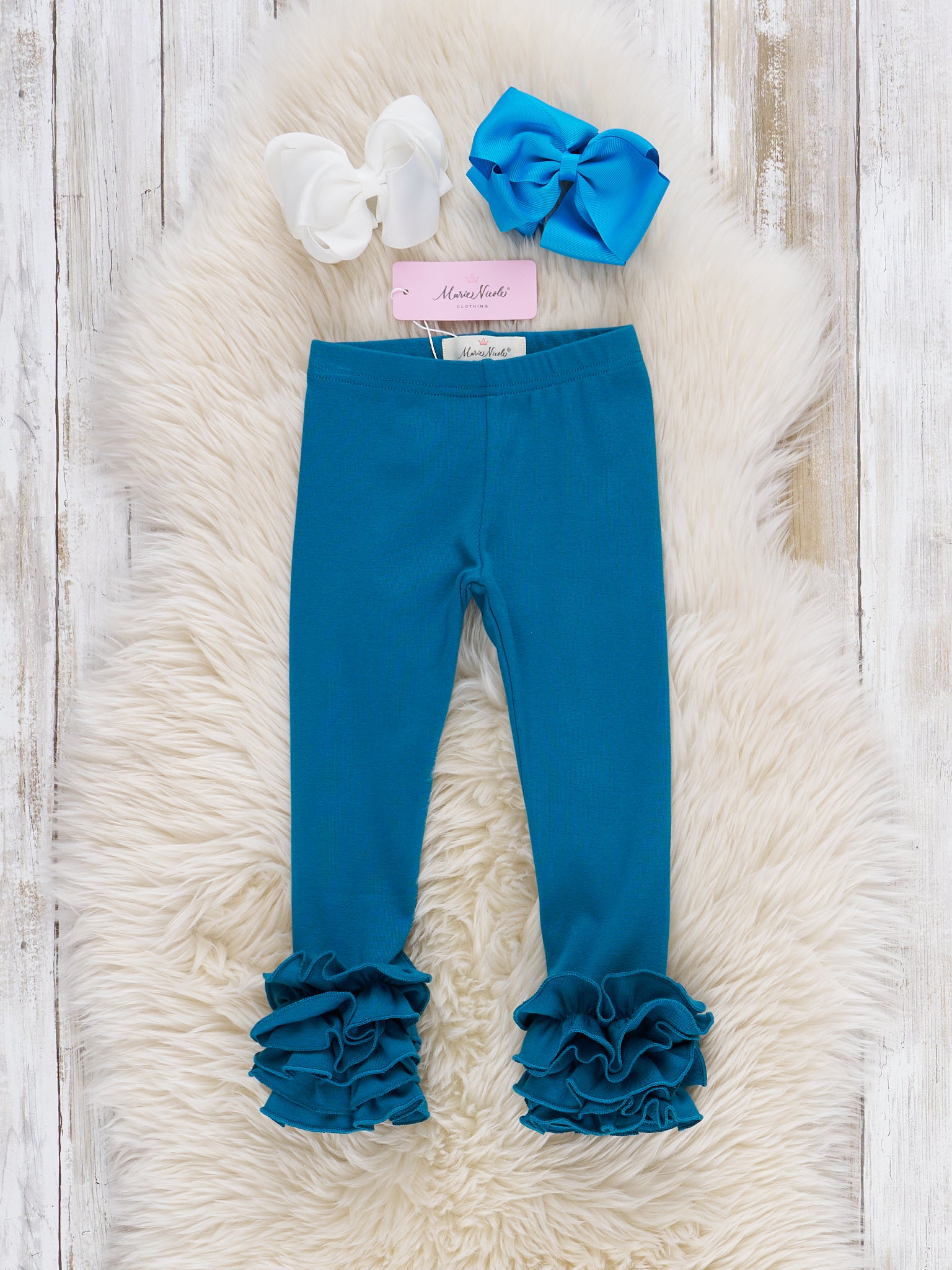 Cotton Icing Ruffle Leggings - Steel Blue