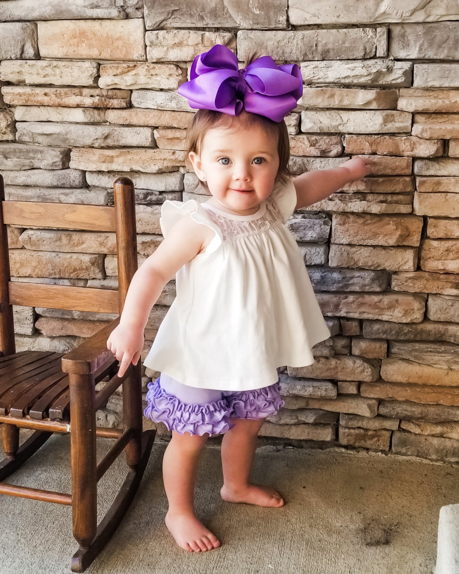Kaylee is 21 pounds, 29 inches tall wearing a size 12/18MOS.