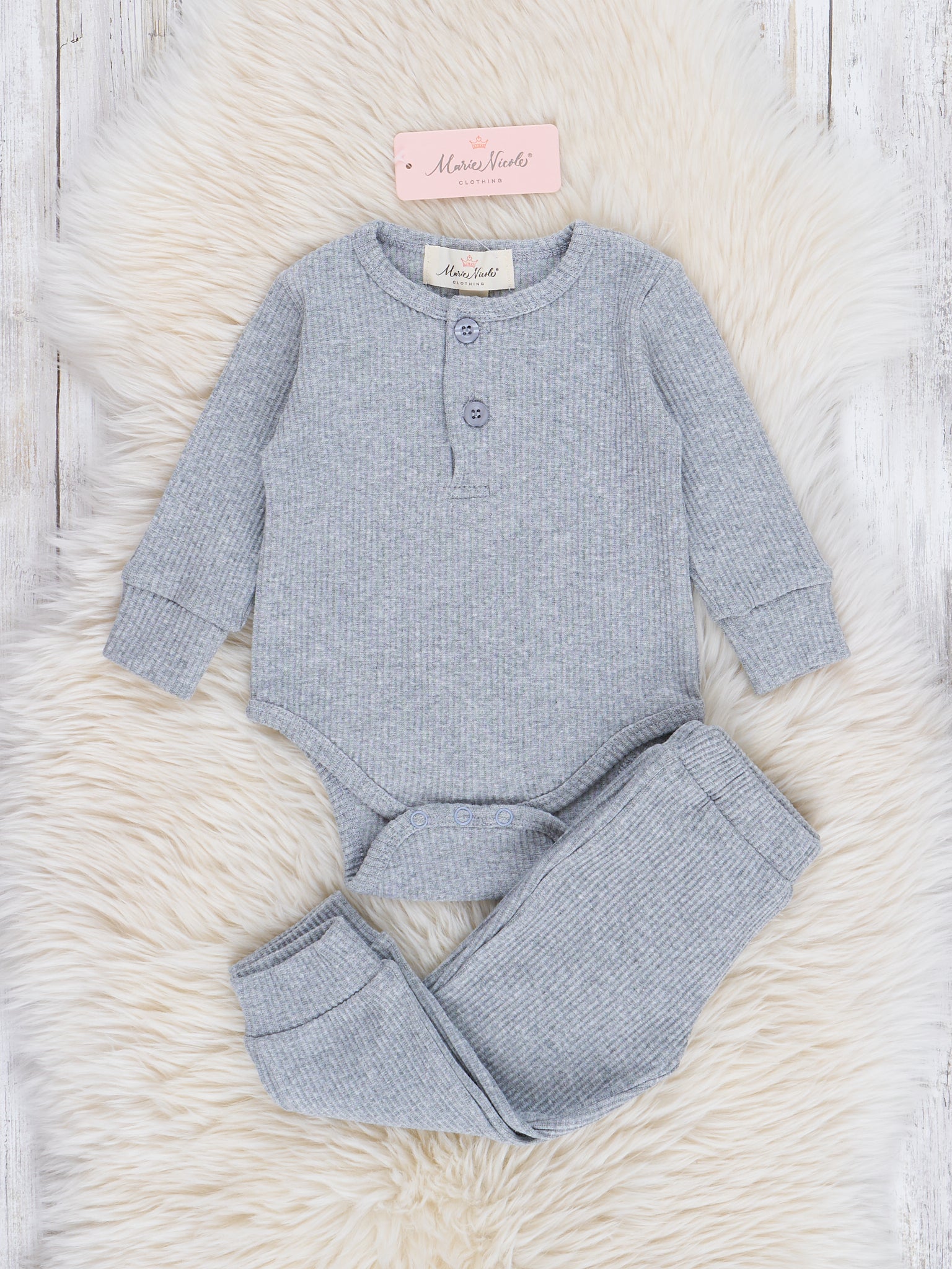 This unisex ribbed romper and joggers set is cozy enough to lounge at home in style but soft and stylish enough to make your little one the trendiest in the nursery! Fun, comfortable, and cute – all in one outfit!