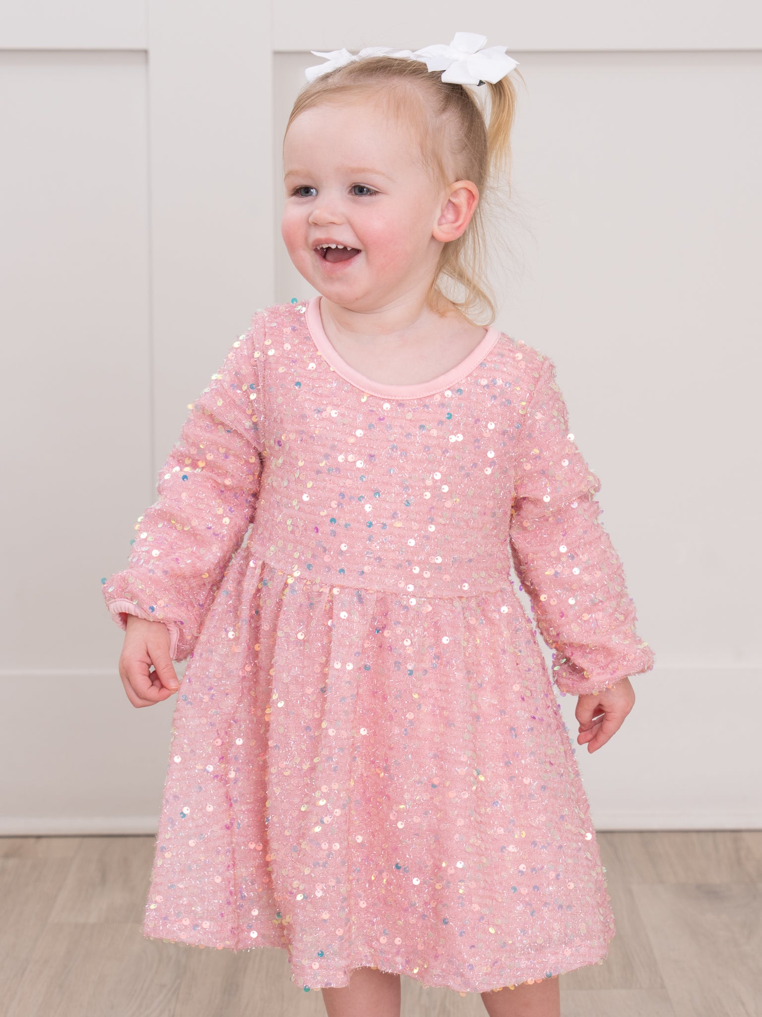 She'll be the life of any party in our Dazzling Sparkles Sequin Dress! Crafted with shimmery sequins and bubble sleeves, this dress will have your little one sparkling like the star she is!