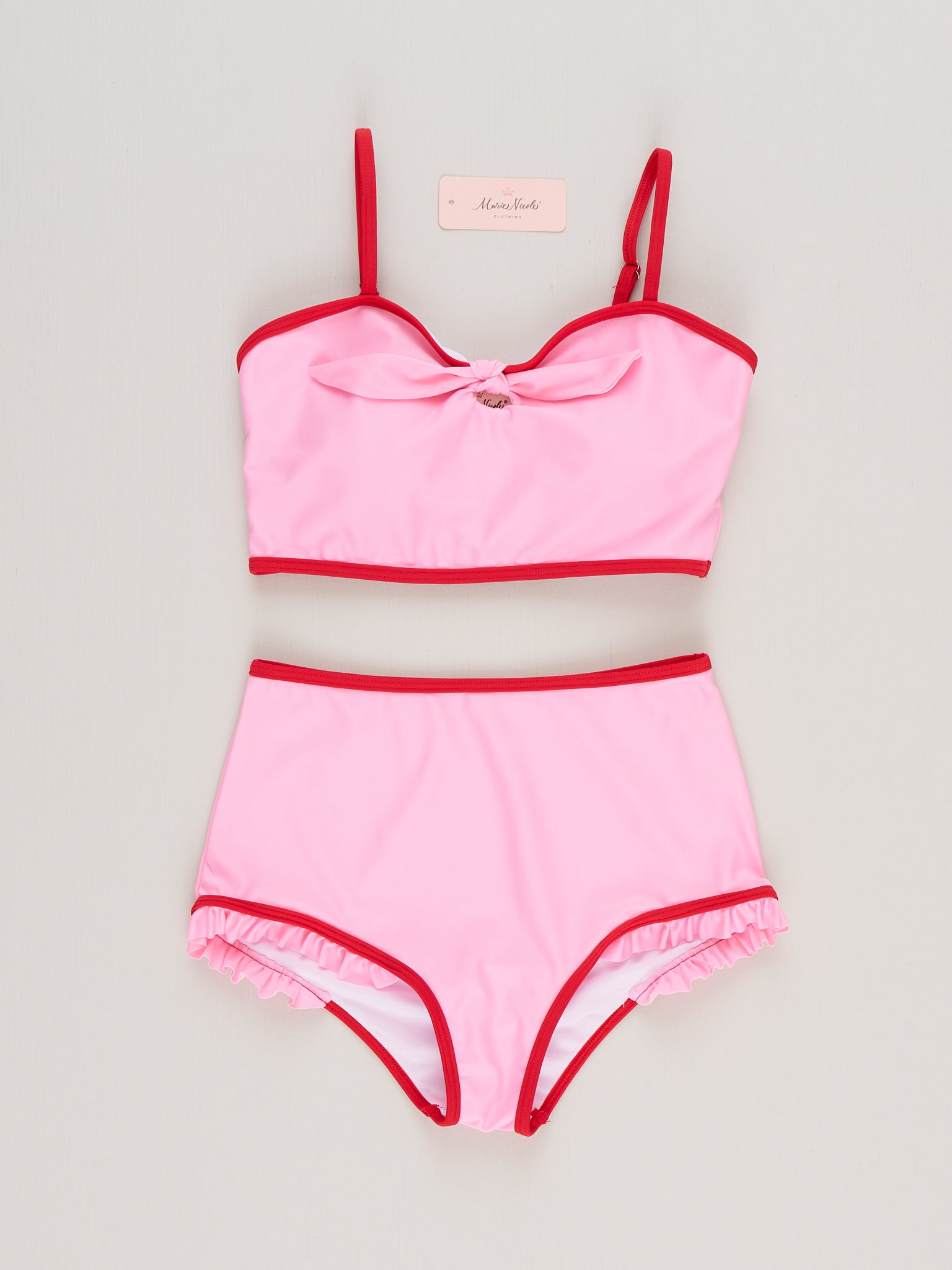 The Mom & Me Seaside Bow Ruffle Swimsuit by Marie Nicole Clothing brings matching-day magic to poolside adventures, featuring a sweet bow accent, soft stretchy fabric, and gentle ruffle trim for extra charm. Adjustable straps and a comfortable, fully lined design help little ones splash and play with ease. Perfect for coordinated photos, beach trips, and sunny family memories all season long.