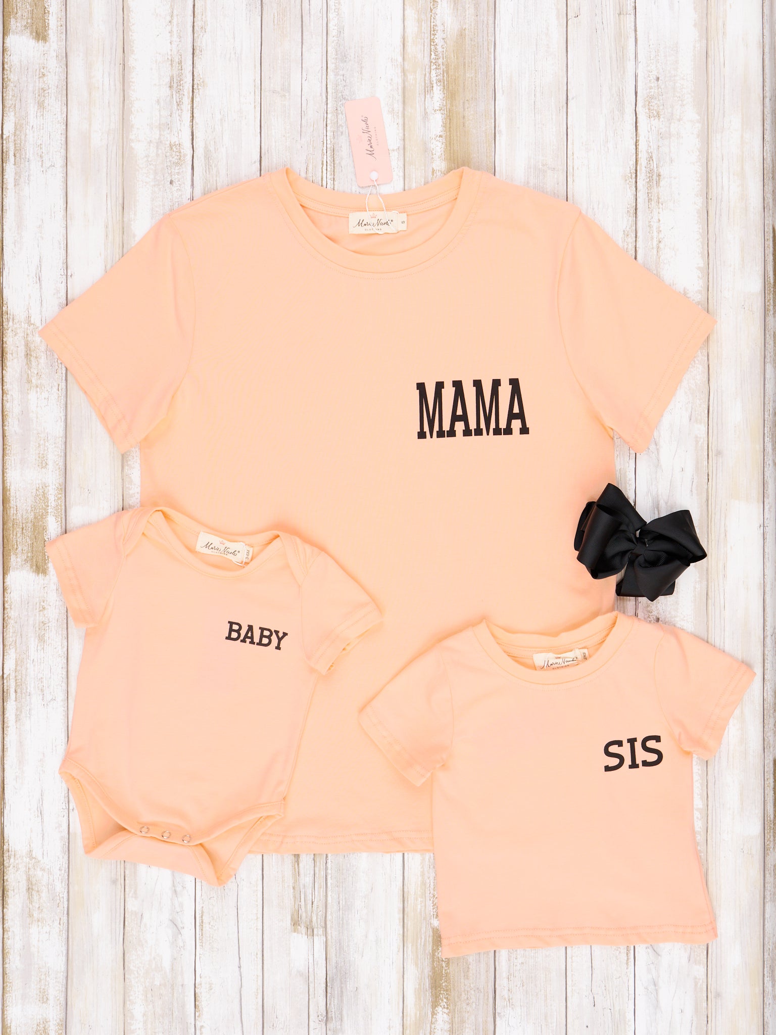 Mom & Me Peach "Mama/Sis/Baby" Shirt & Romper