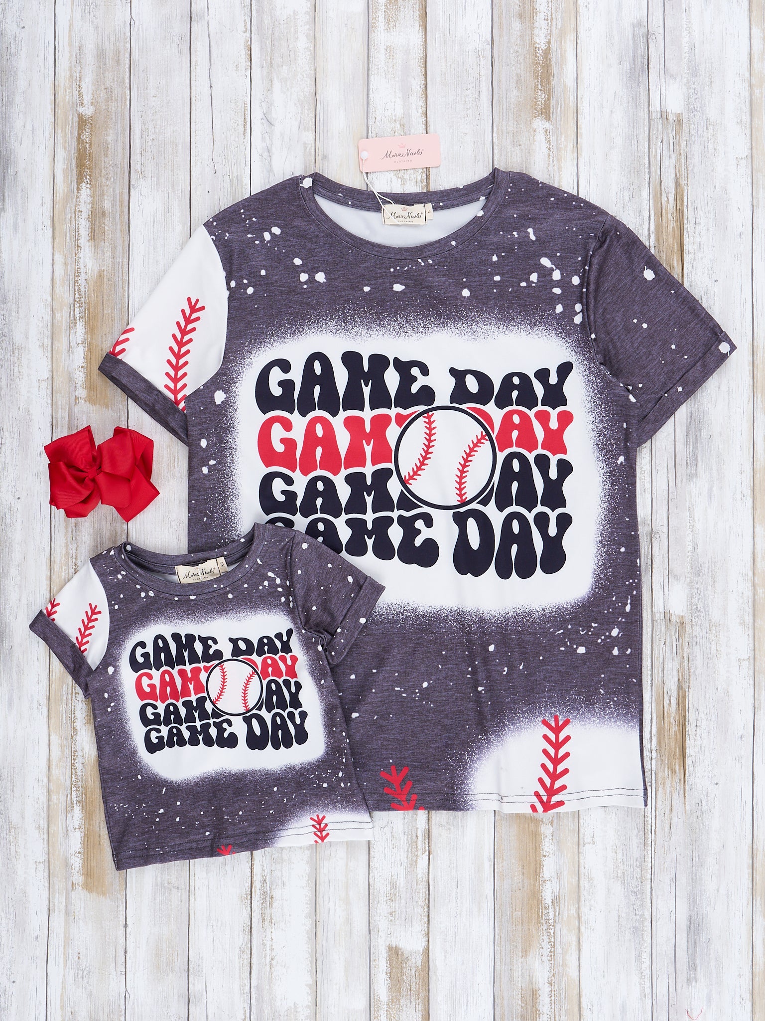 Mom & Me Grey Splatter Baseball Game Day Shirt