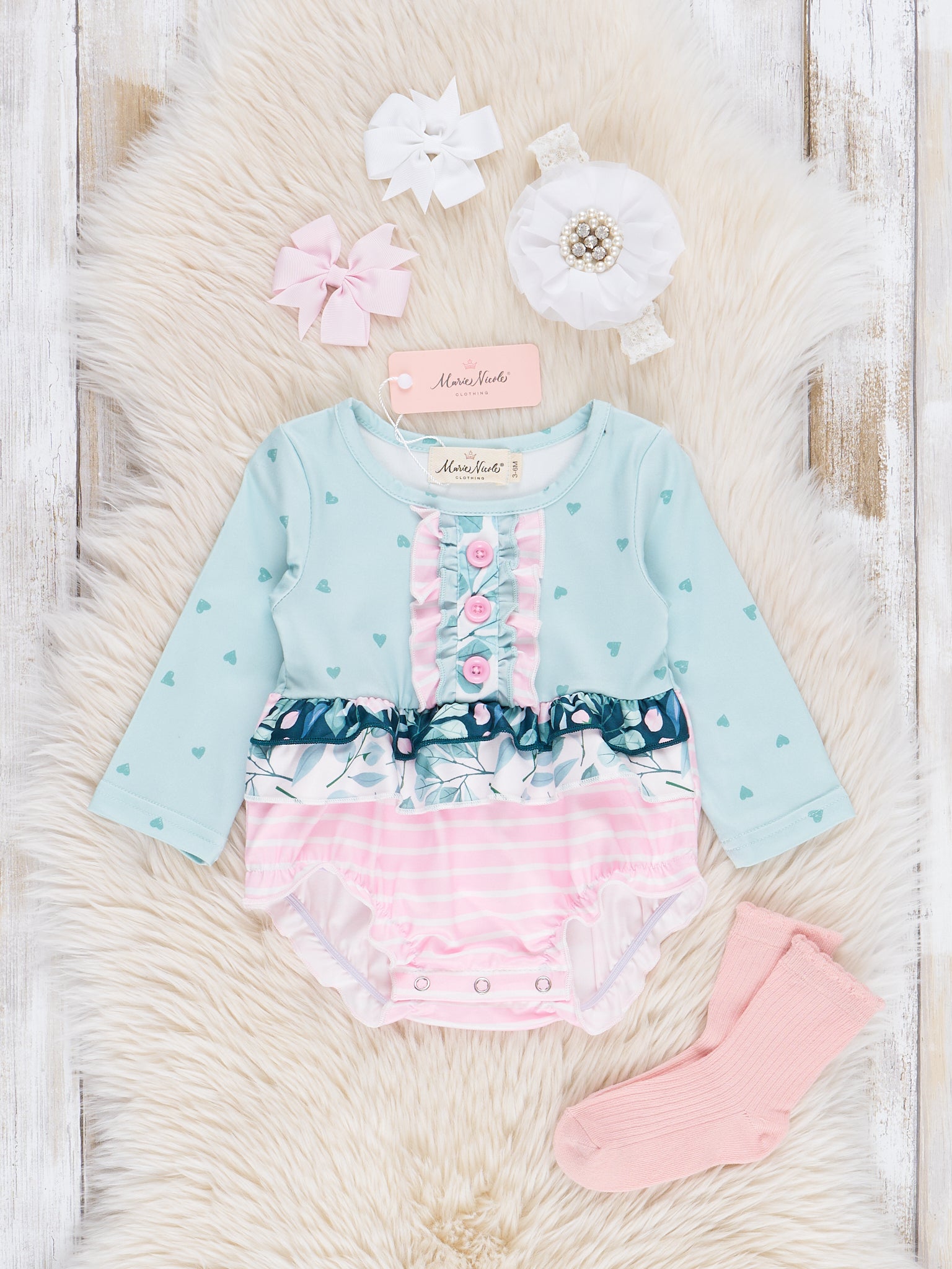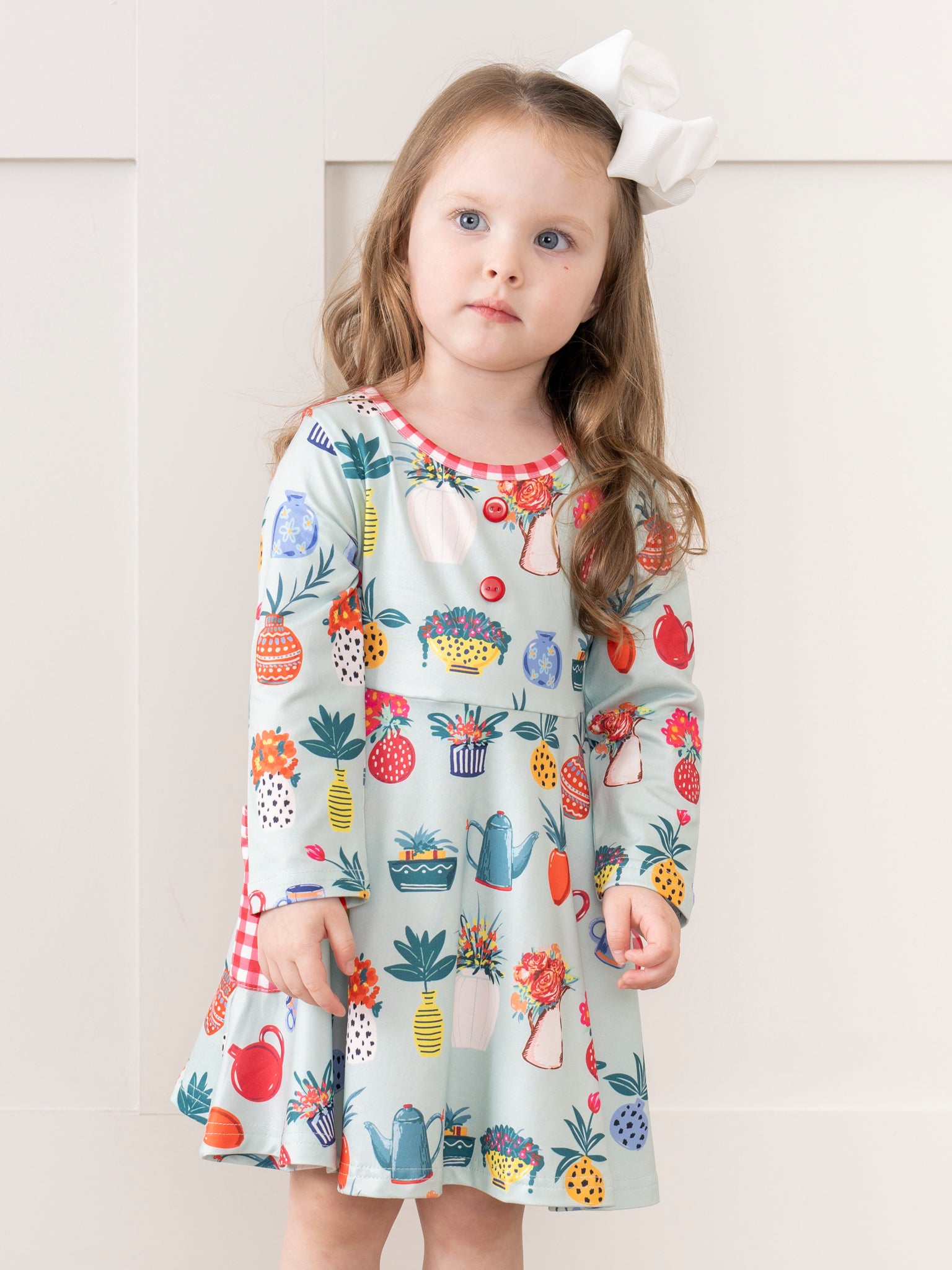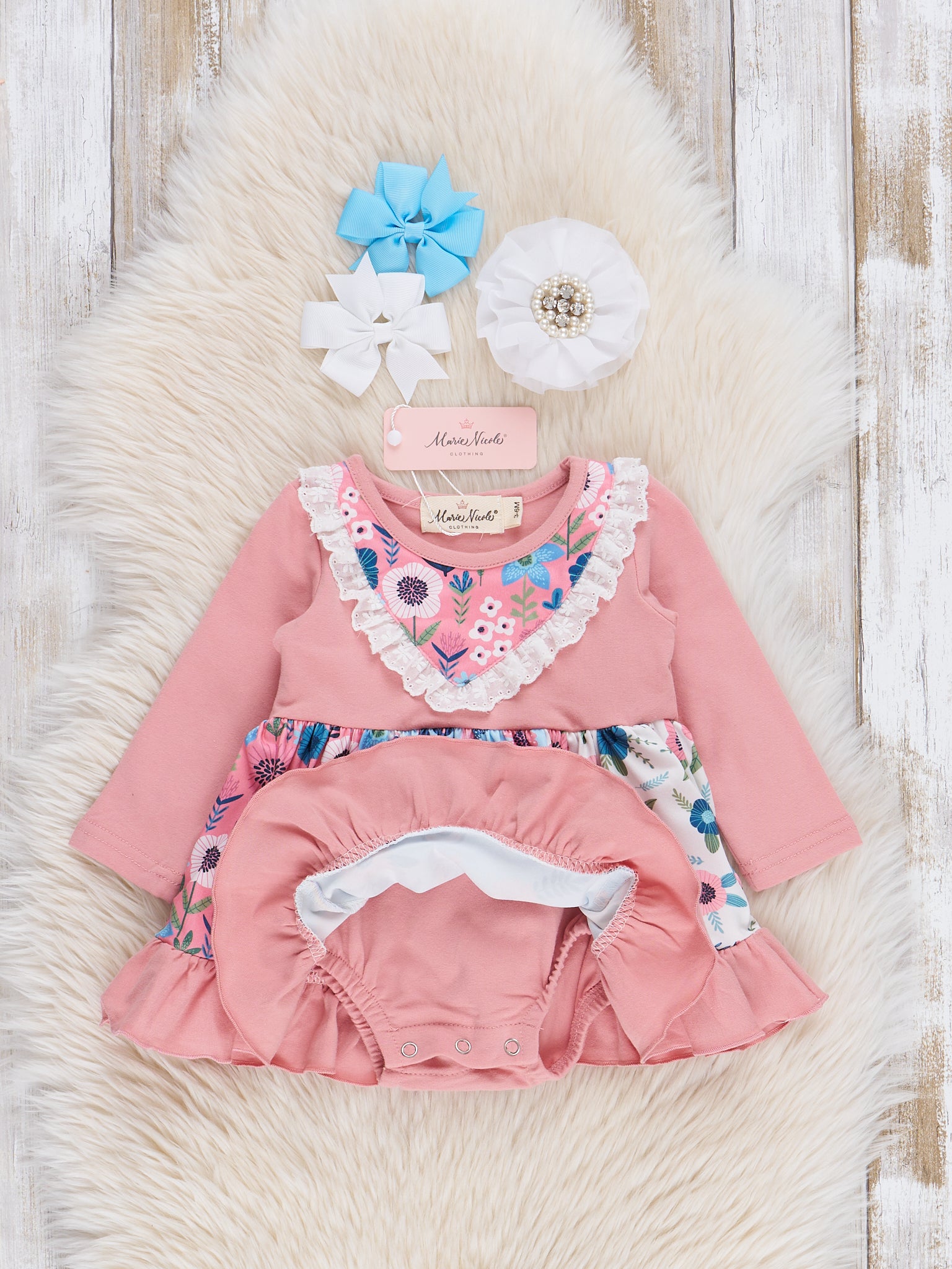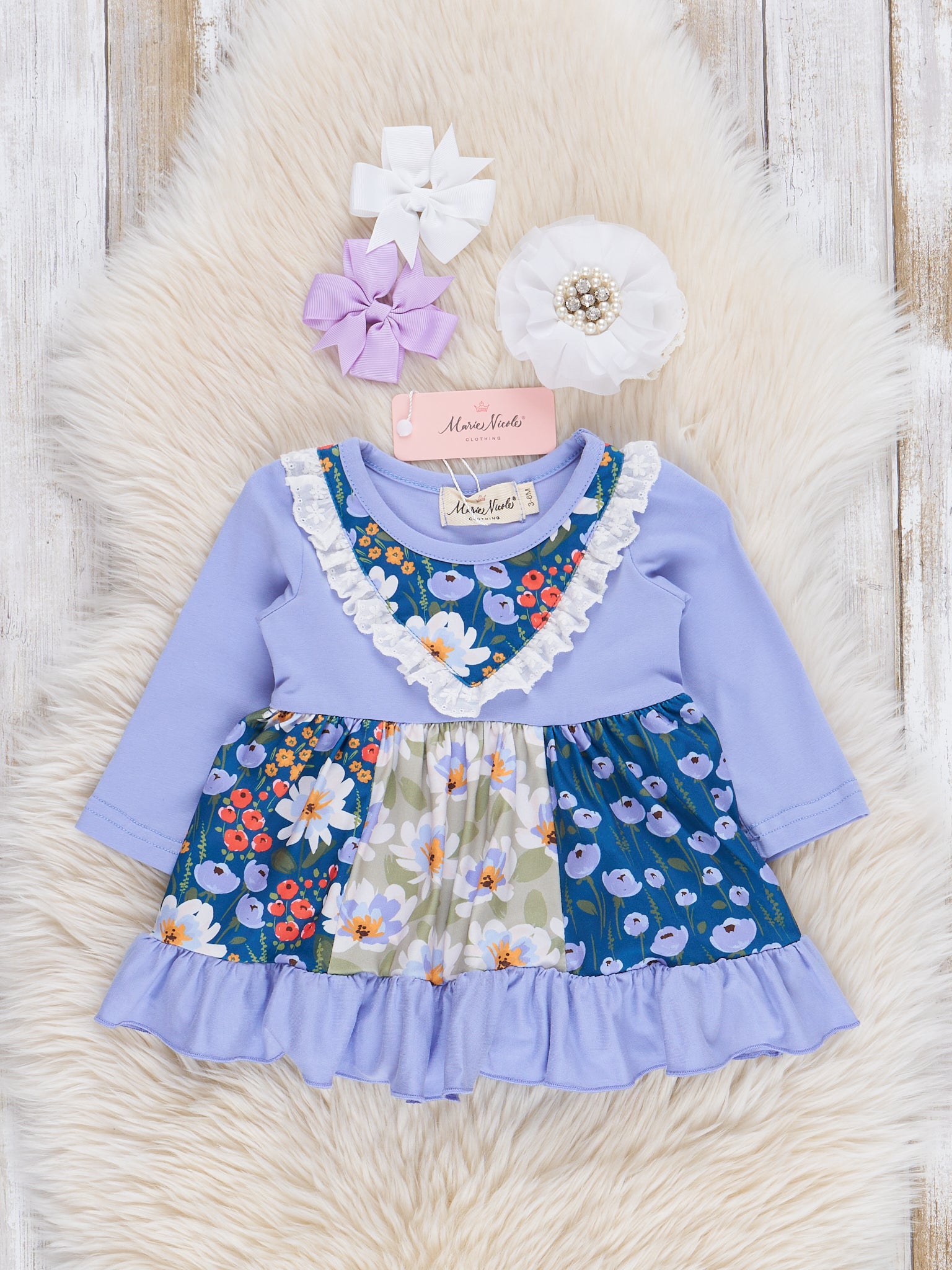 Blue & Pink Dinosaur Blooms Ruffle Dress