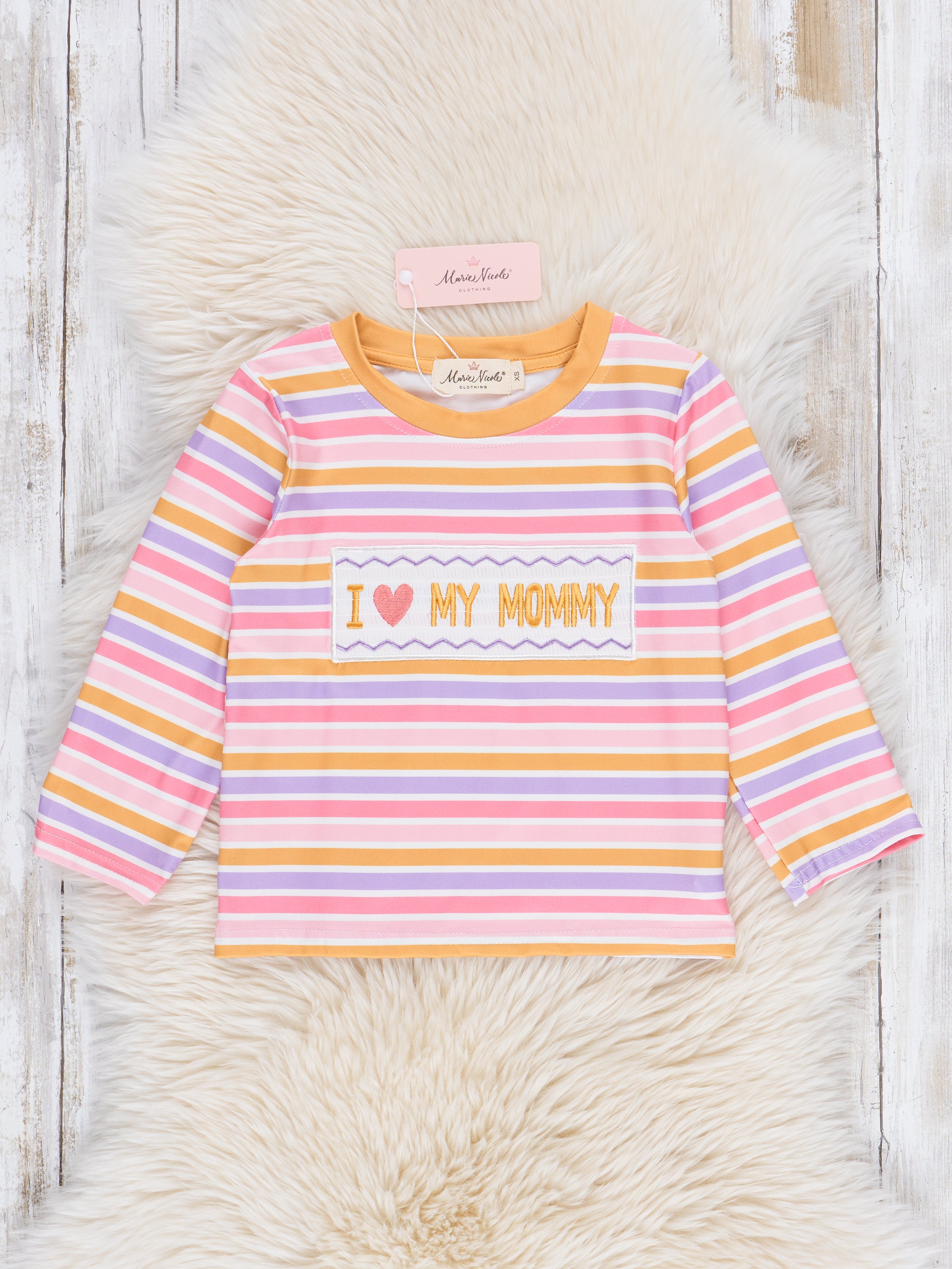 Pink & Purple Stripes Smocked Mommy Love Shirt