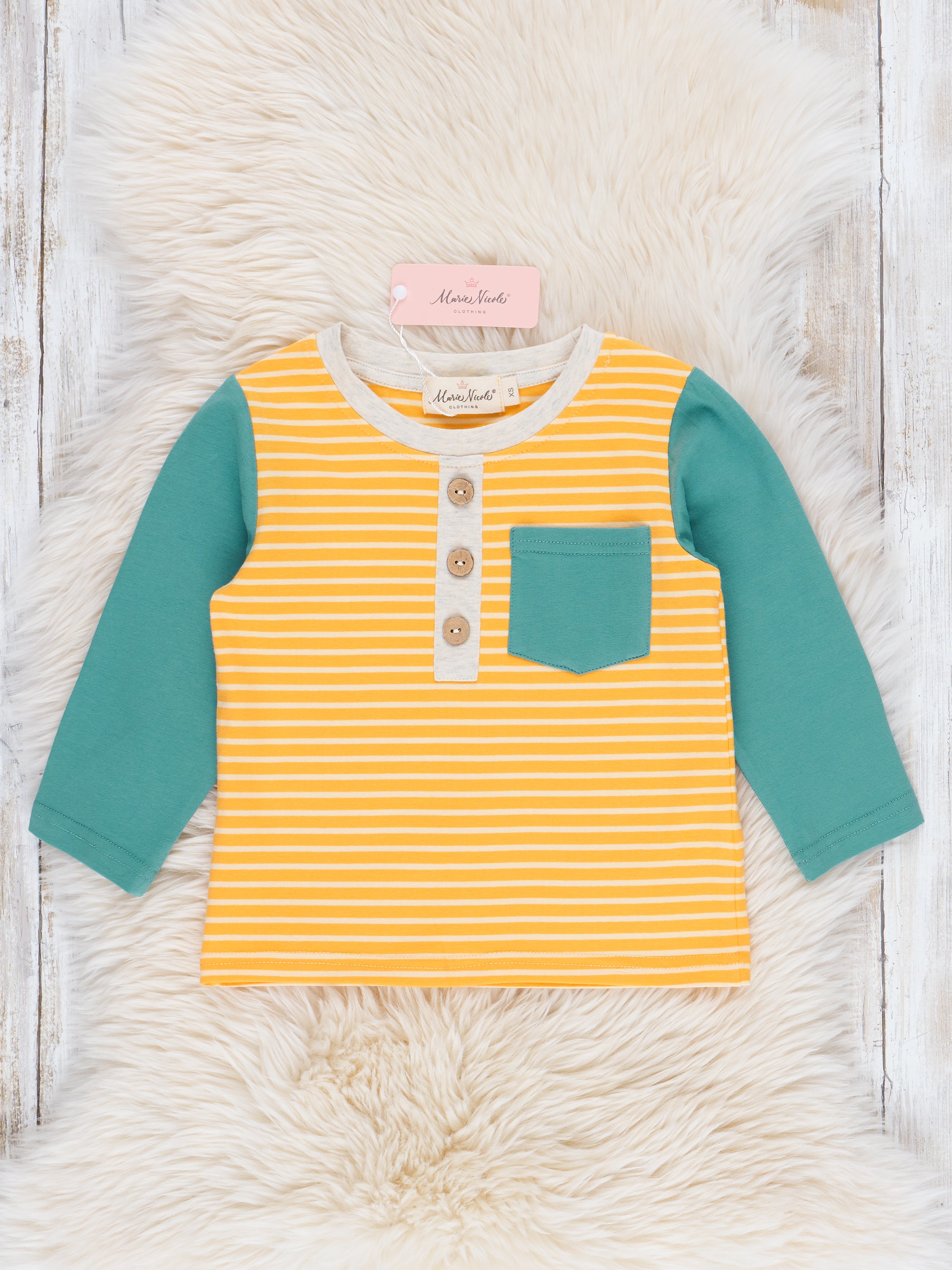 Turquoise & Yellow Stripes Pocket Raglan Shirt