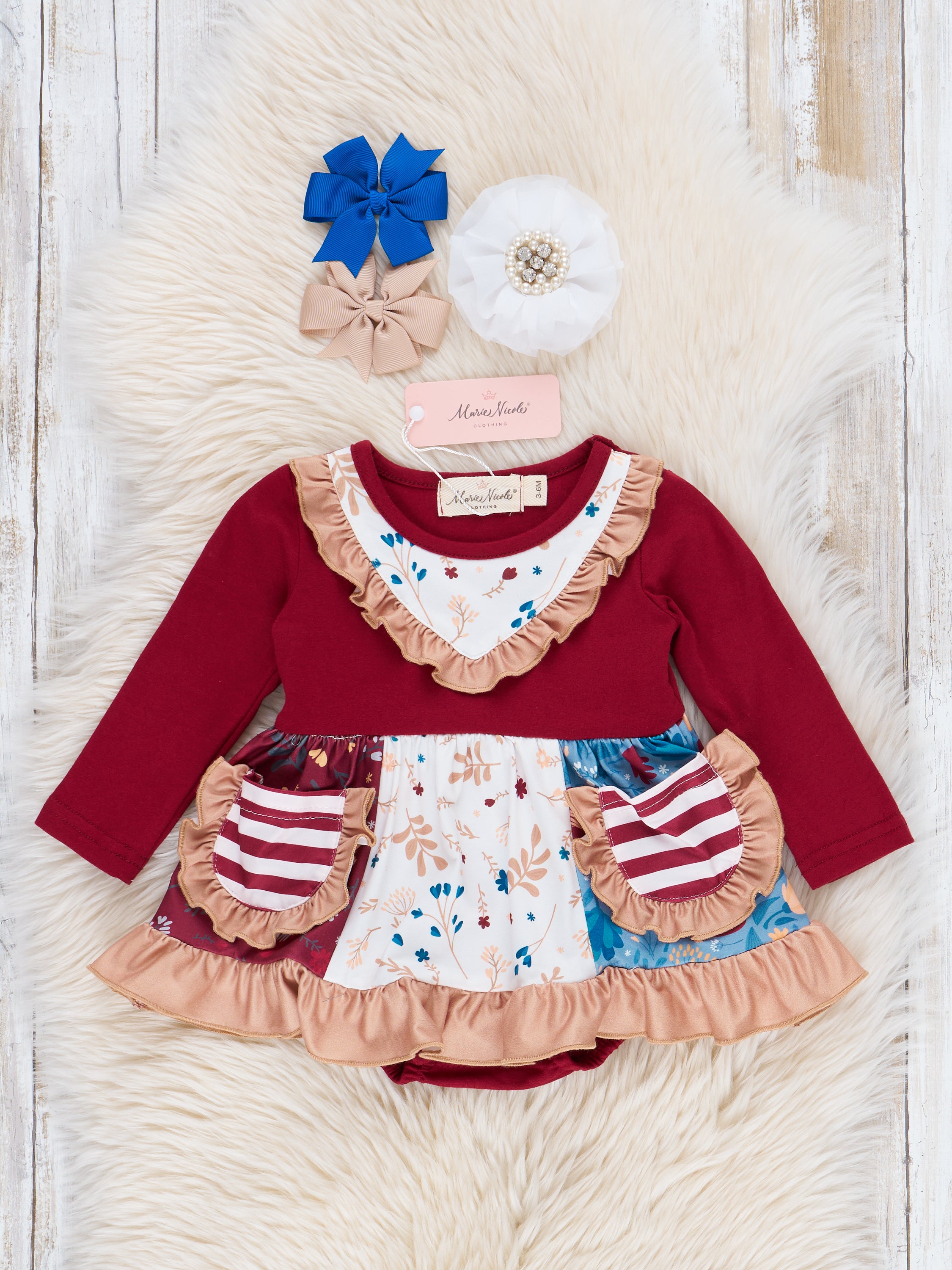 Pocket Flara Peplum Ruffle Bubble - Maroon