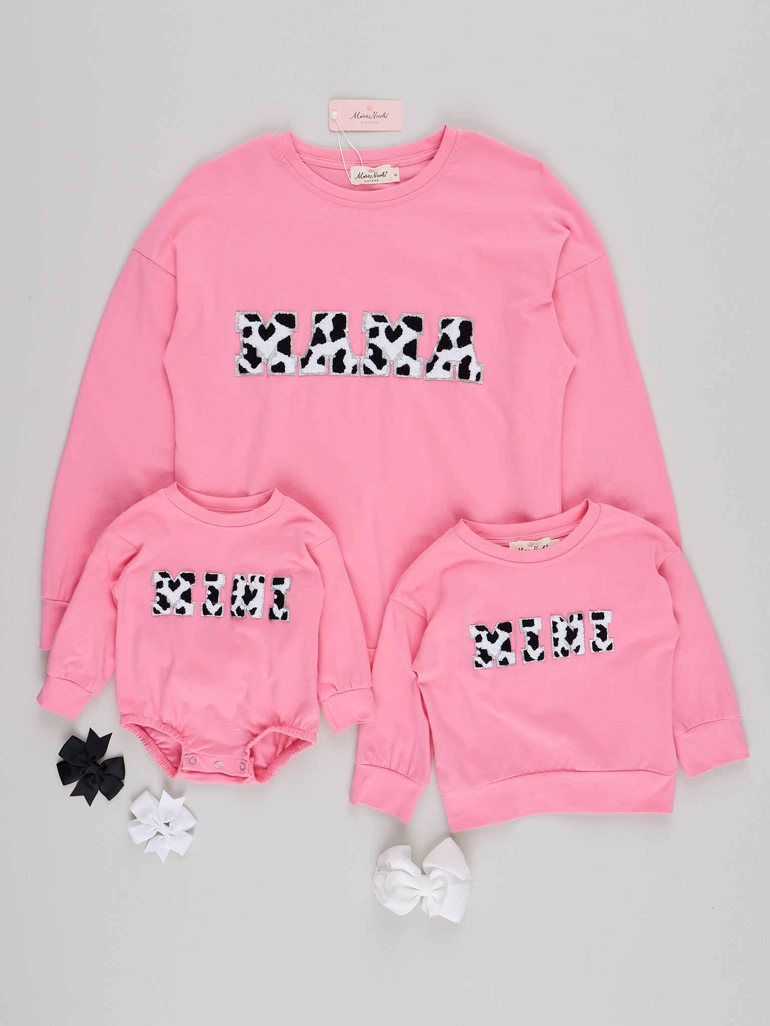 Pink Mom & Me Cow Print Chenille "Mama/Mini" Shirt