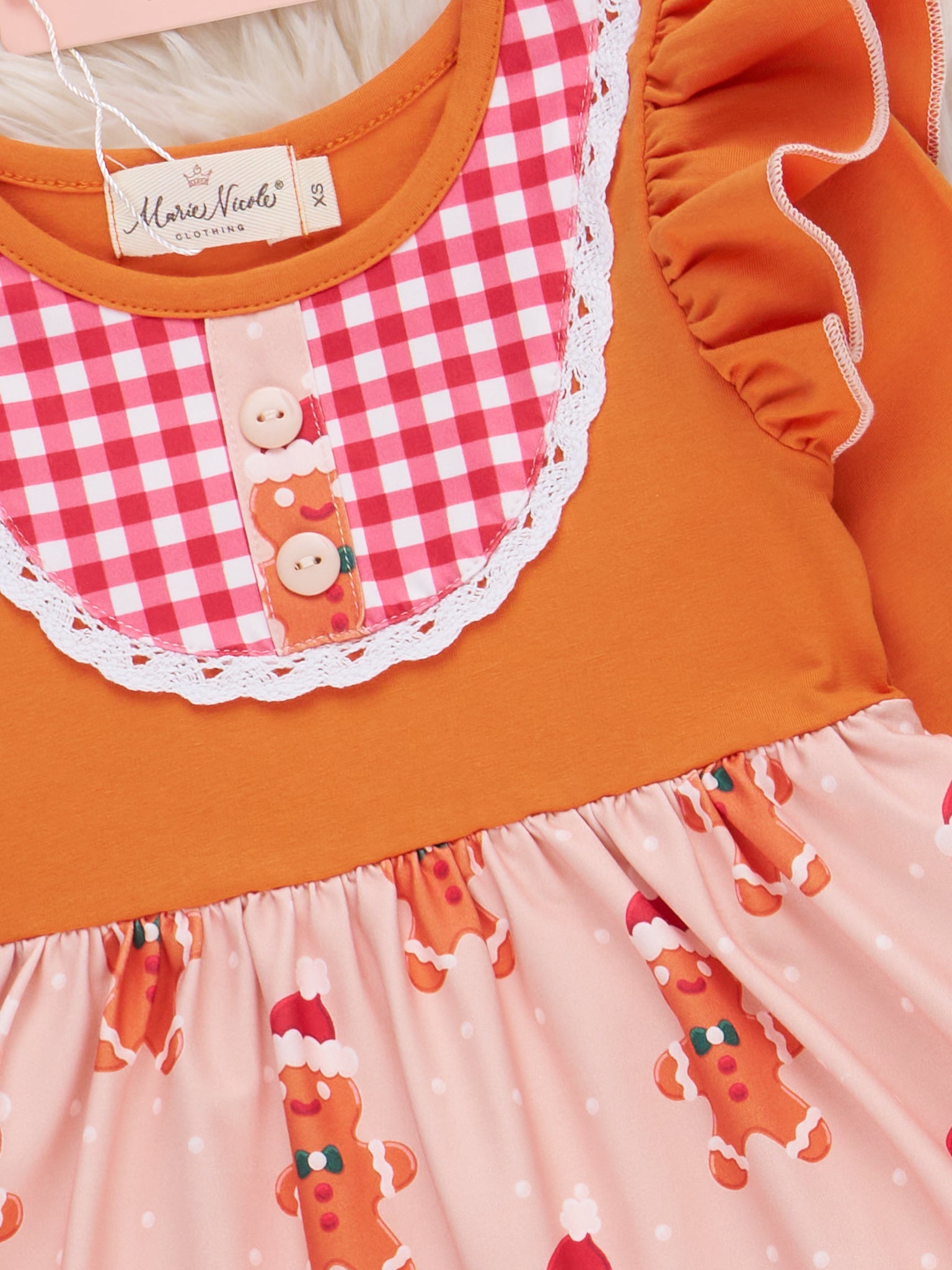 Embroidered Plaid Christmas Tree Lace Trim Outfit