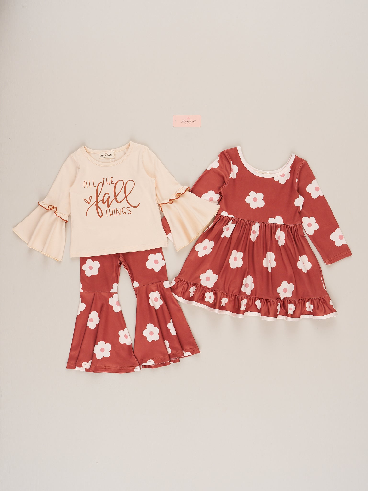 "Fall Vibes" Smocked Ruffle Leaves Dress