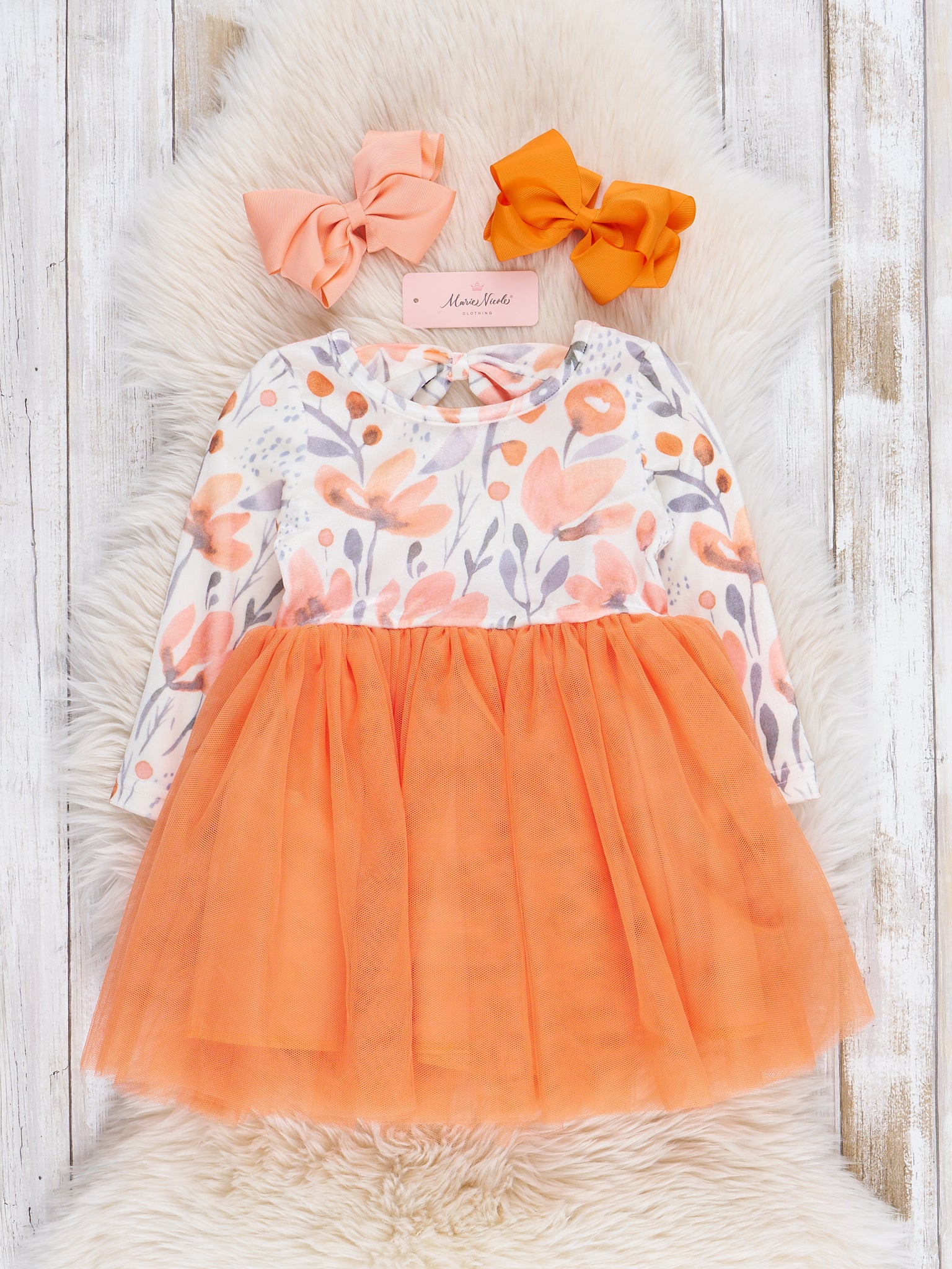 Embroidered Sparkle Pumpkin Ruffle Tulle Dress