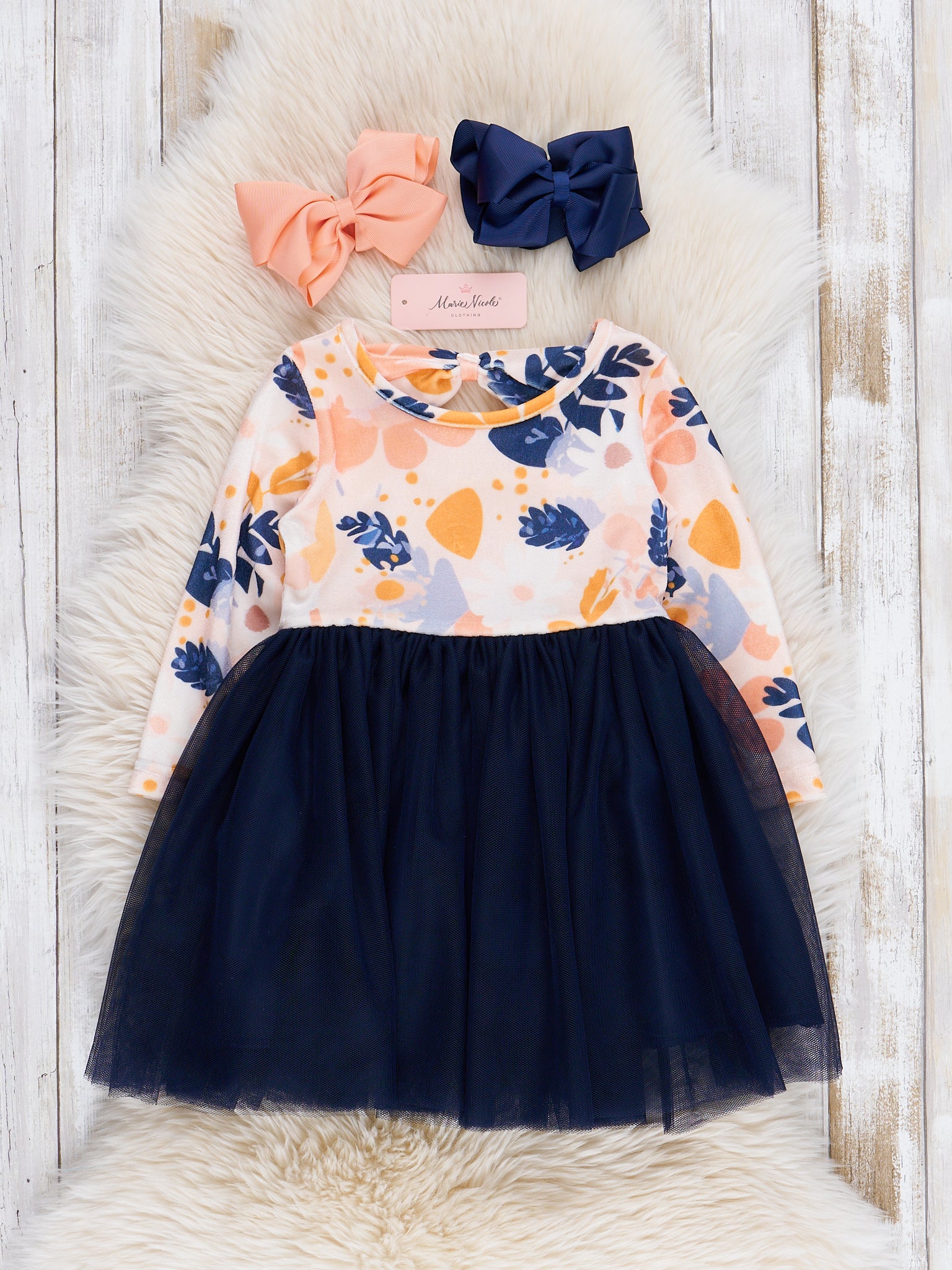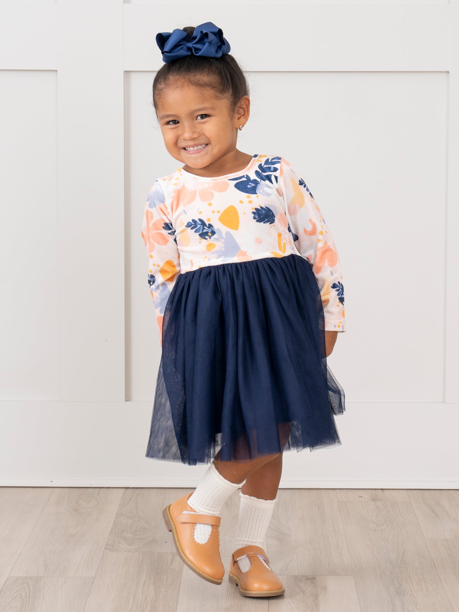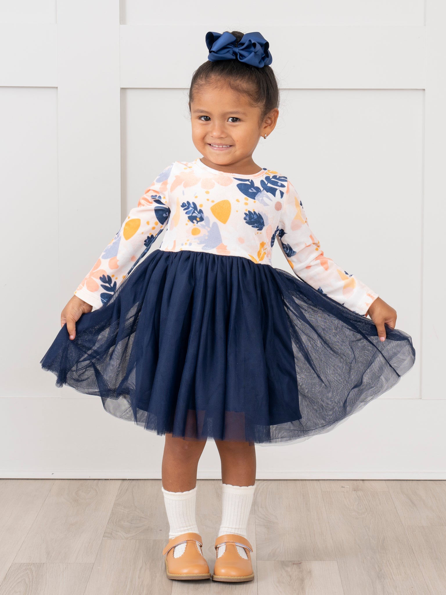 Go from garden to party in our Blue Watercolor Garden Tulle Dress. Beautiful watercolor flowers adorn the bodice, while the midnight blue tulle skirt adds a touch of whimsy. Perfect for any little girl who loves to have fun!