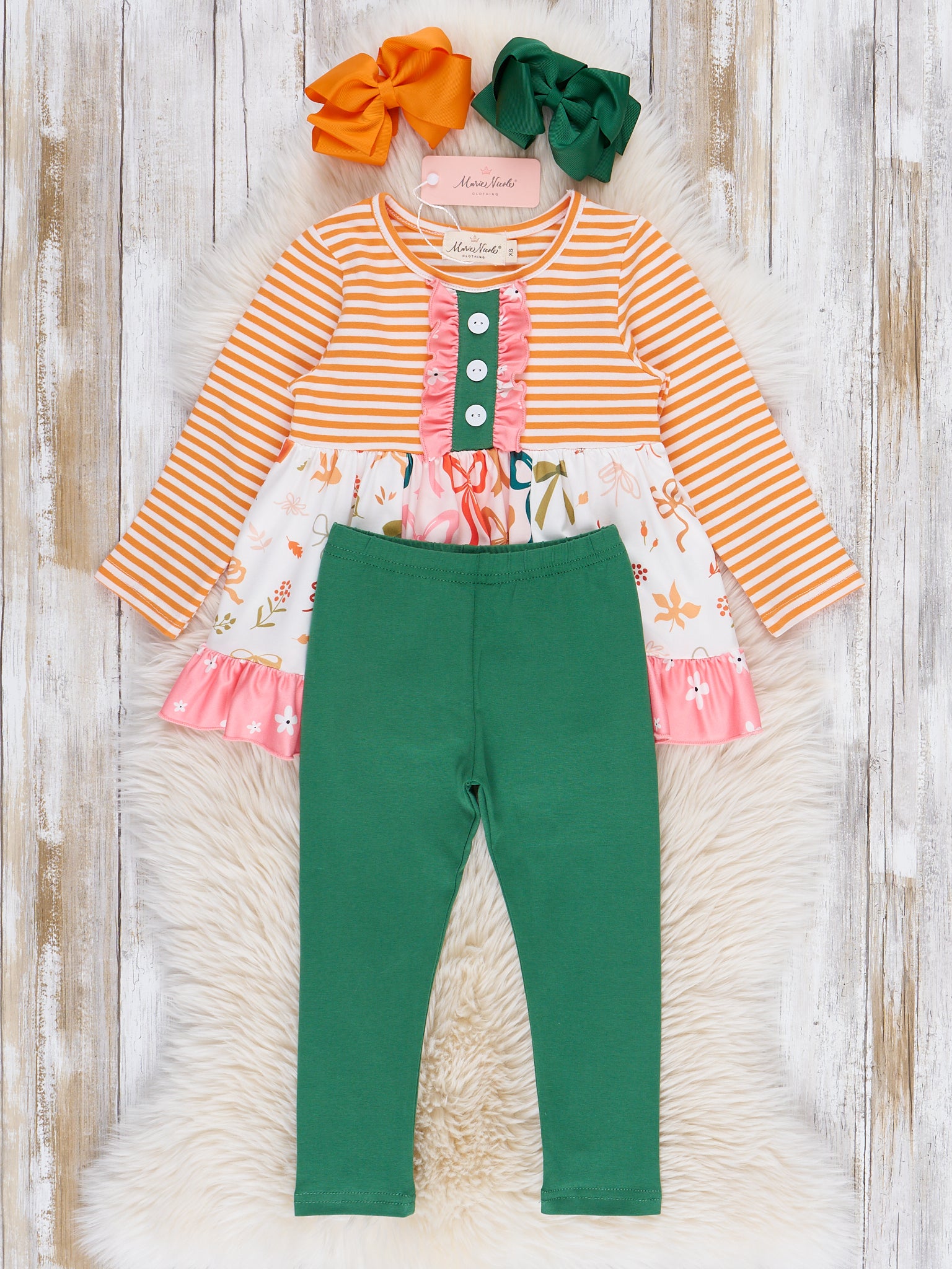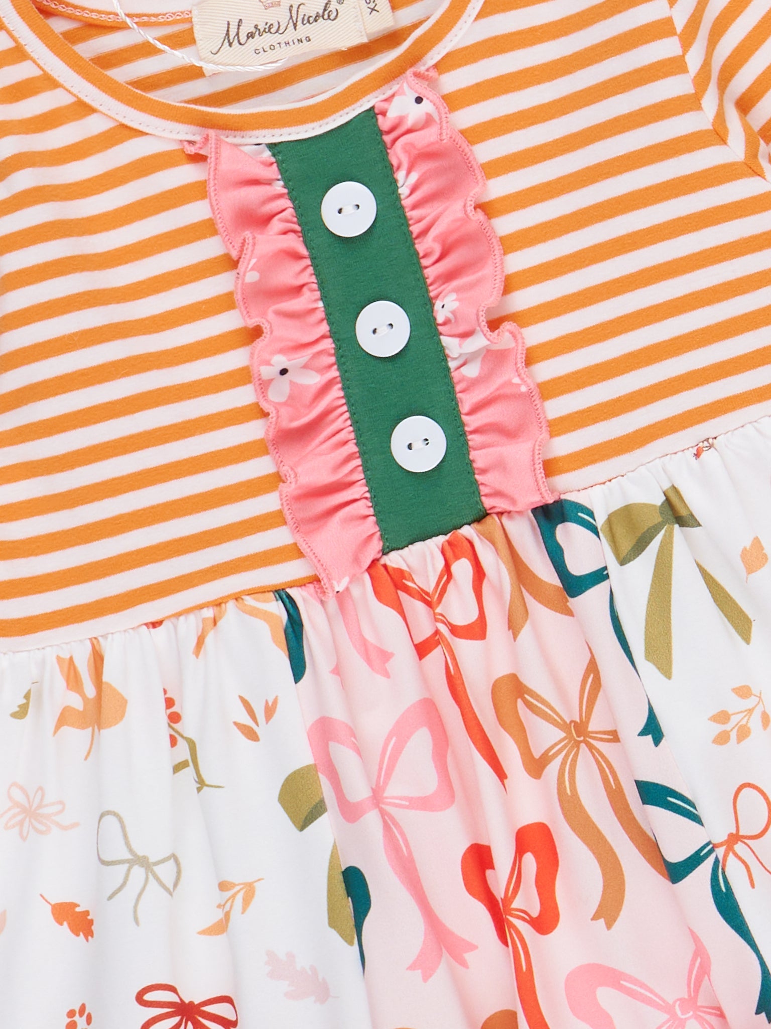 The Stripes & Bows Ruffle Outfit is a sweet and stylish staple for warm-weather days and playful adventures. Featuring classic stripes, charming bow print, and delicate ruffle details, this outfit from Marie Nicole Clothing blends timeless design with everyday comfort. Soft, breathable, and made for easy movement, it’s perfect for everything from playdates to picture-perfect moments.