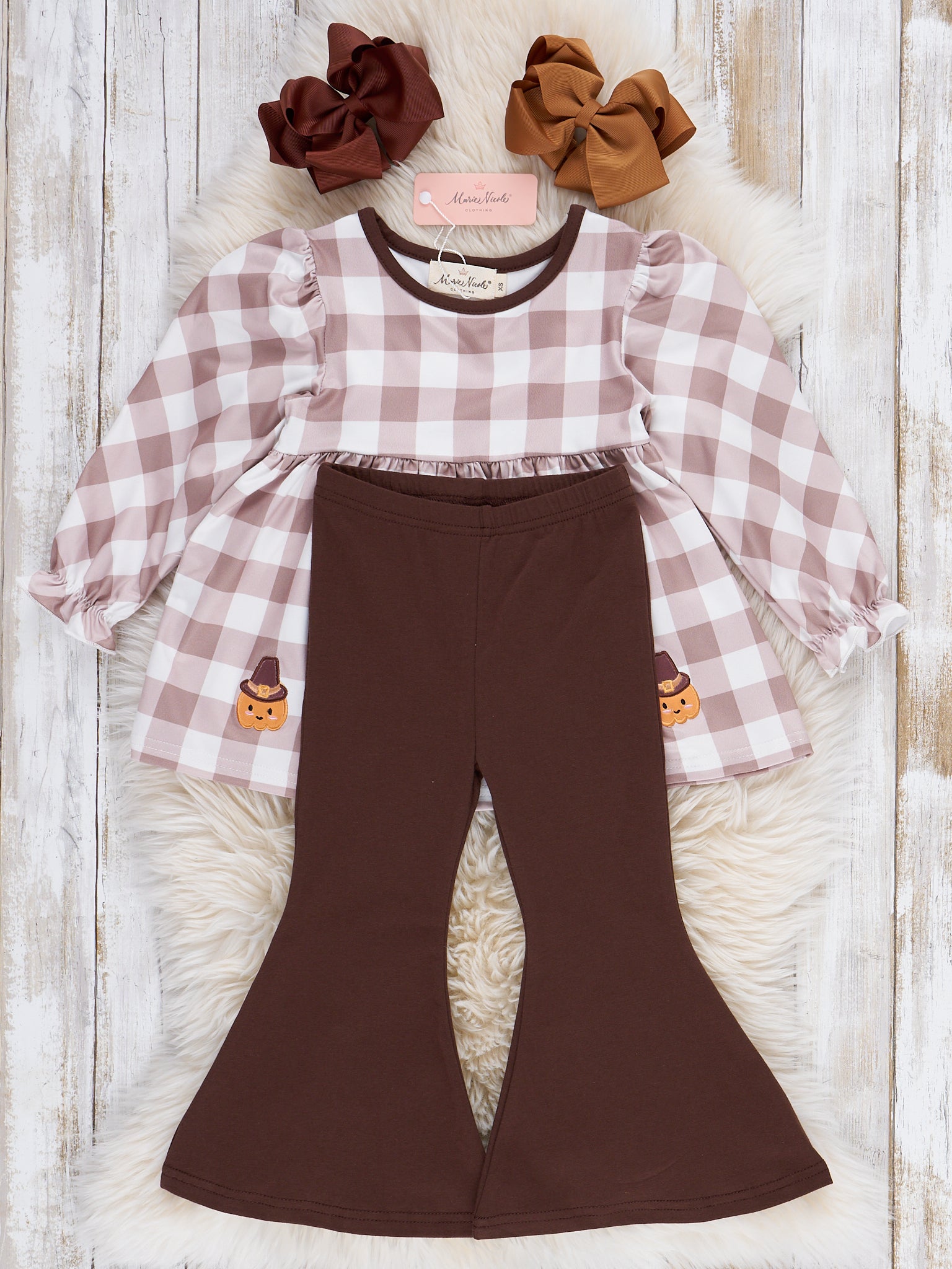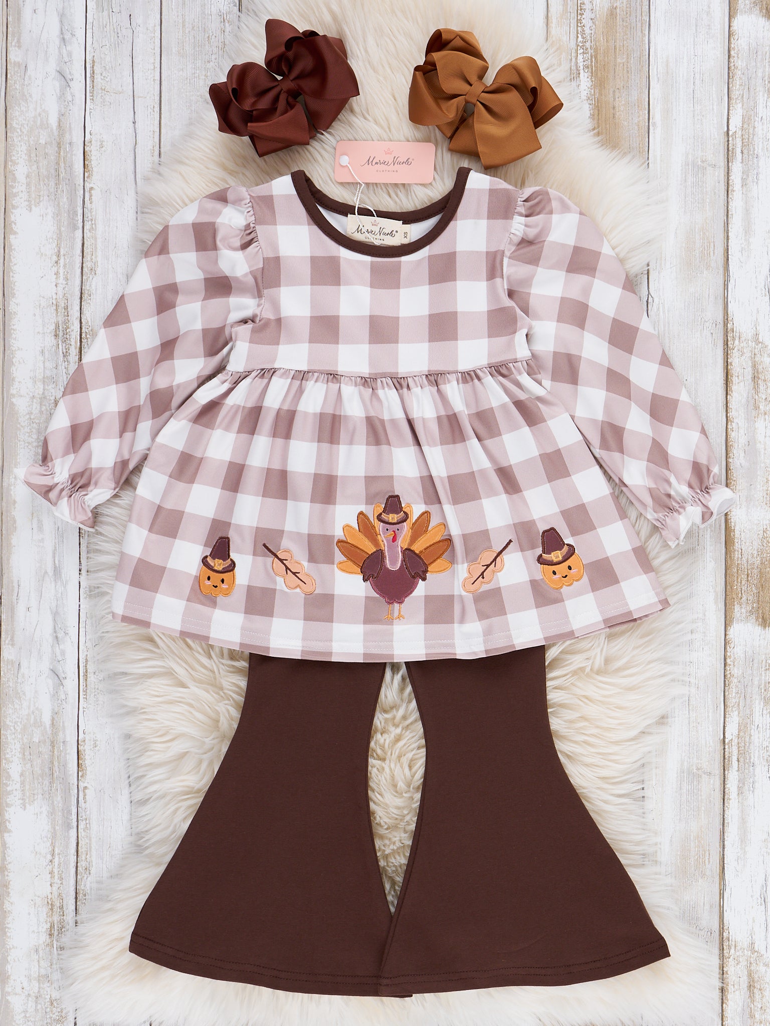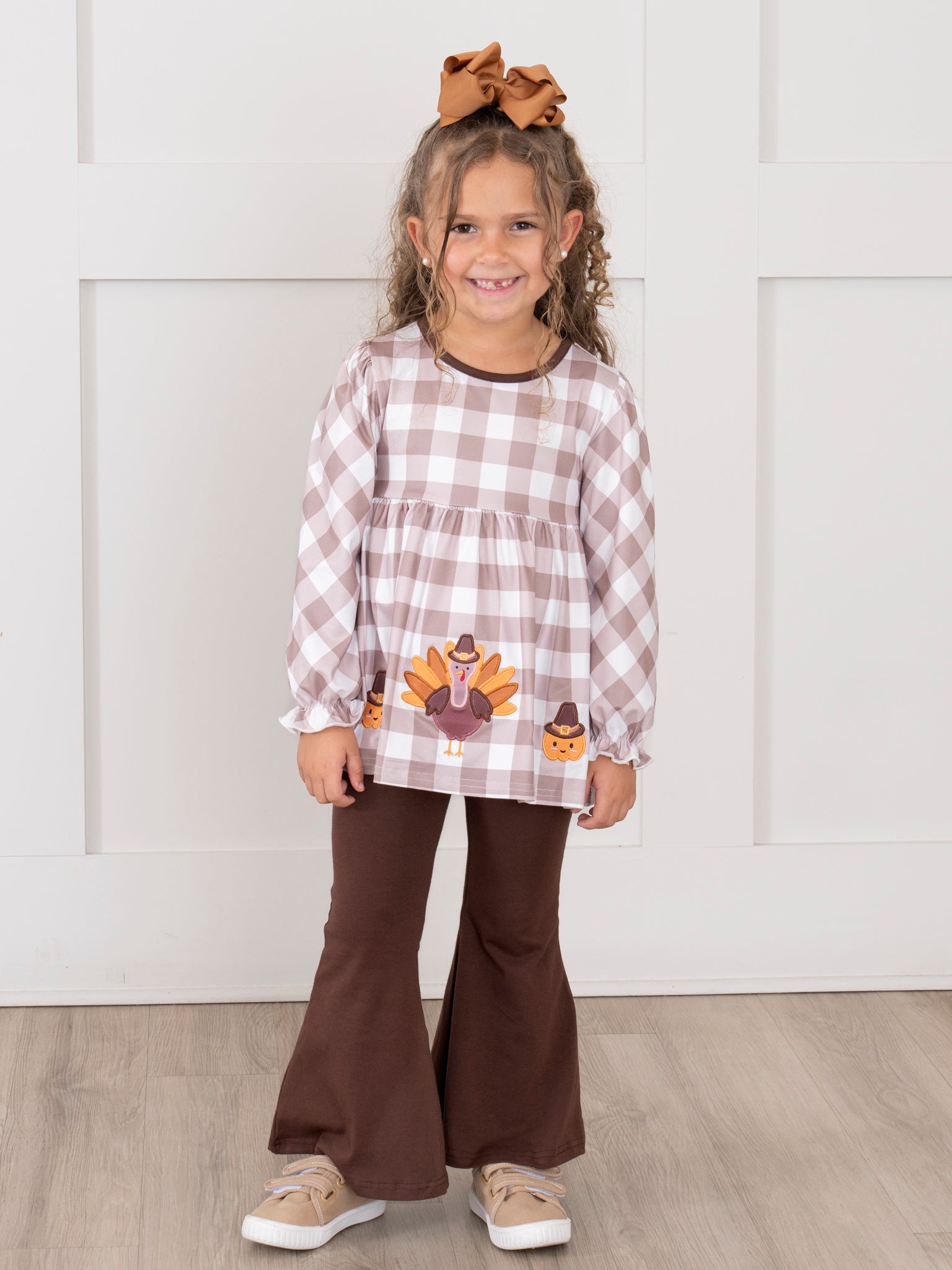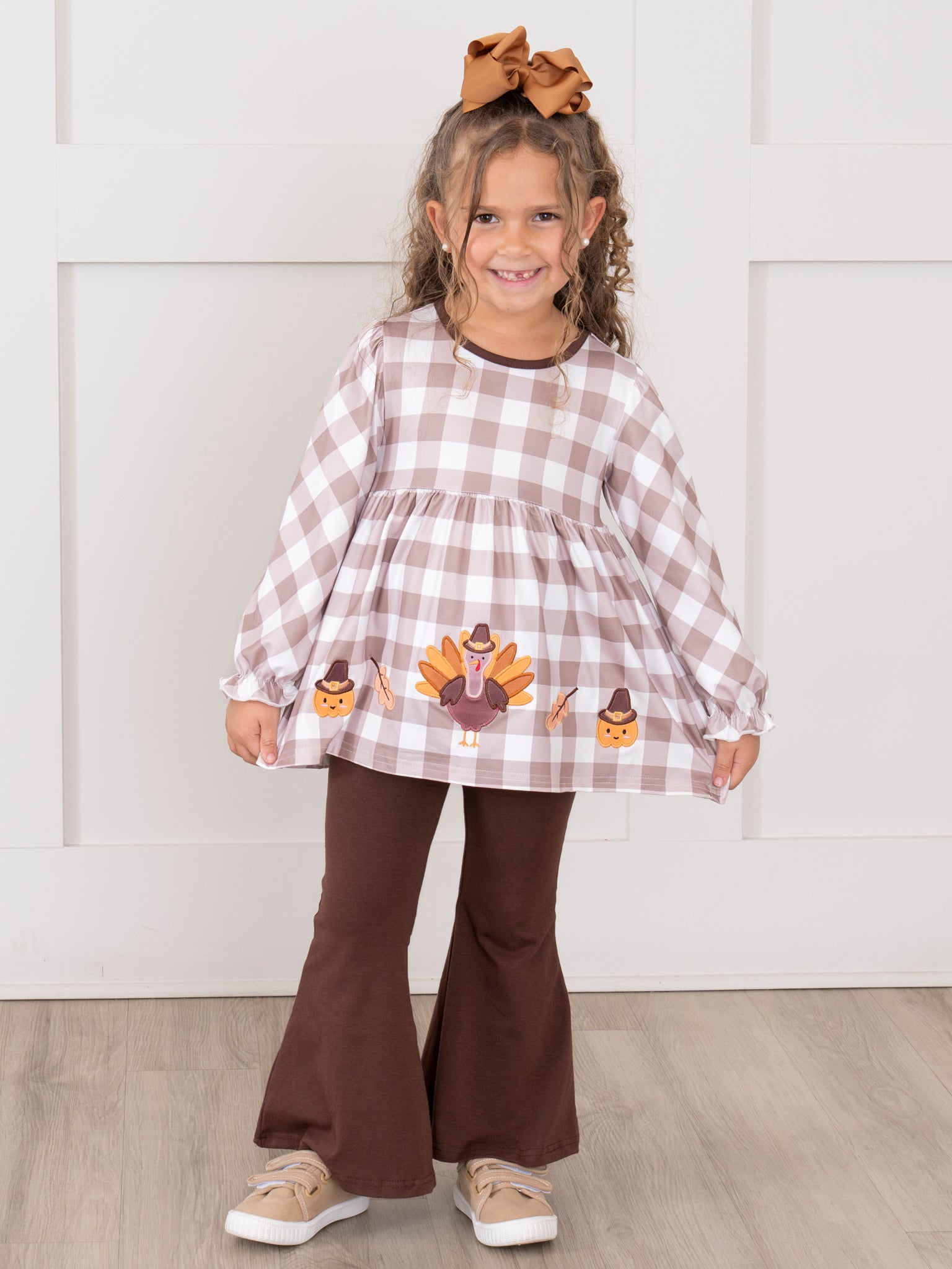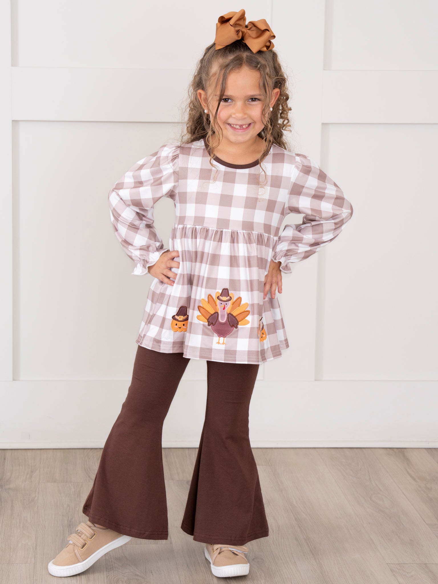 Turkey Gingham Celebration Embroidered Bell Bottom Outfit