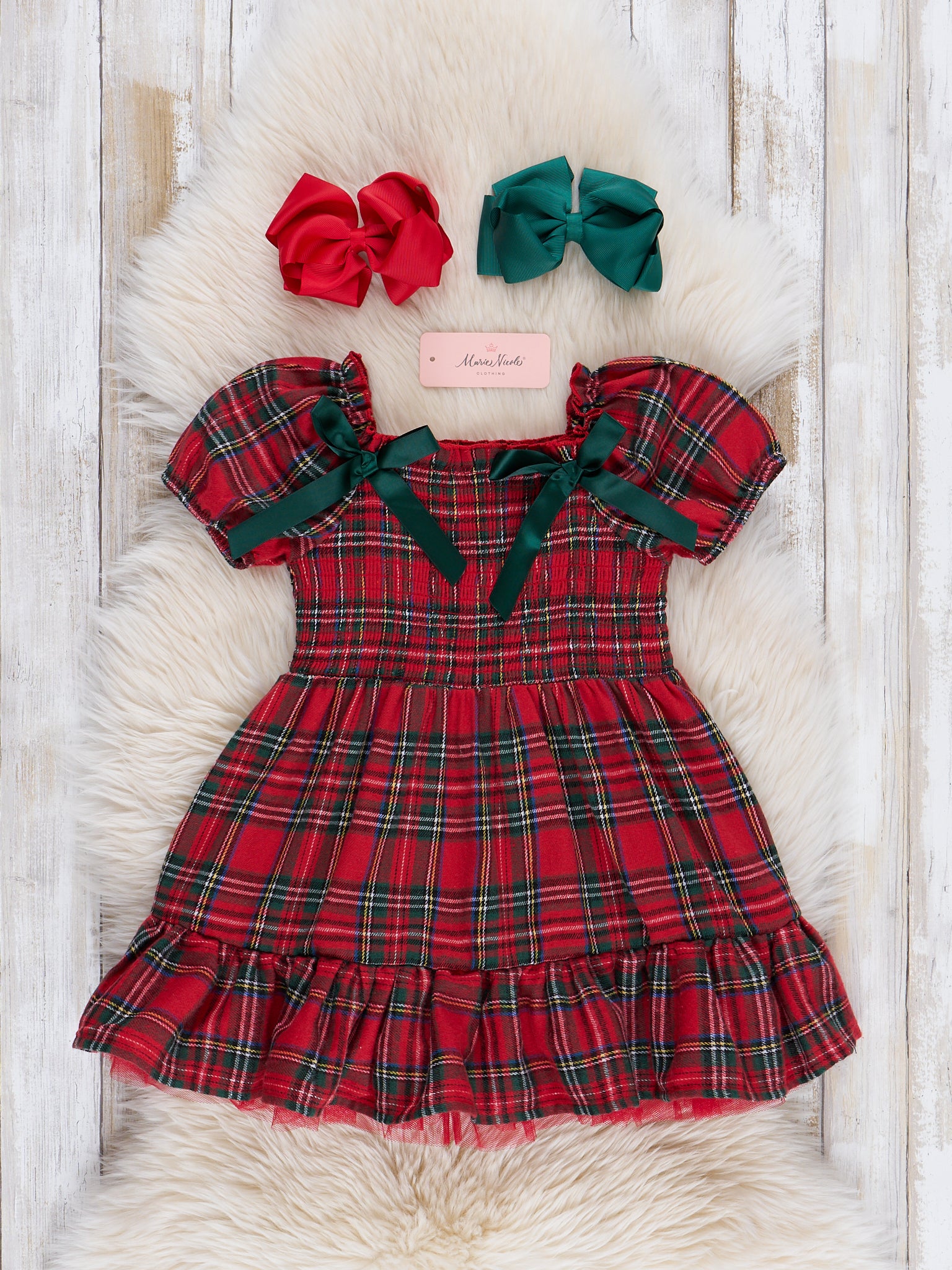 Red & Green Smocked Christmas Tartan Ruffle Dress