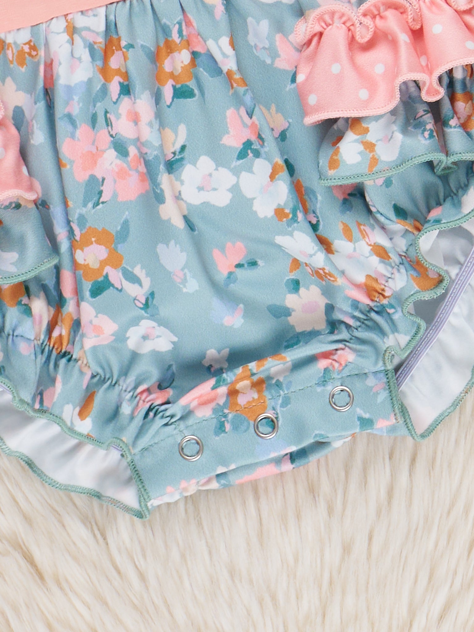Golden Blooms Floral Ruffle Sleeper Pajamas