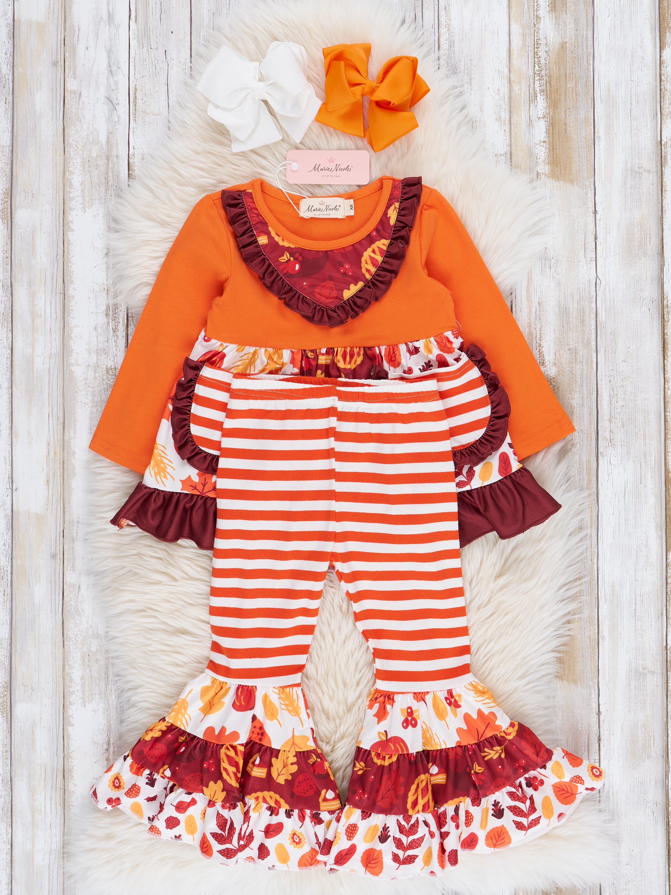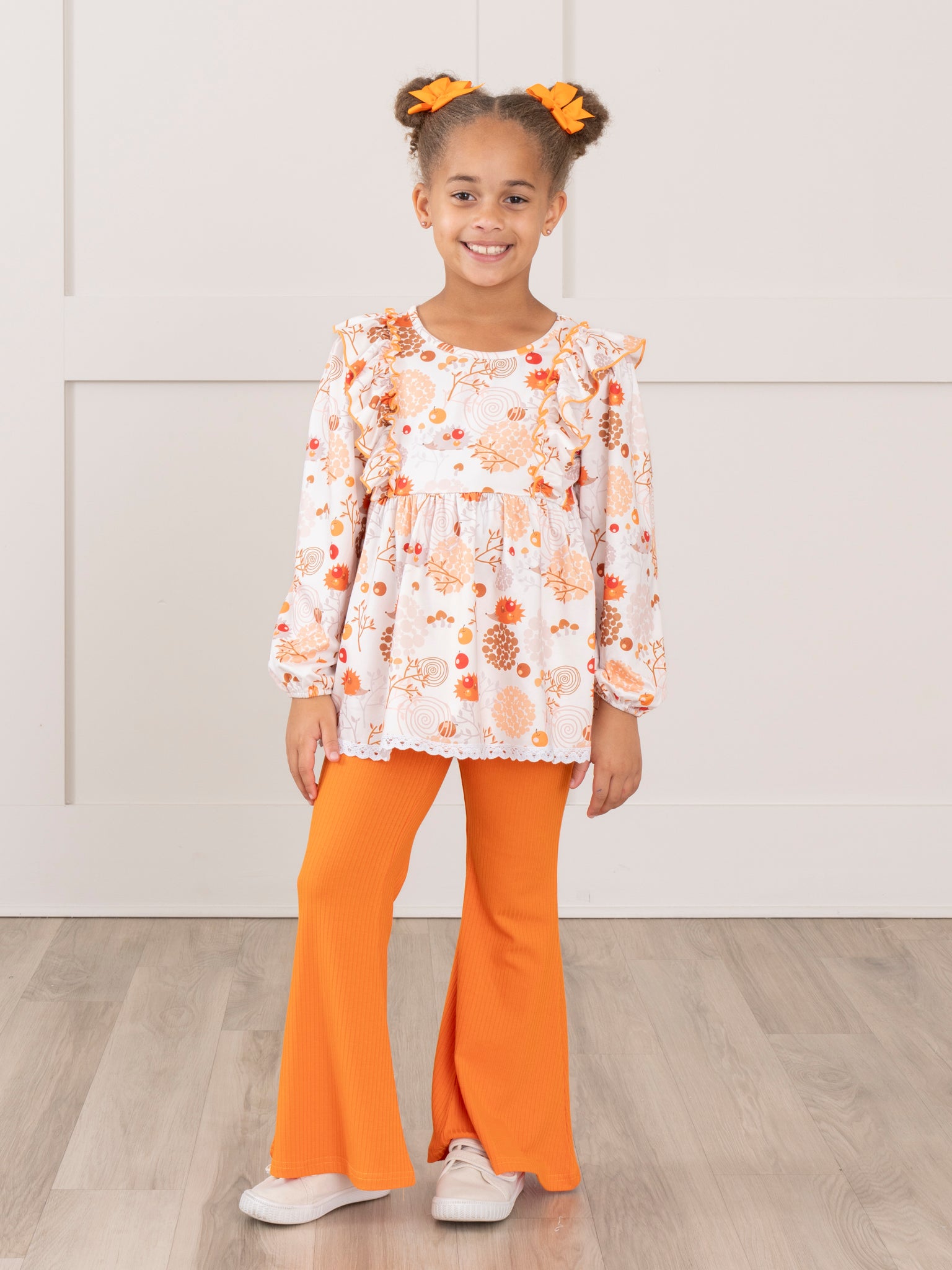 Orange Ruffle Floral Chicken Bell Bottom Outfit