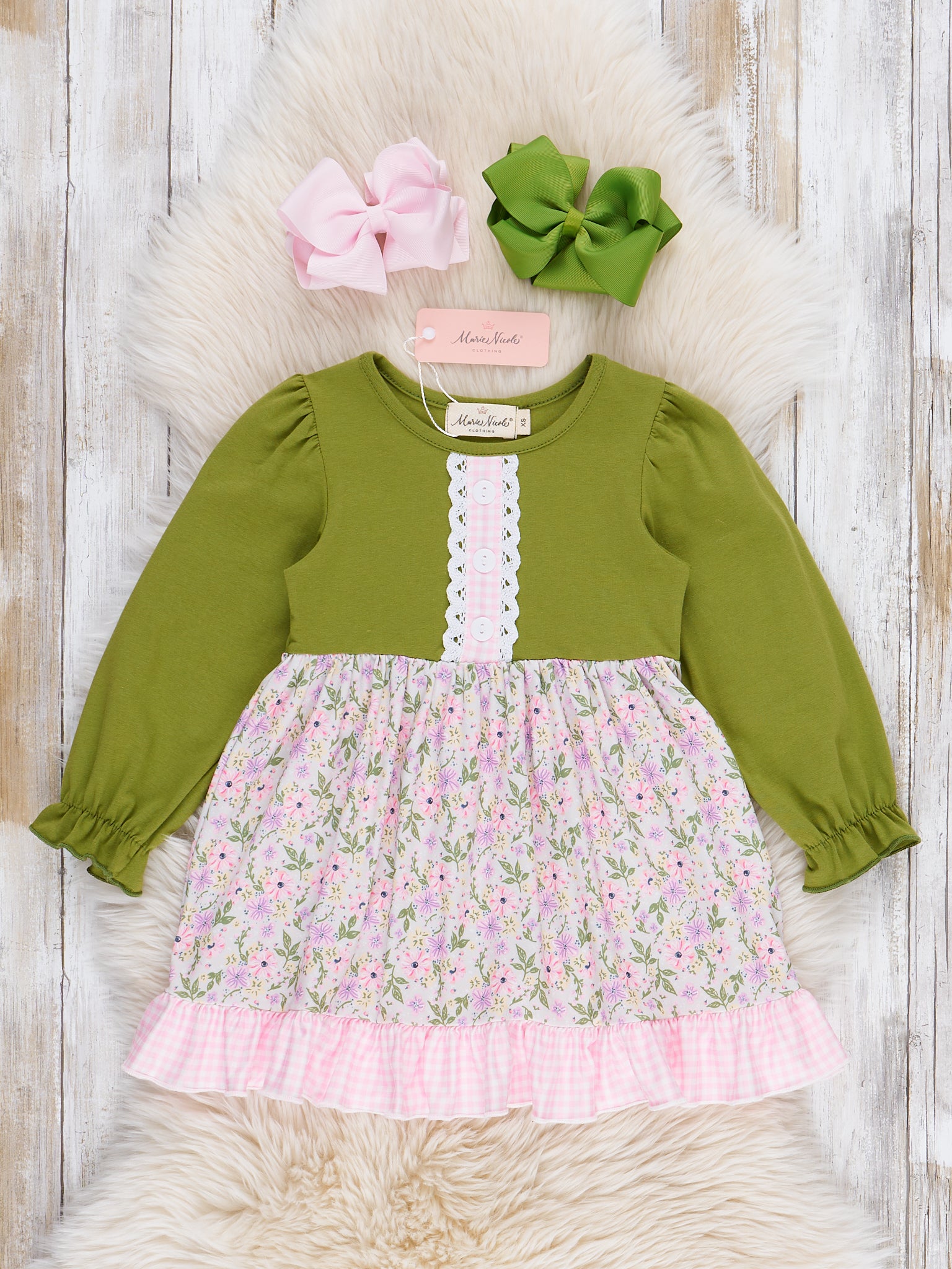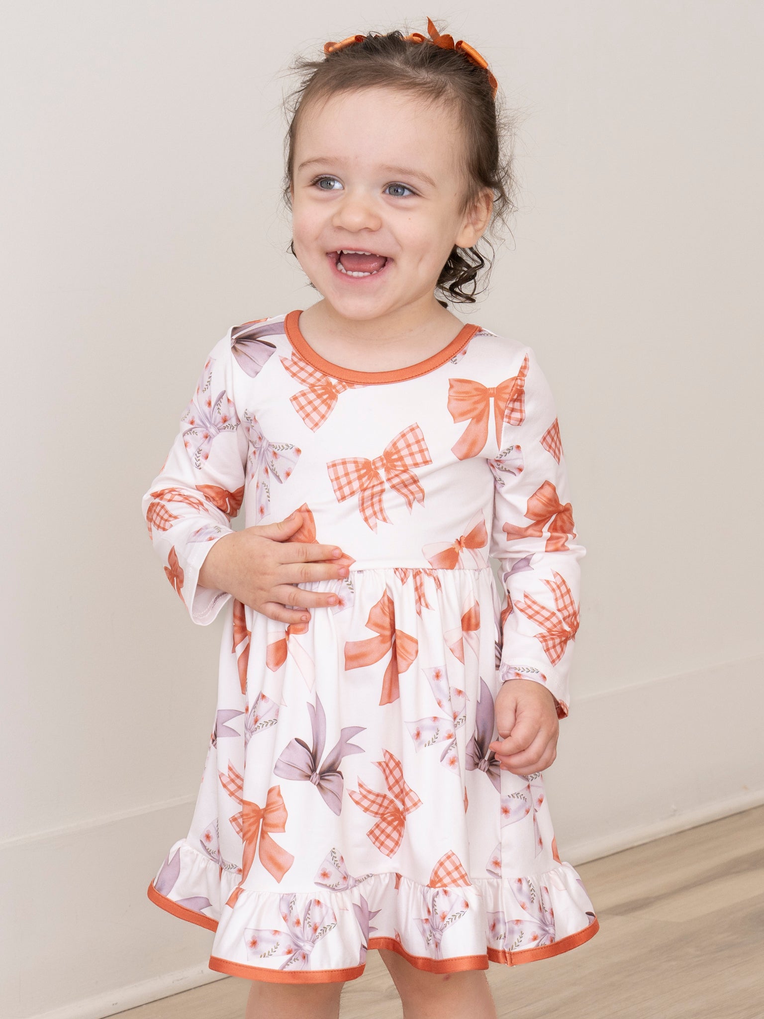 "Fall Vibes" Smocked Ruffle Leaves Dress