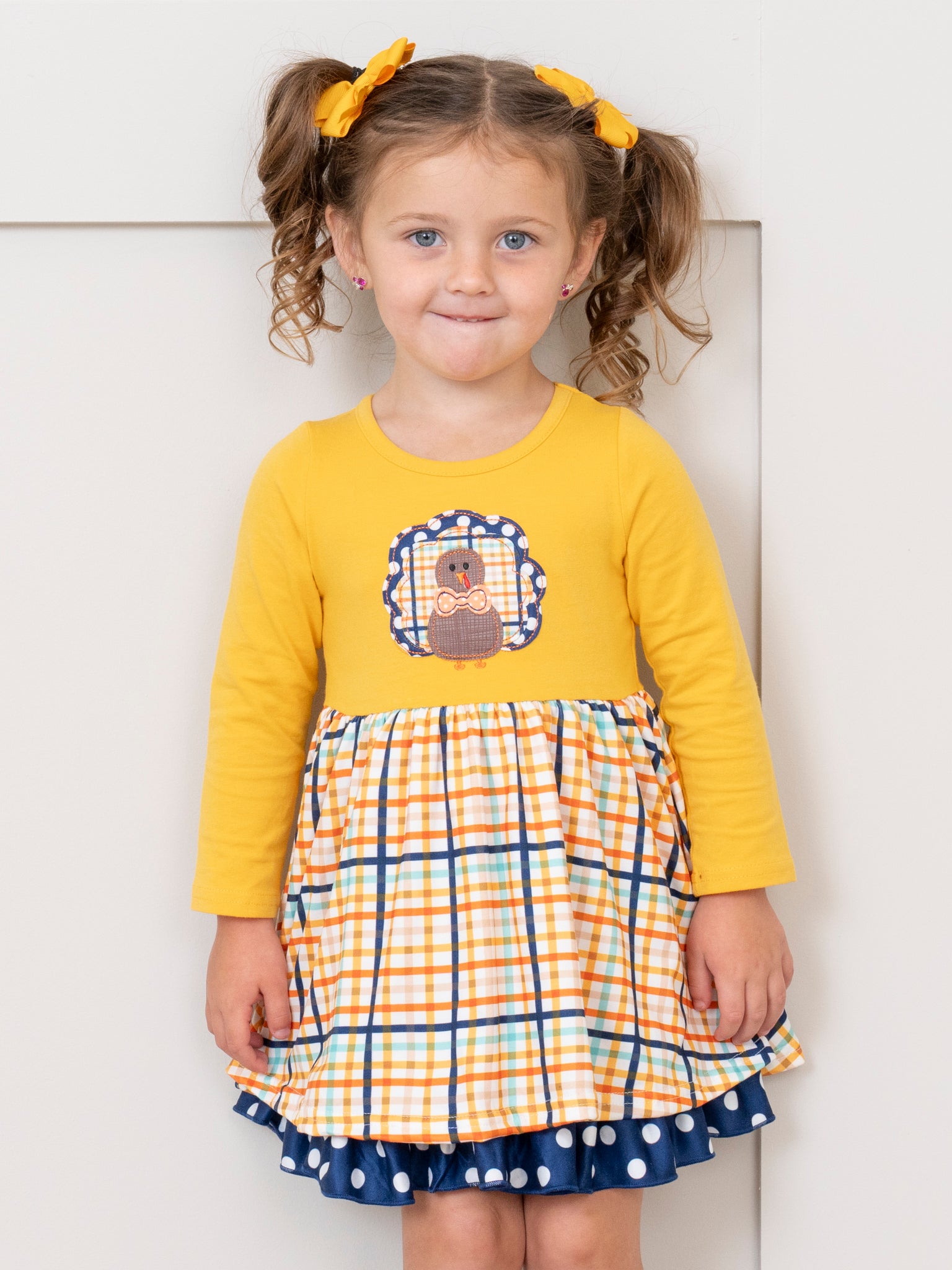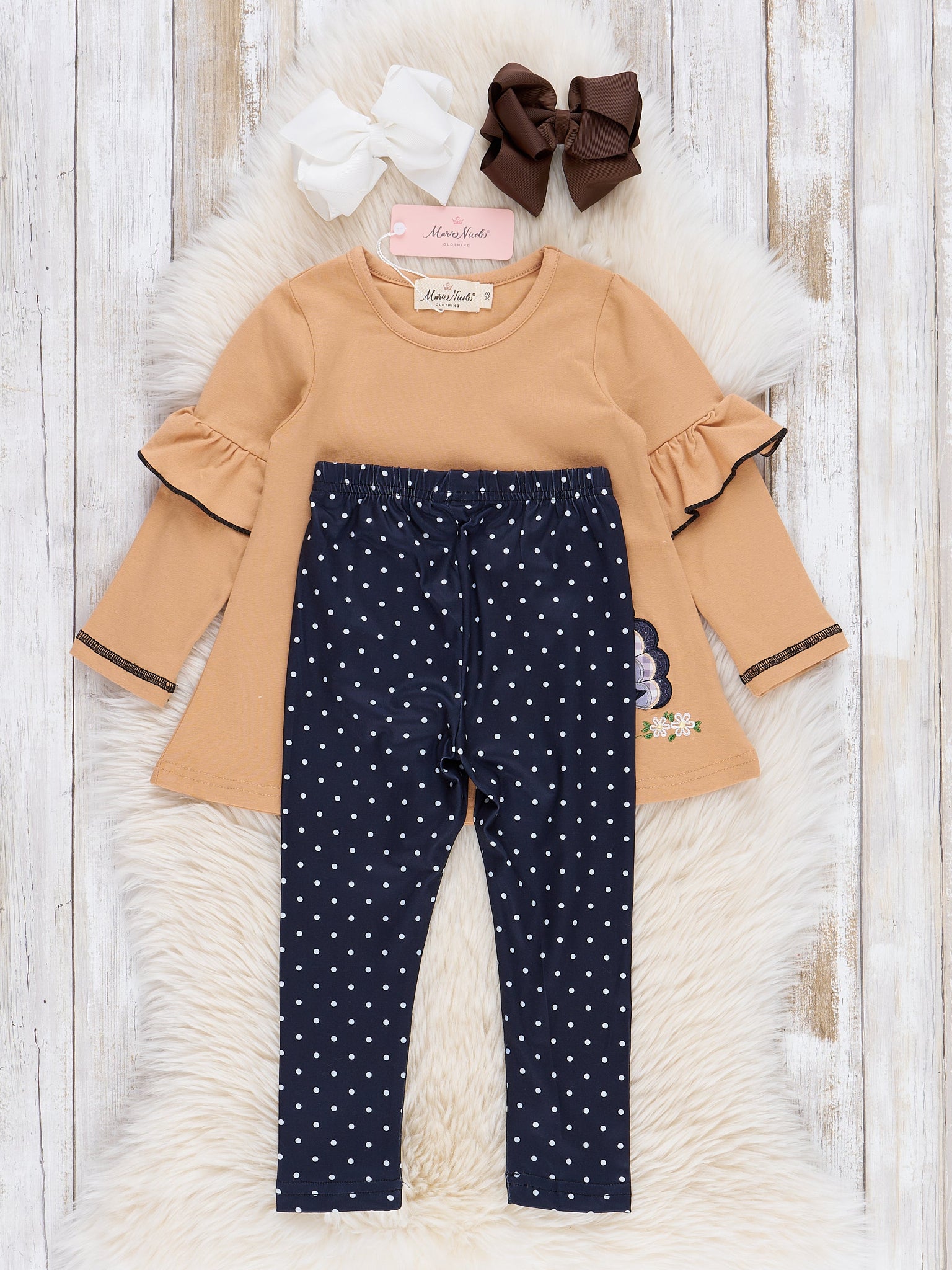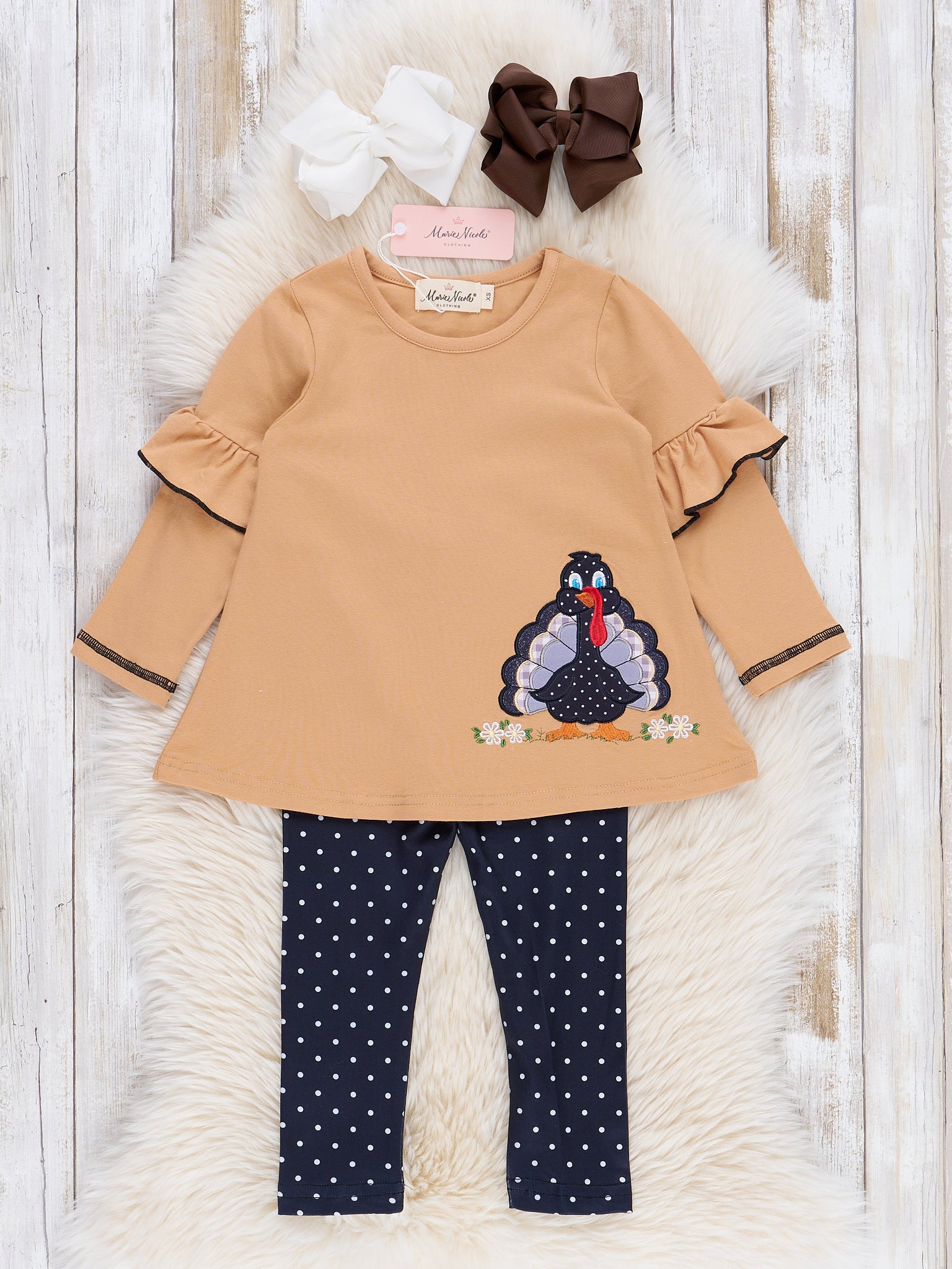 Tan & Black Embroidered Turkey Ruffle Outfit