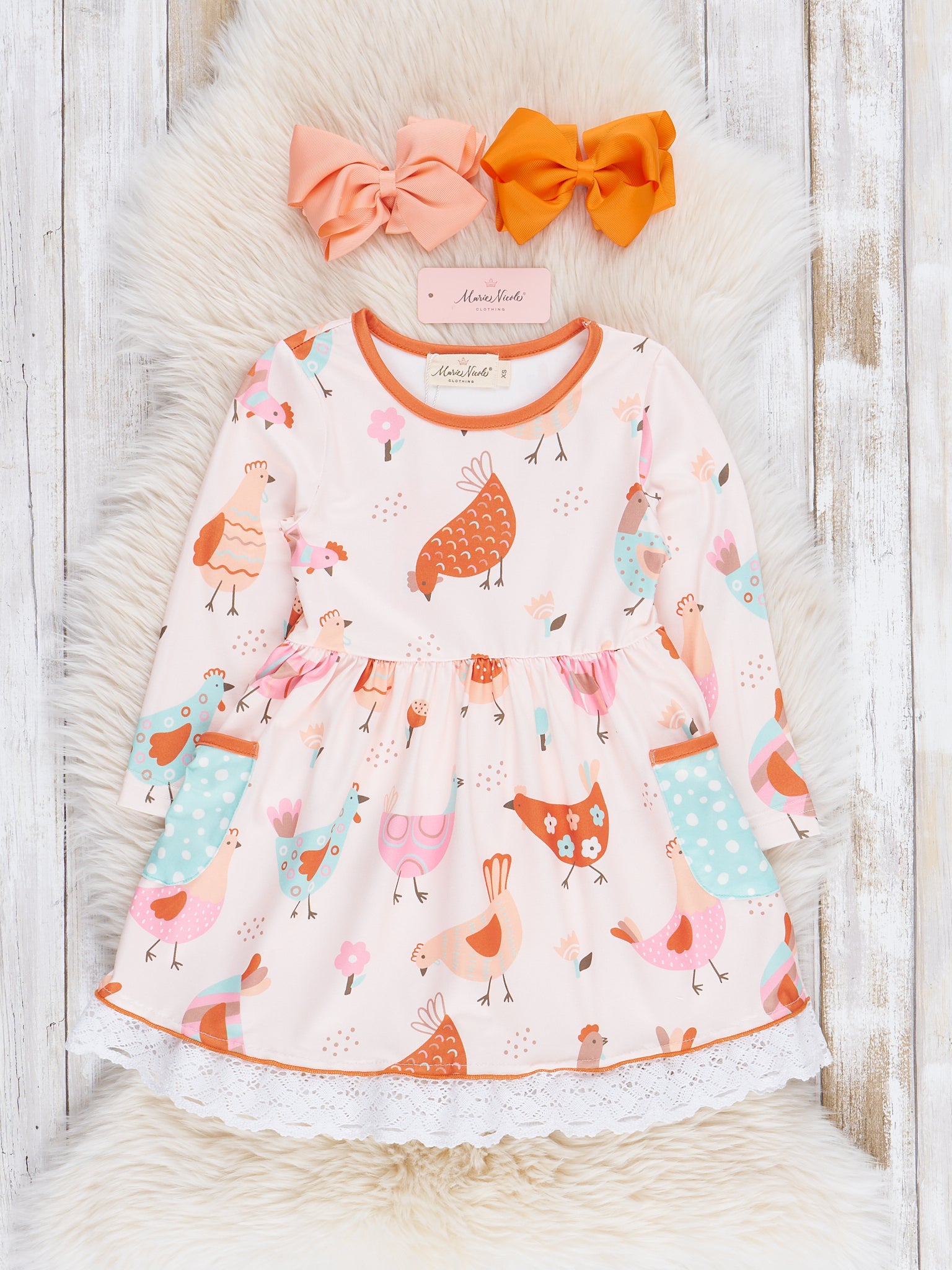 Orange Floral Chicken Pom Pom Outfit w/ Scarf