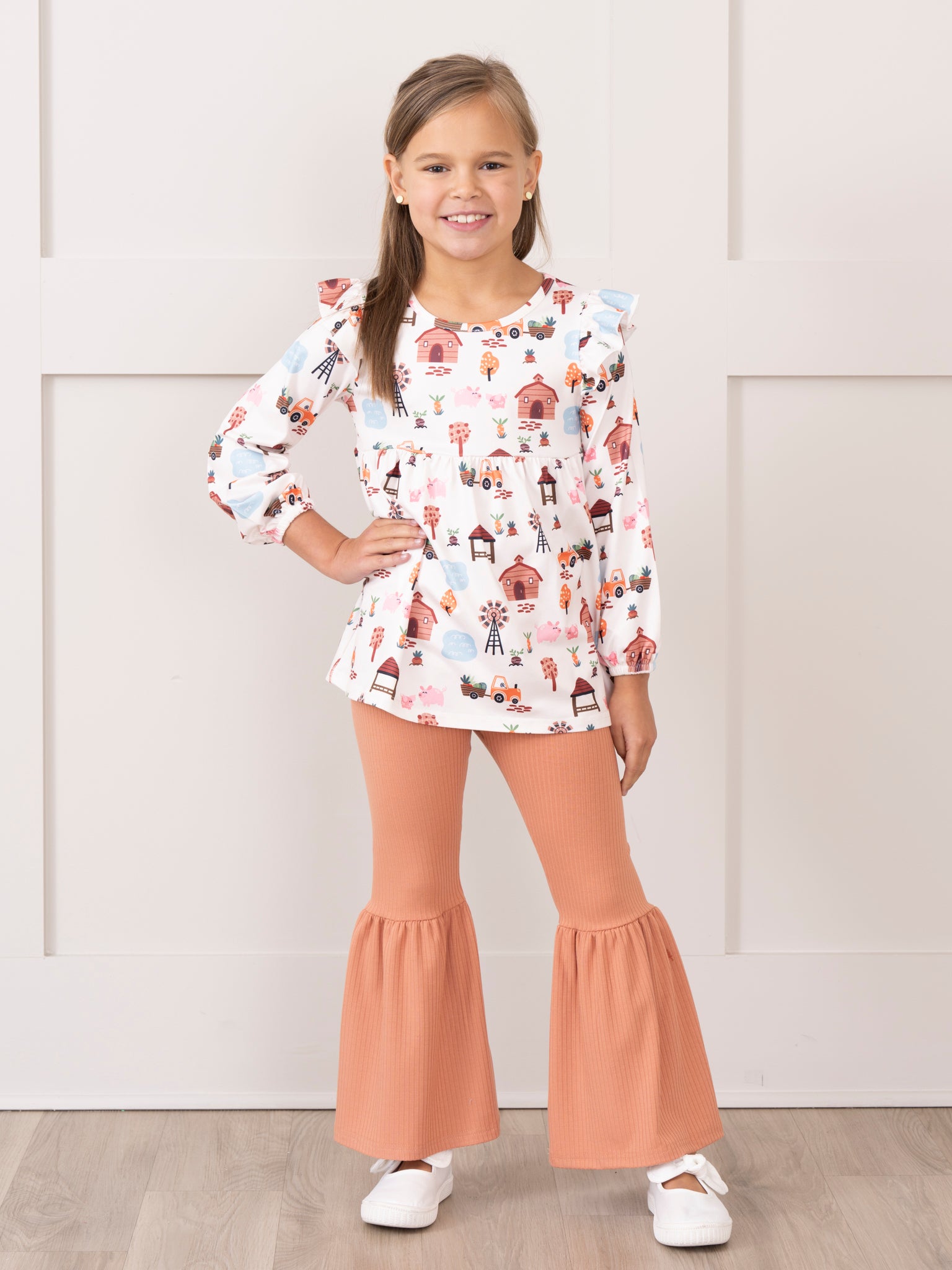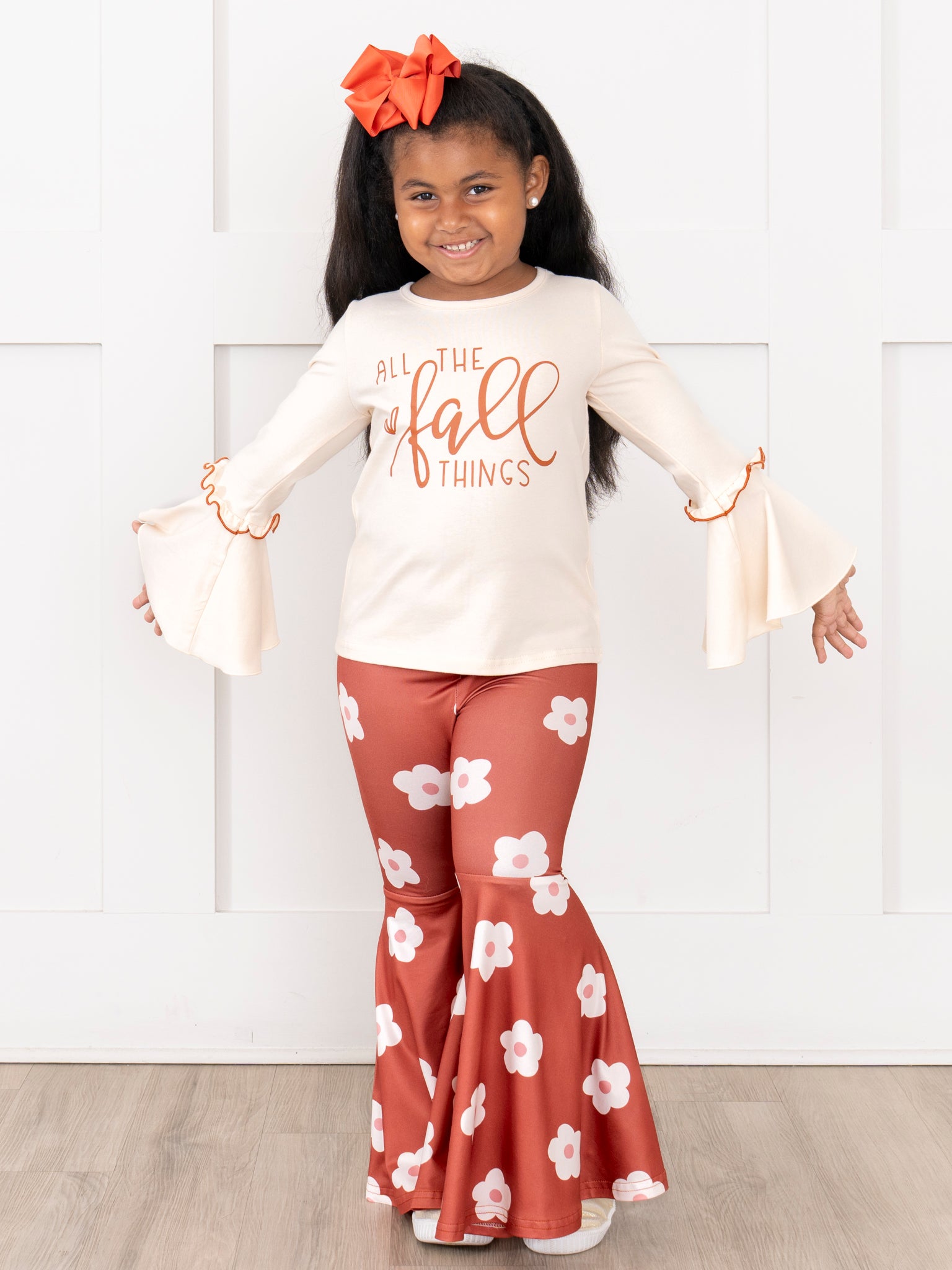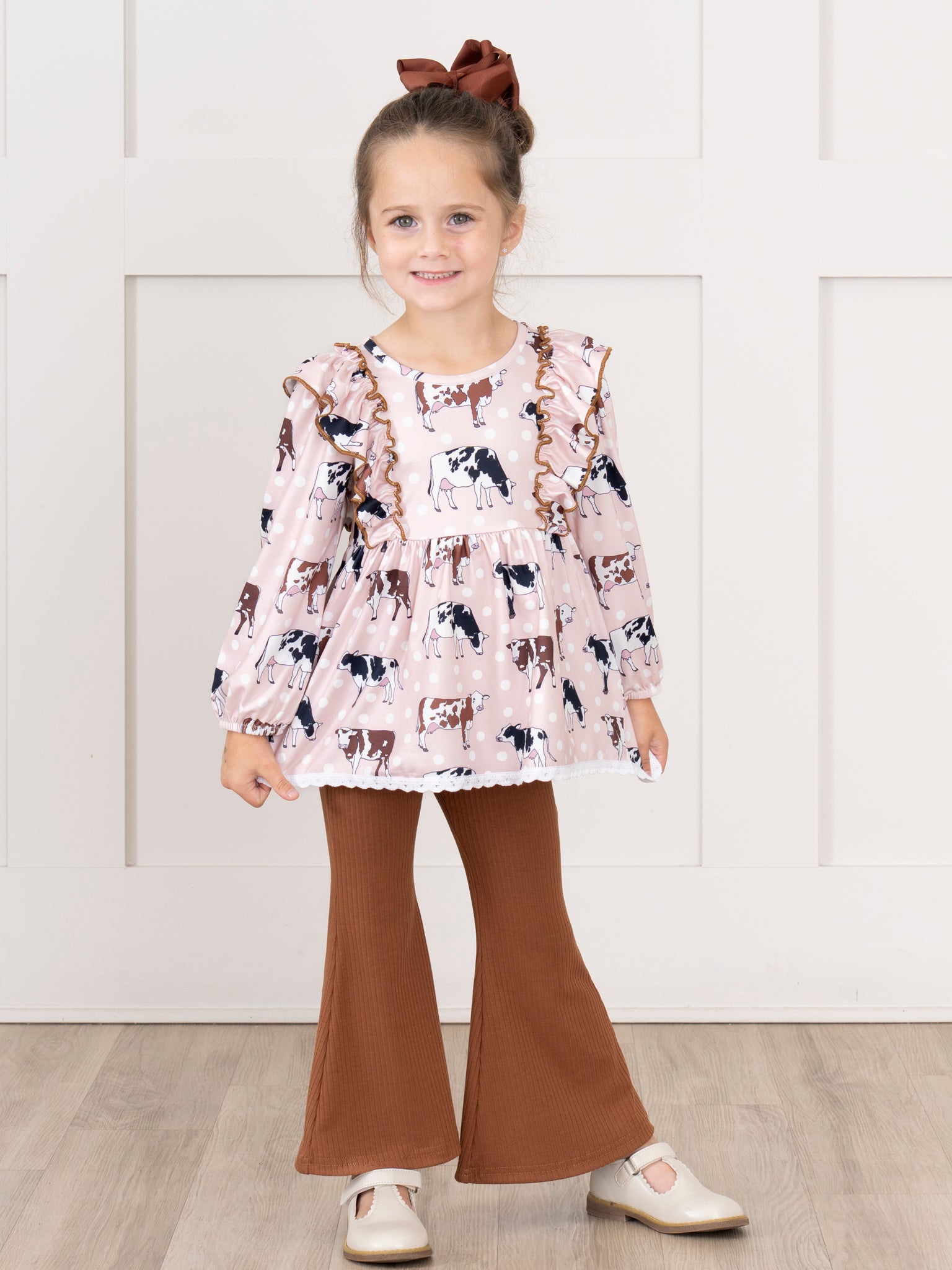 Pink & Brown "Howdy Fall" Cow Print Bell Bottoms Outfit