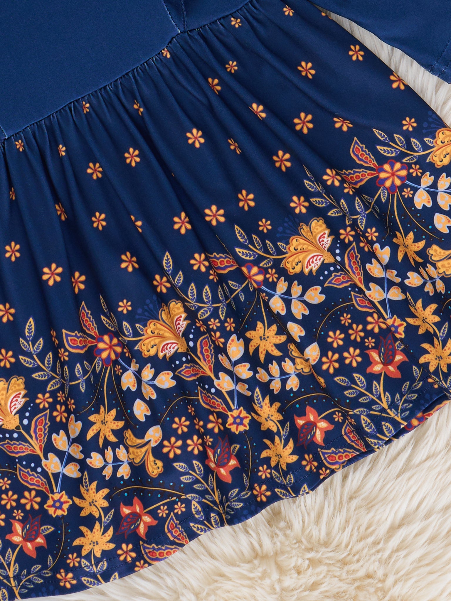 Navy Floral Harvest Ruffle Dress