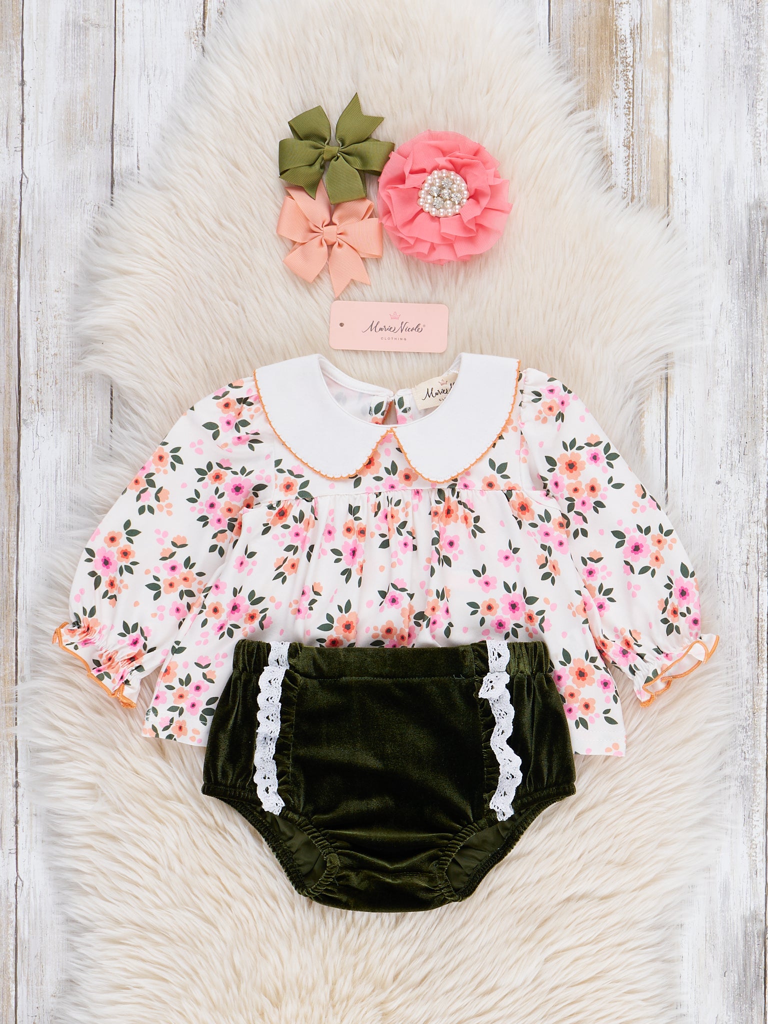 Sage Floral Pumpkin Lace Ruffle Outfit