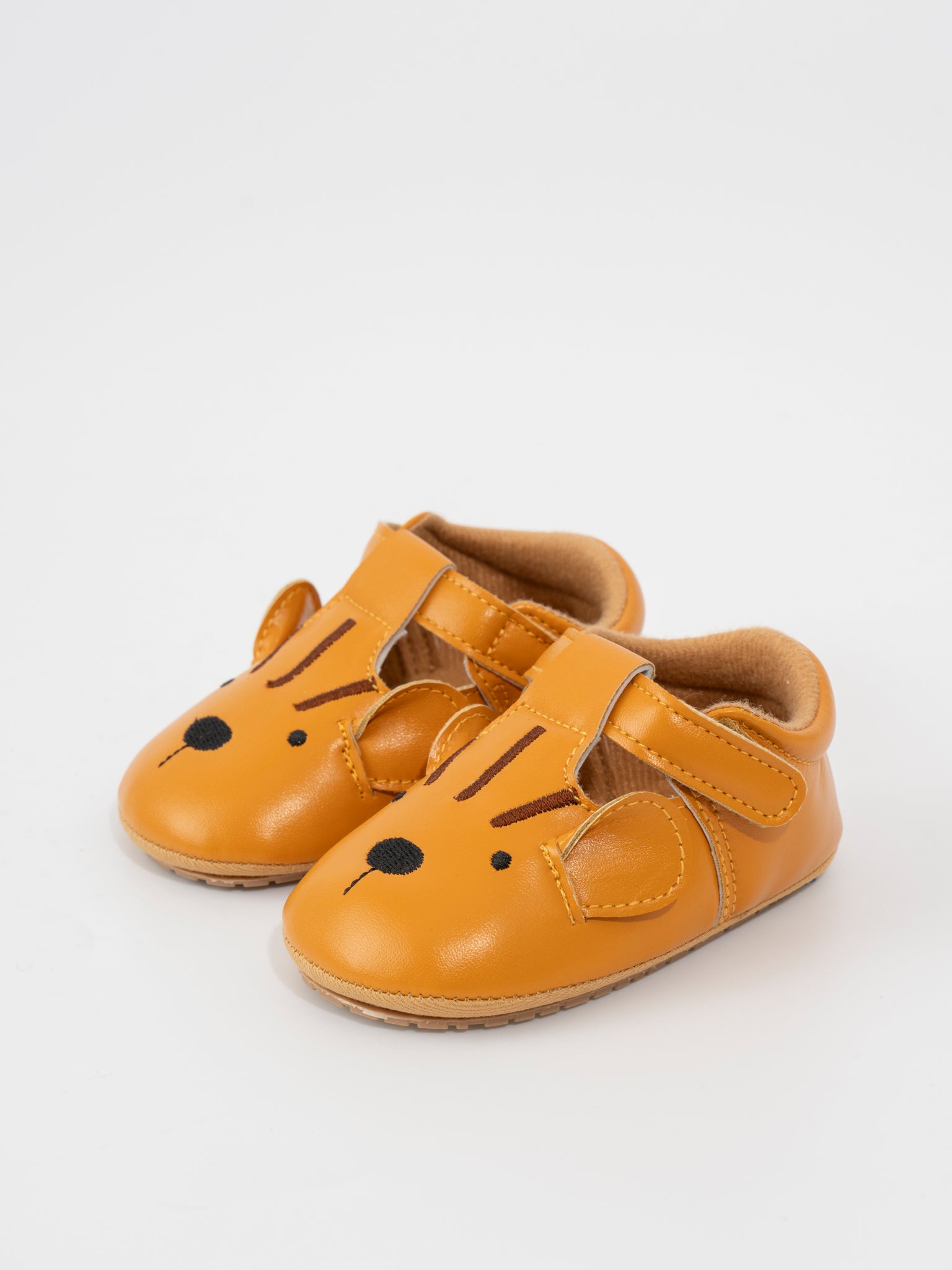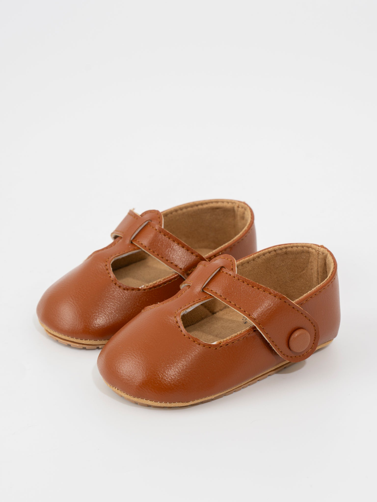 Scalloped Heel Bows Mary Jane Baby Shoes Brown