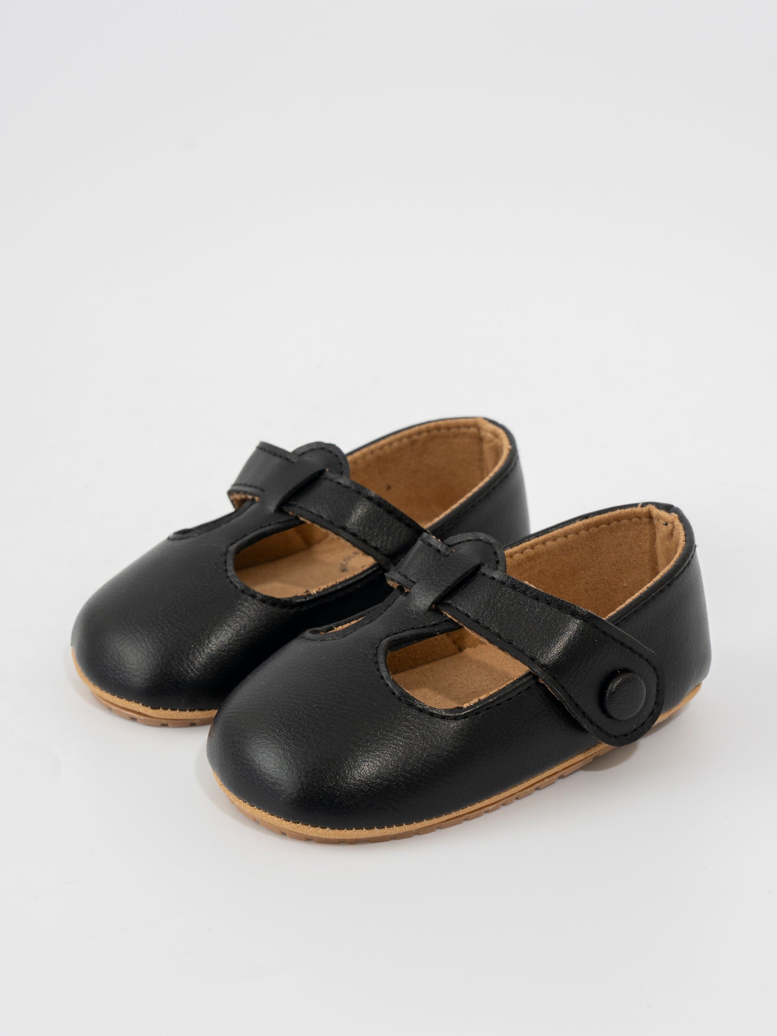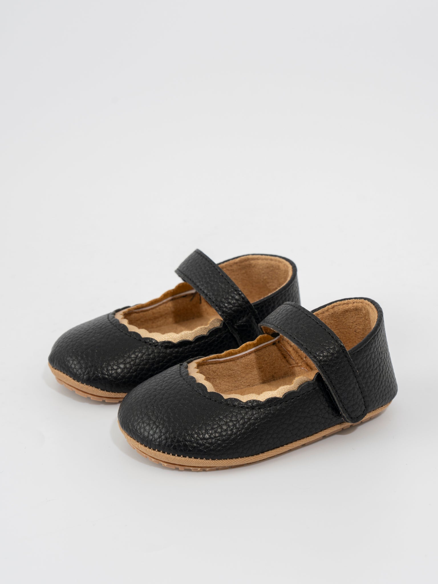 Scalloped Heel Bows Mary Jane Baby Shoes Black
