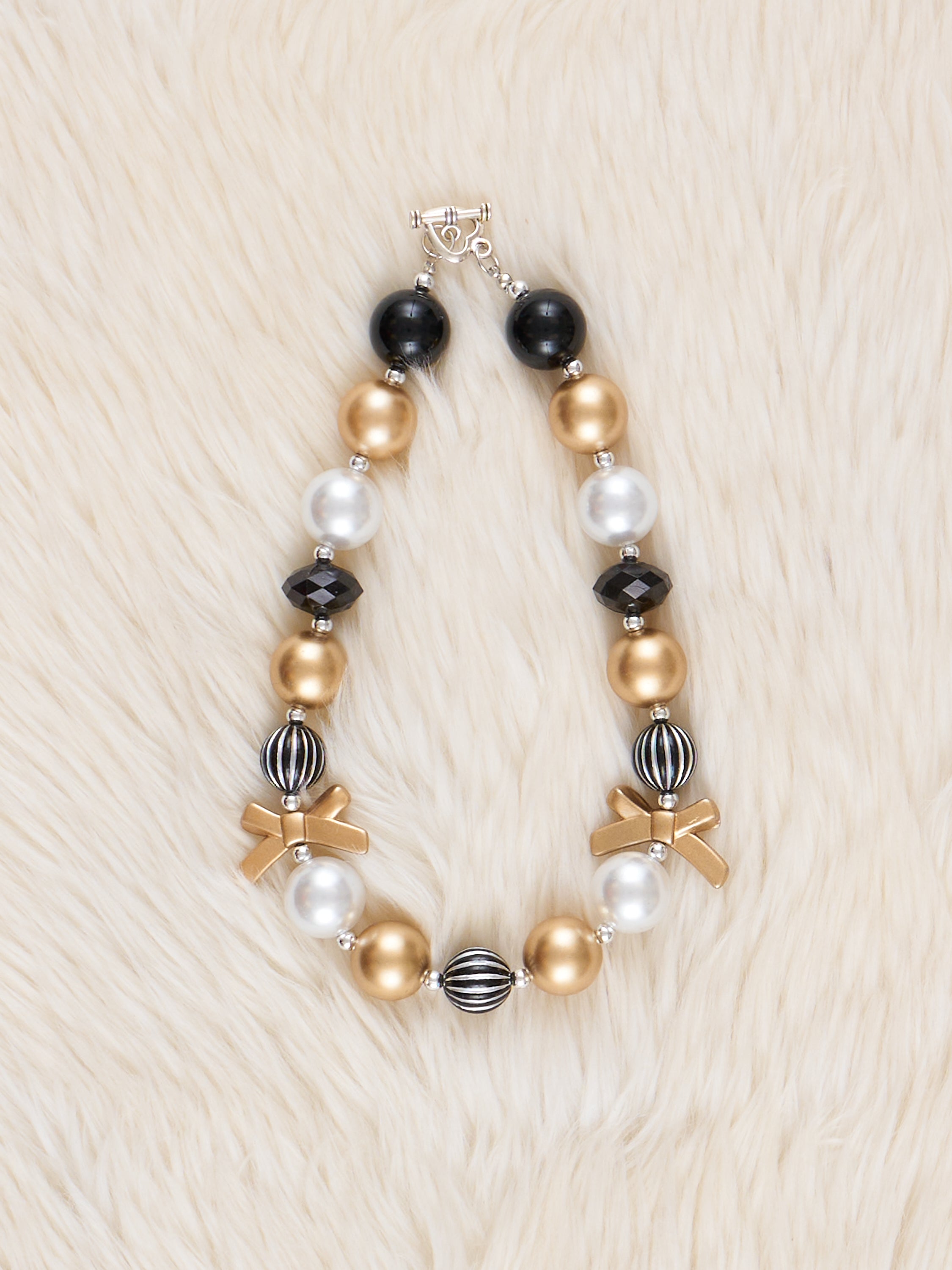 Black & Gold Bow Sparkle Bubble Necklace
