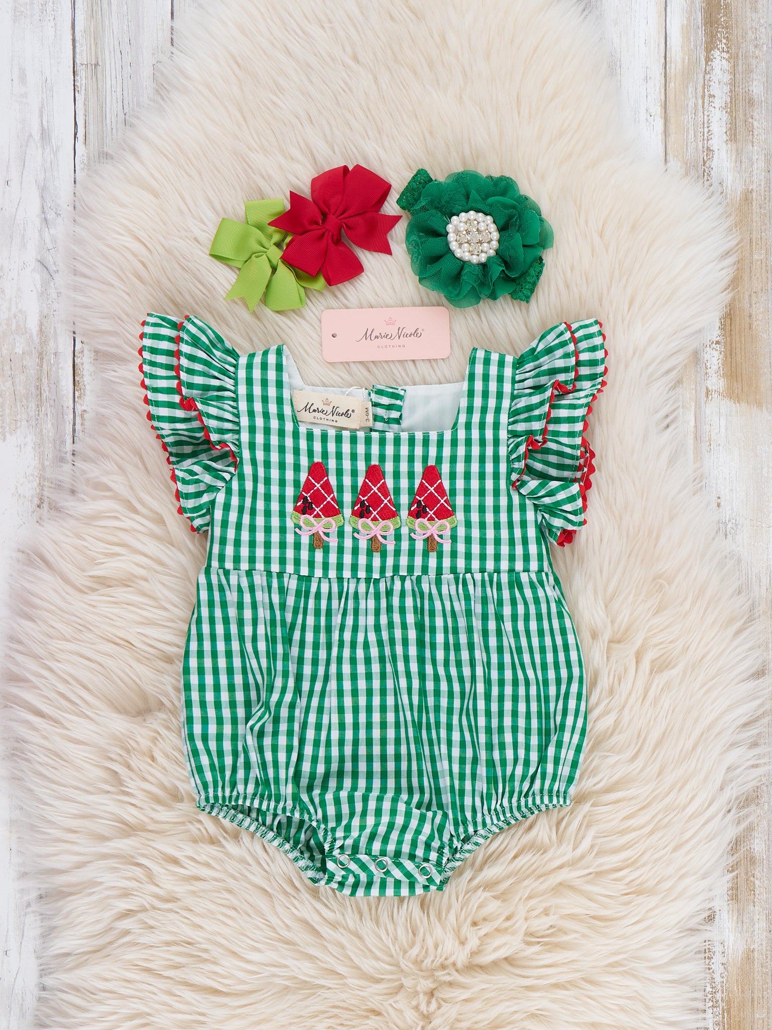 Watermelon Treats Gingham 100% Cotton Ruffle Bubble Romper