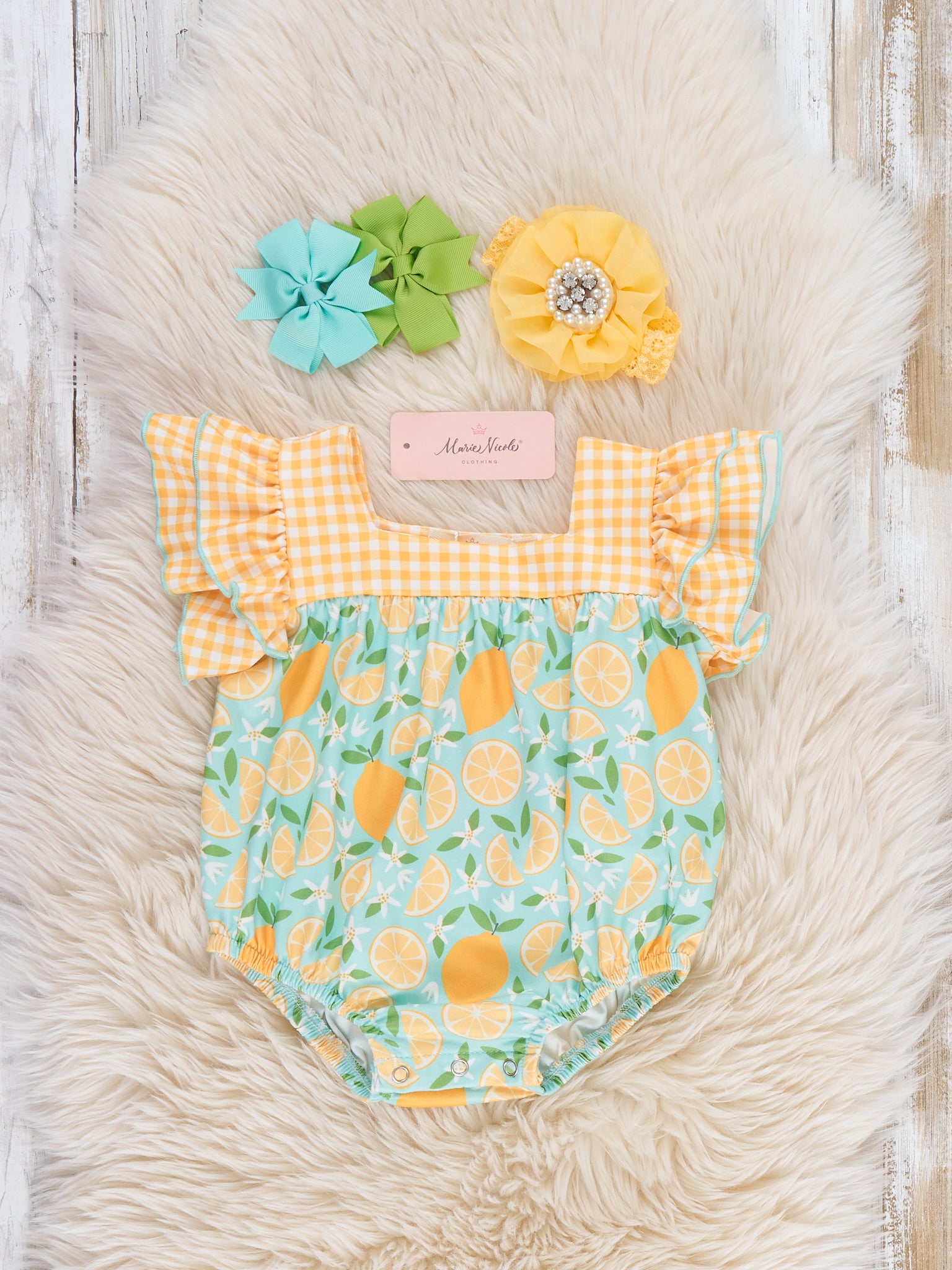 Sunny Lemon Plaid Ruffle Bubble Romper