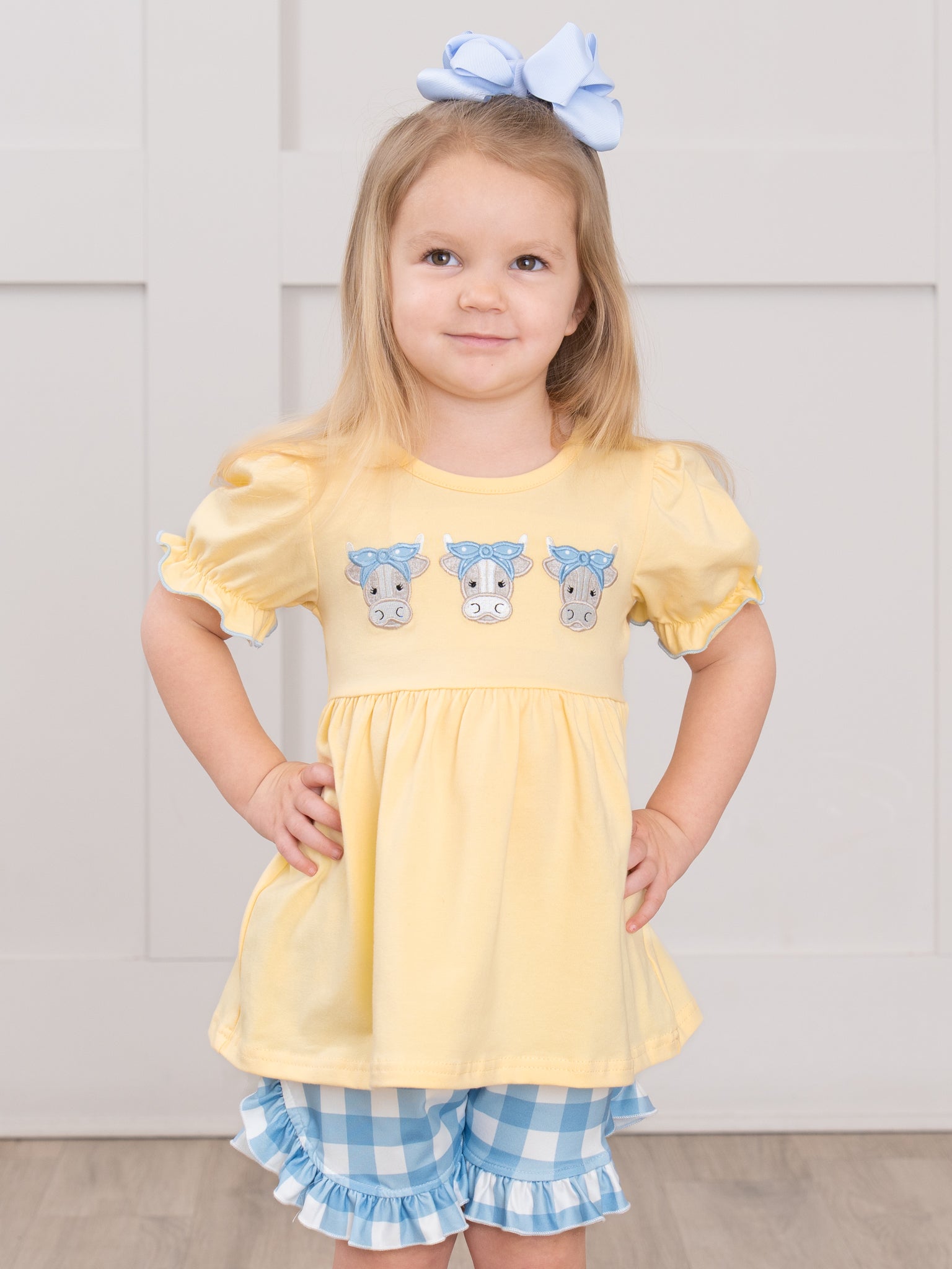 Embroidered Cows Gingham Ruffle Outfit