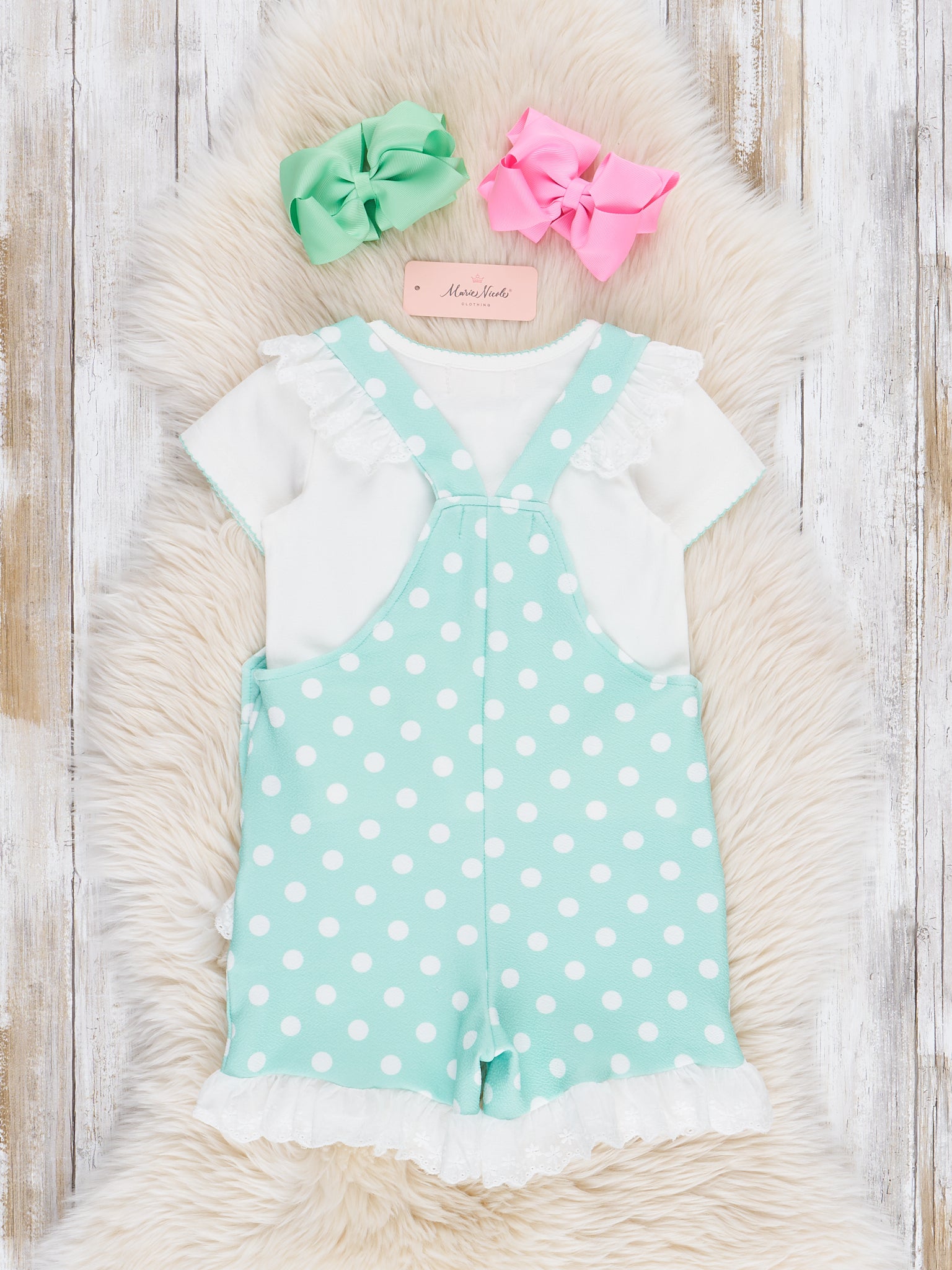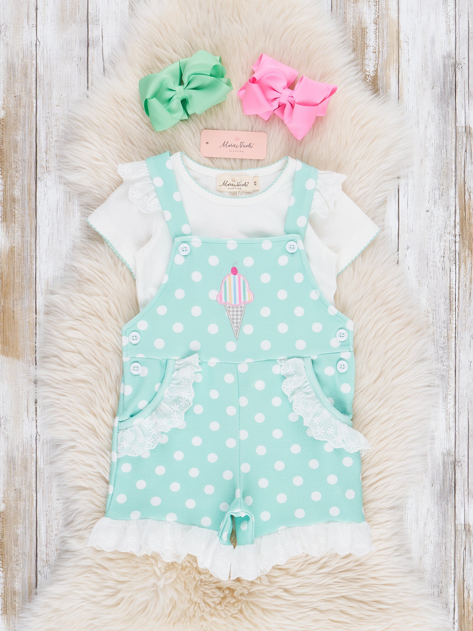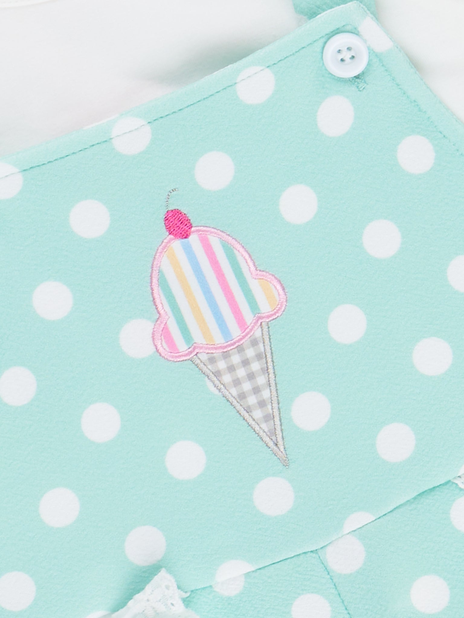 Polka Dot Embroidered Ice Cream Ruffle Overalls Set