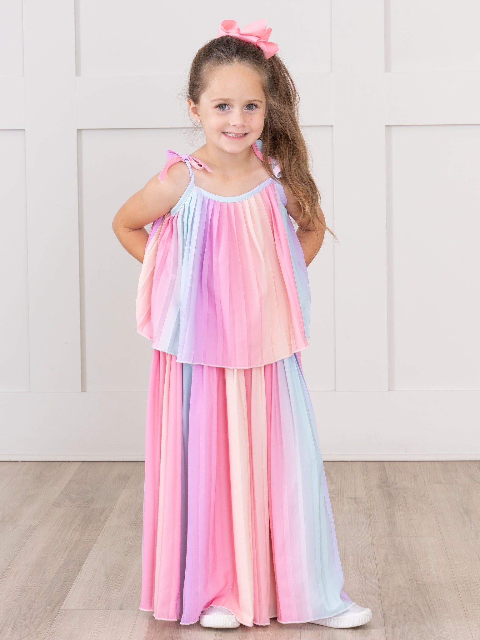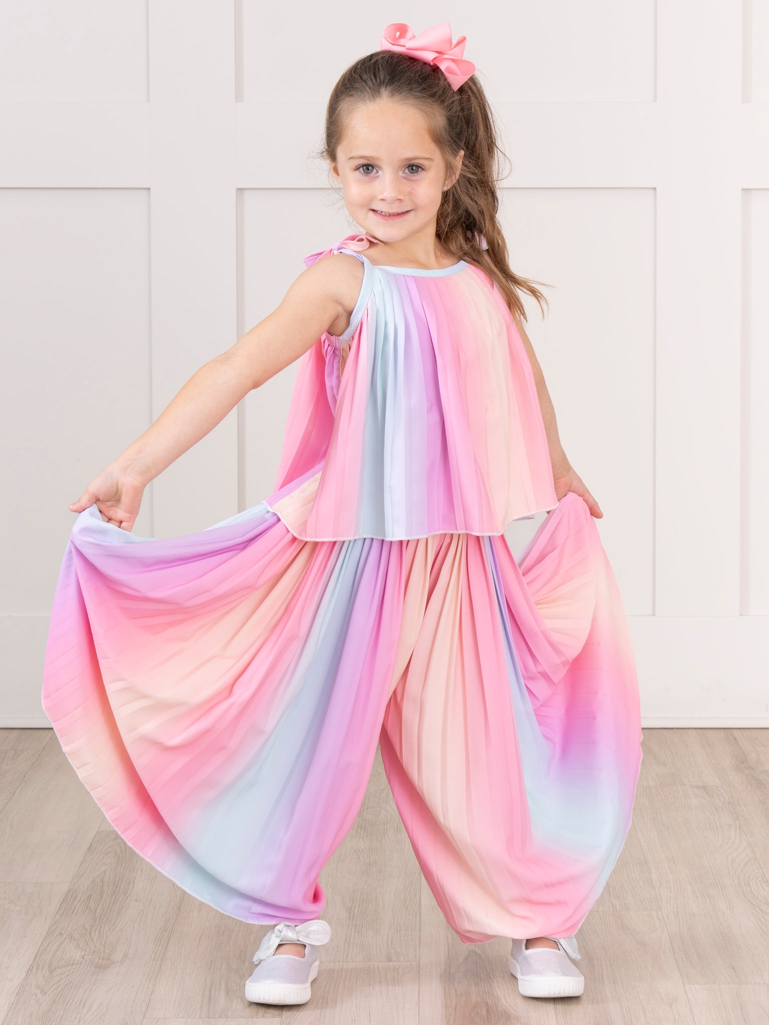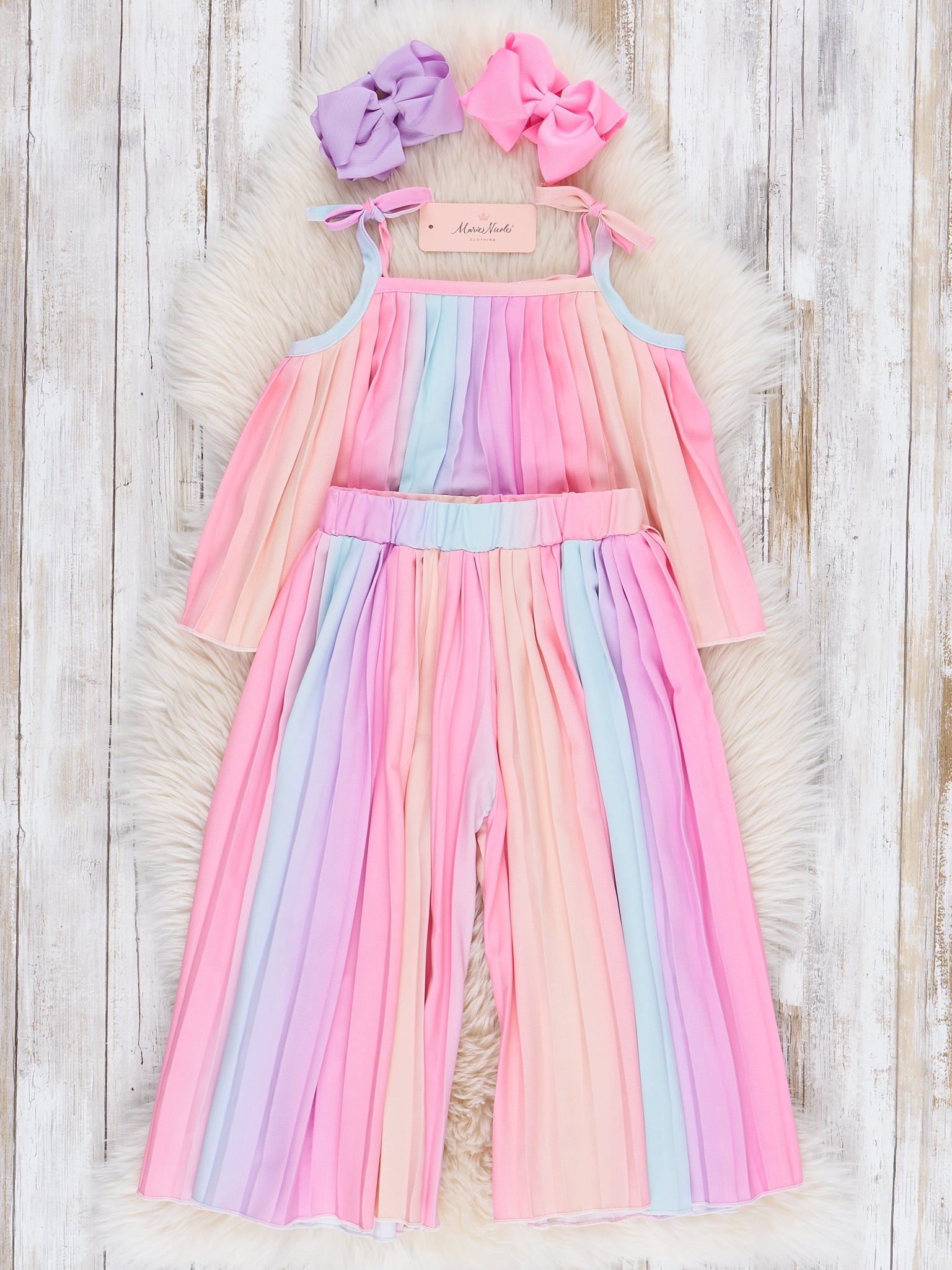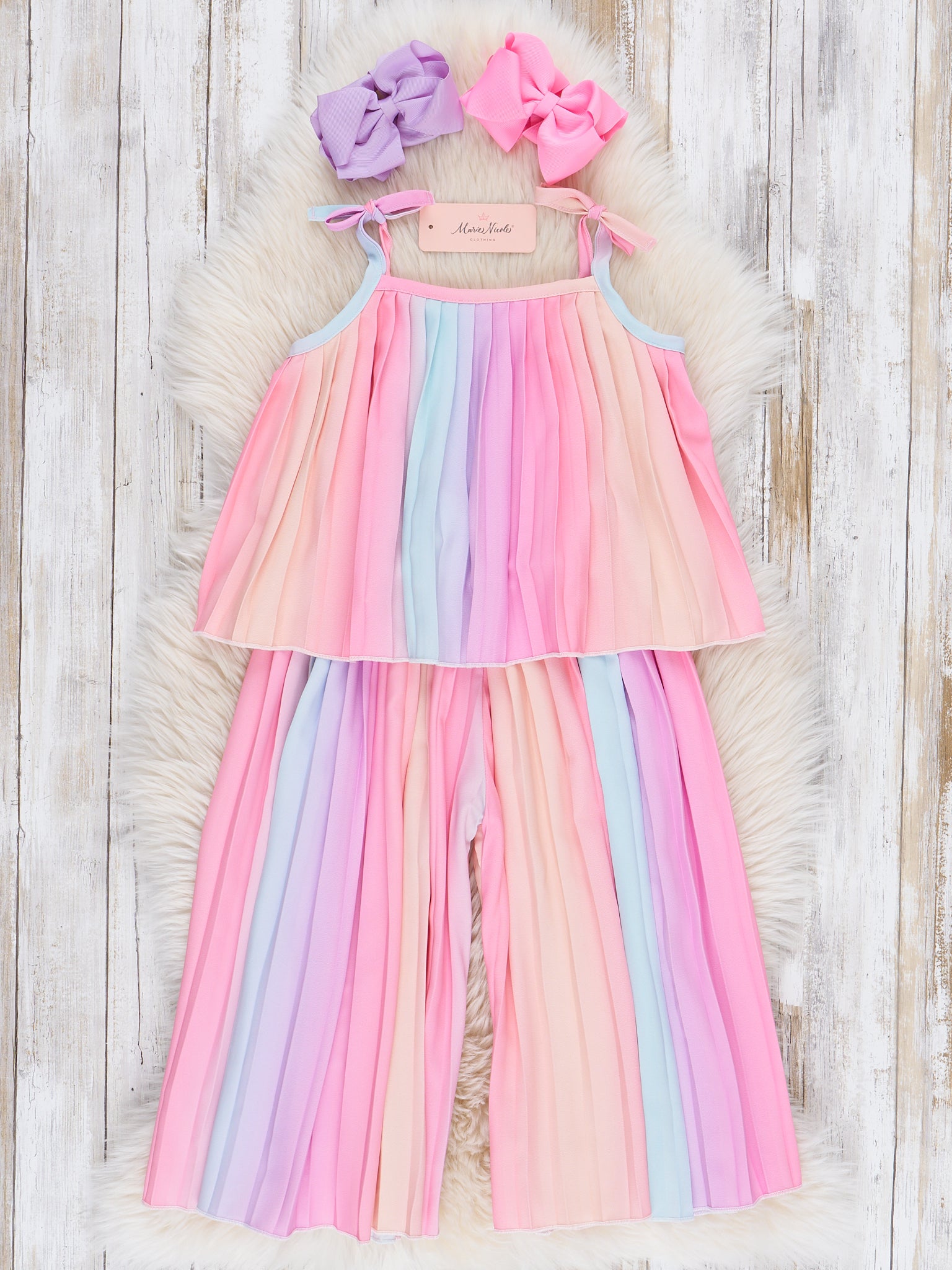 The Sherbet Pleats Wide Leg Outfit is a fresh and stylish choice perfect for back-to-school and sunny days. Featuring soft sherbet tones and elegant pleated wide-leg pants, this outfit from Marie Nicole Clothing combines comfort with sophisticated charm. Lightweight and breathable, it’s ideal for classroom adventures, family outings, or any occasion she wants to look effortlessly chic.