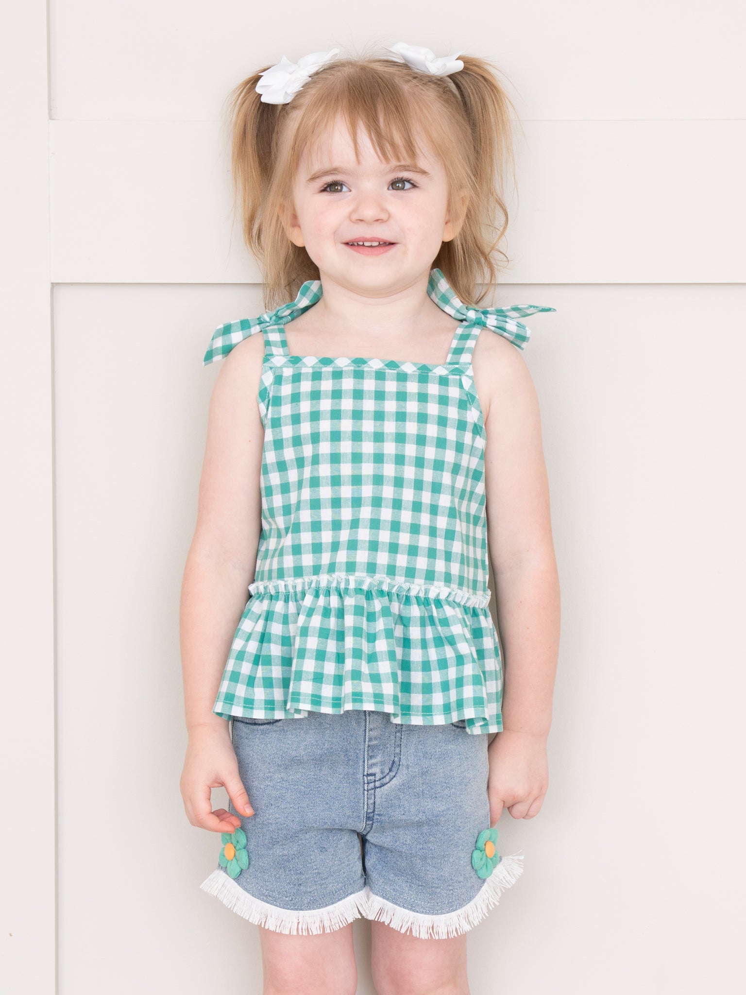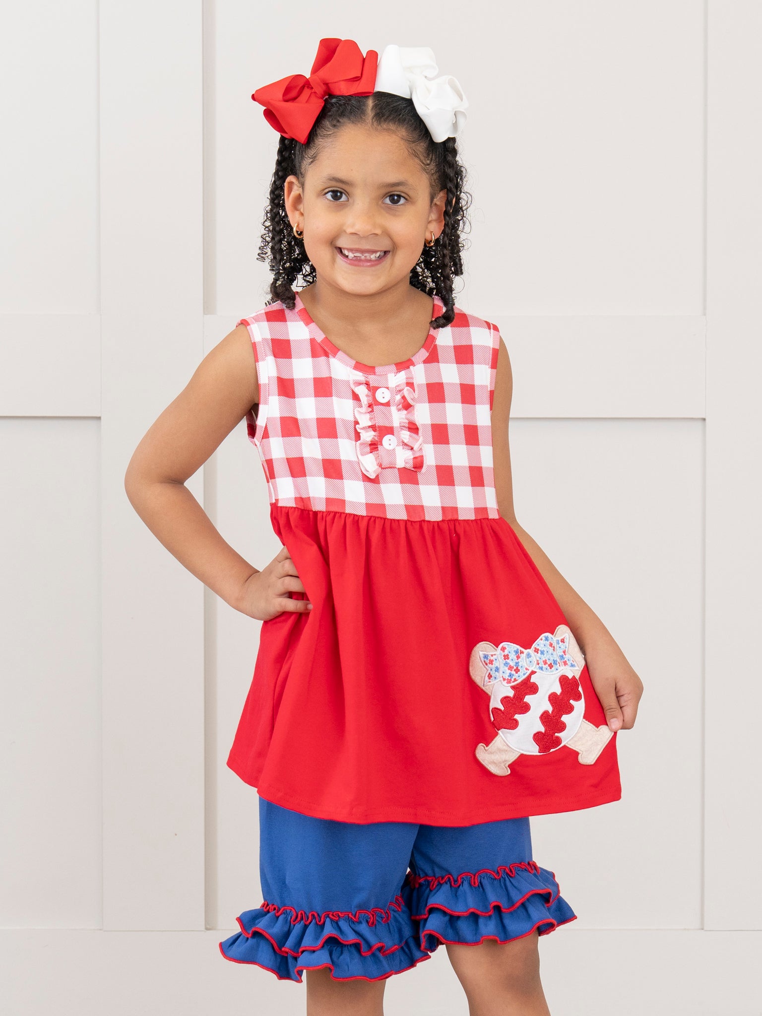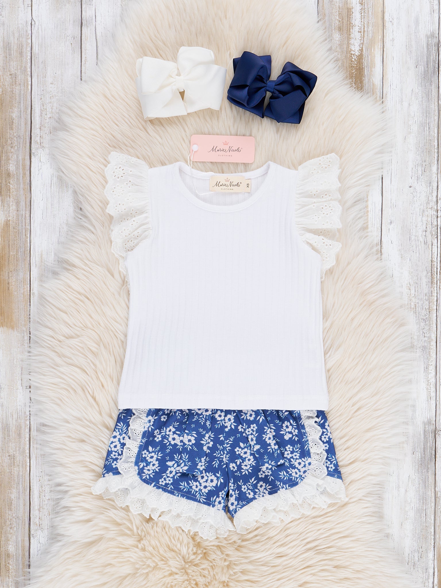 Embroidered Stars Ruffle Denim Shorts Outfit