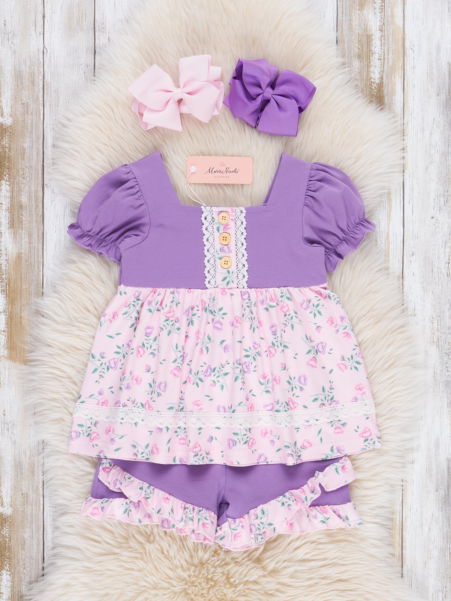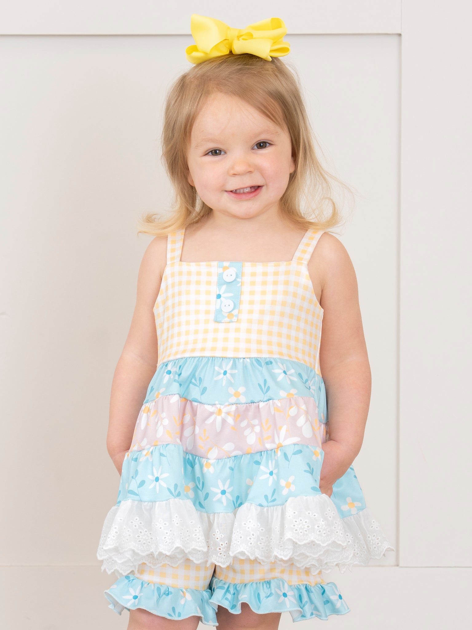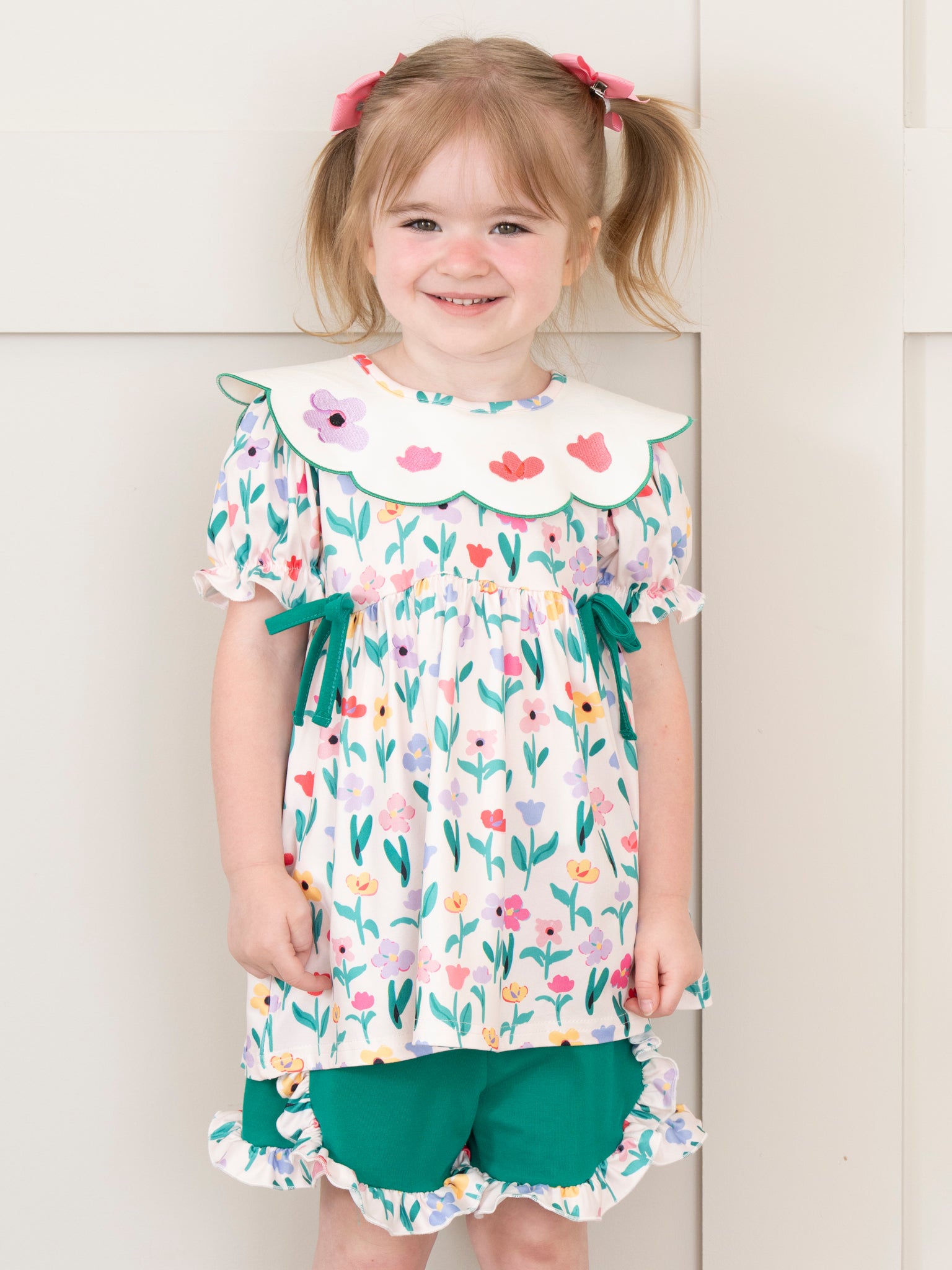 Embroidered Stars Ruffle Denim Shorts Outfit