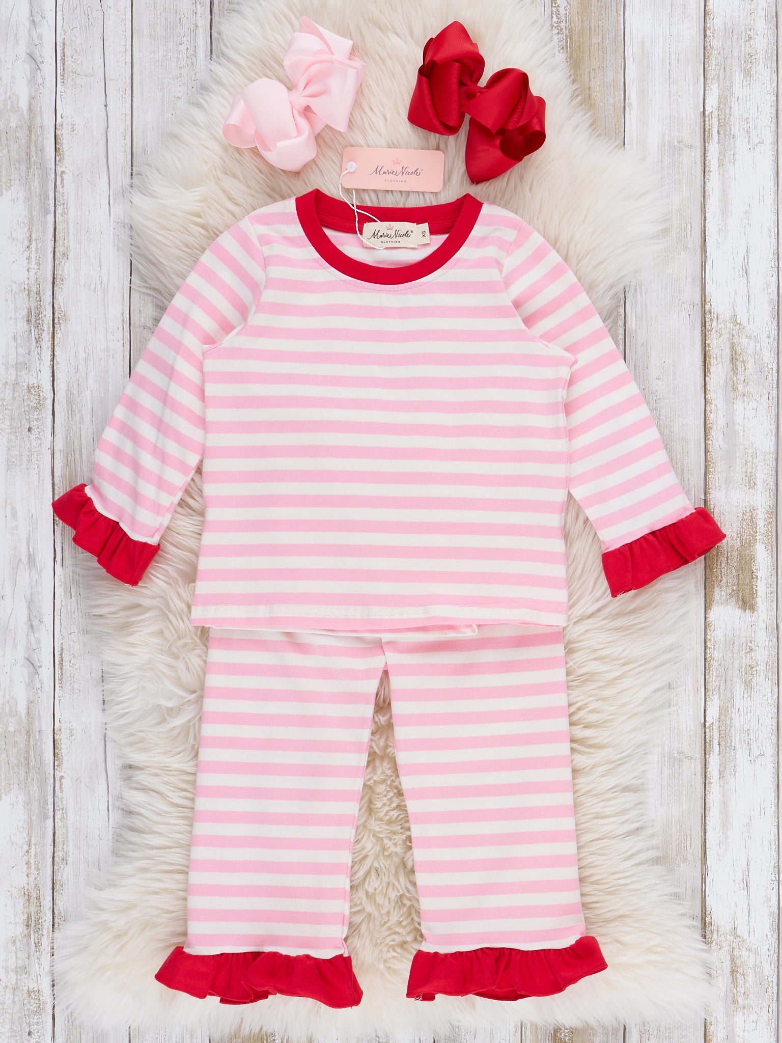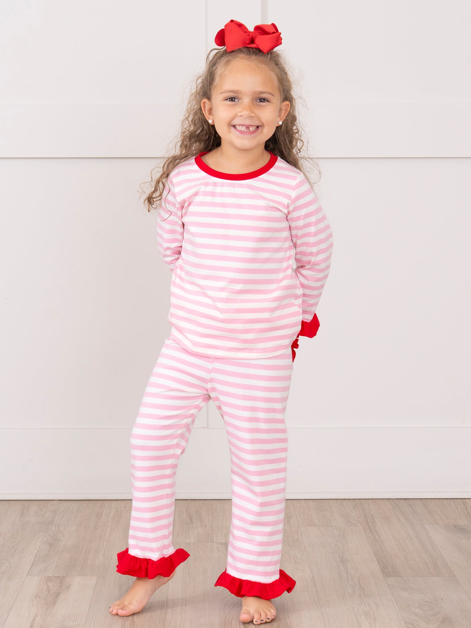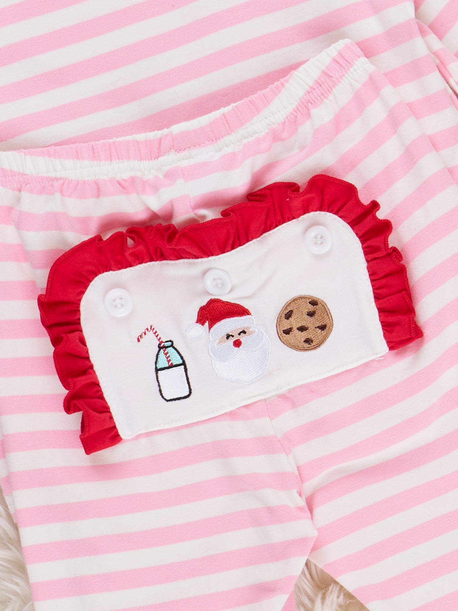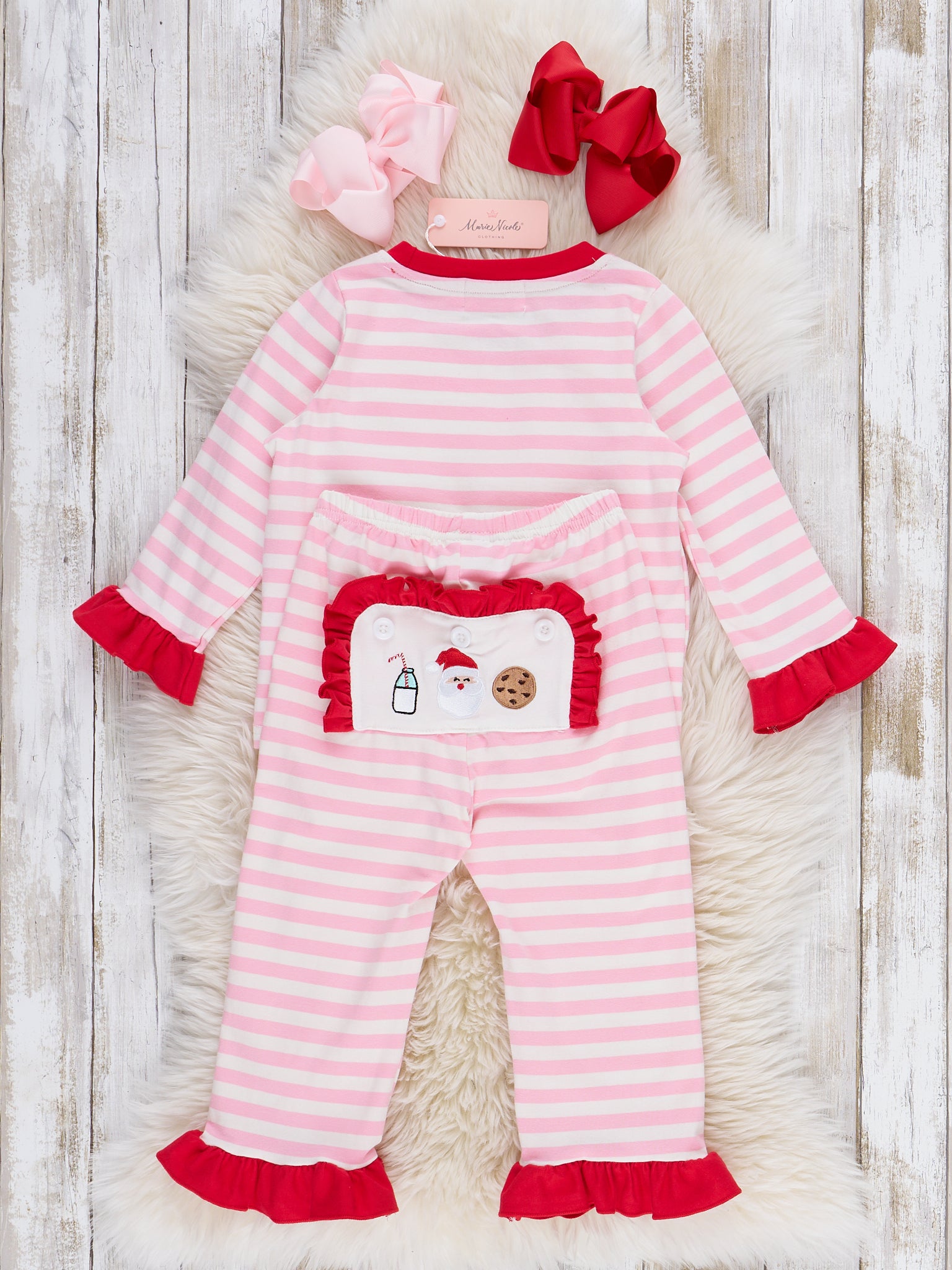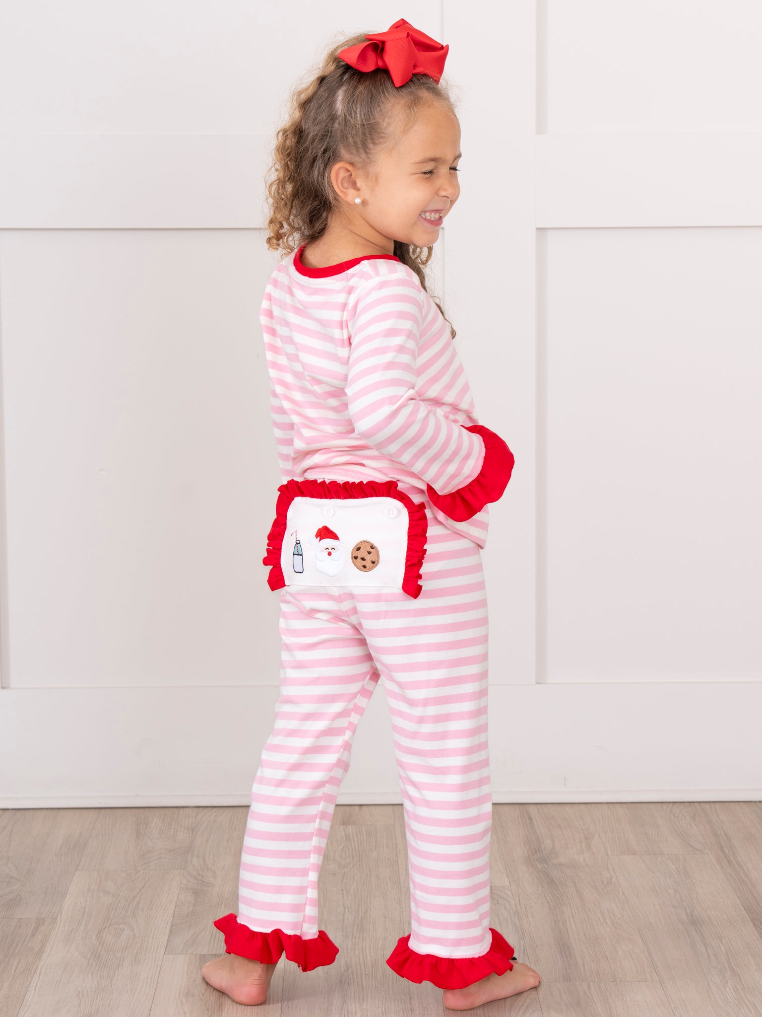 Get your little ones ready for a cozy and whimsical holiday season with our Santa Treat Time Embroidered Pajamas. These girls pajamas feature playful stripes and a festive trim. The asymmetrical zipper closure adds a touch of uniqueness, while the Santa cookies butt flap brings a dose of humor. (Don't worry--it doesn't actually open.) Don't forget to grab the matching sister set for double the fun!