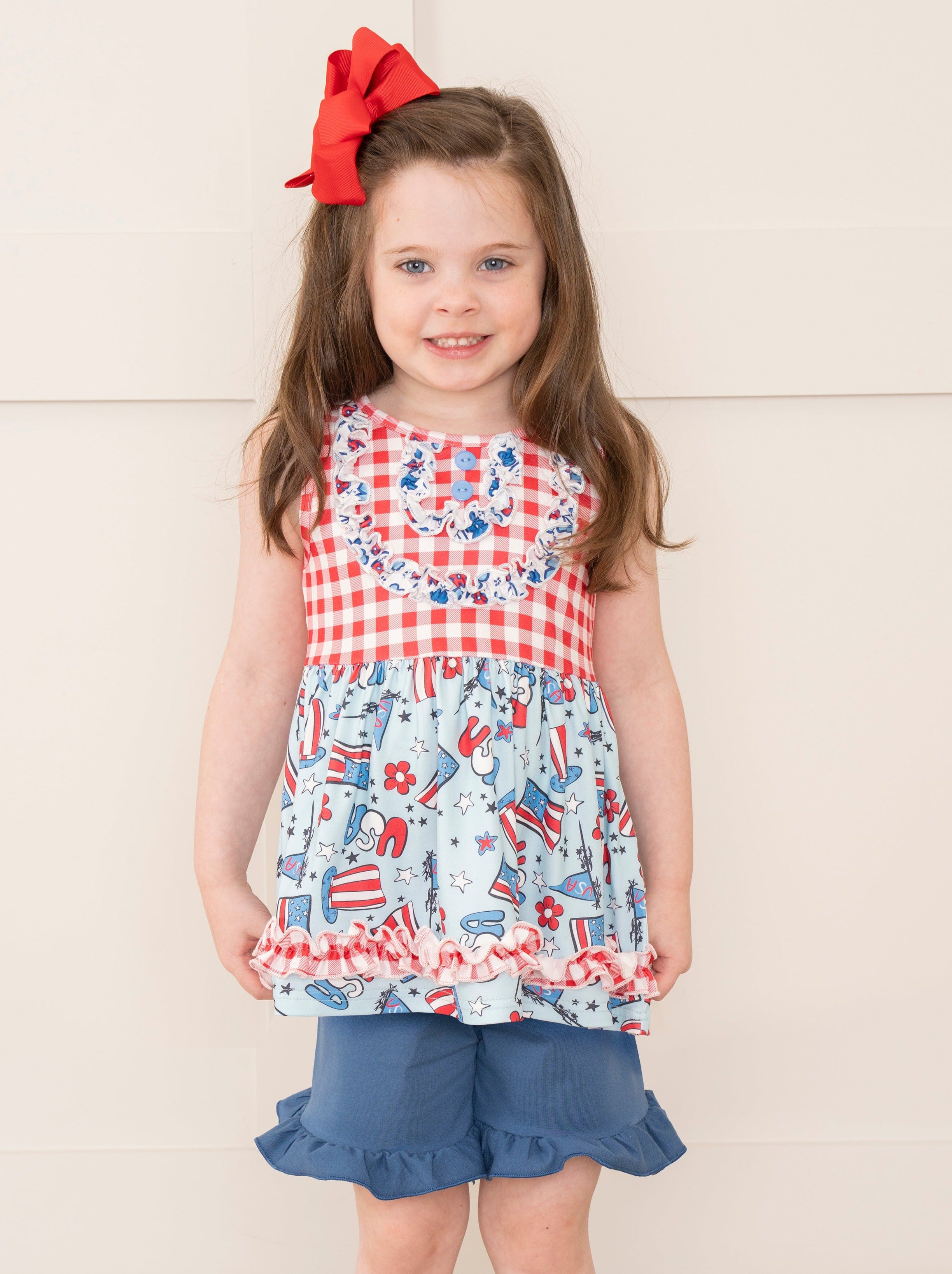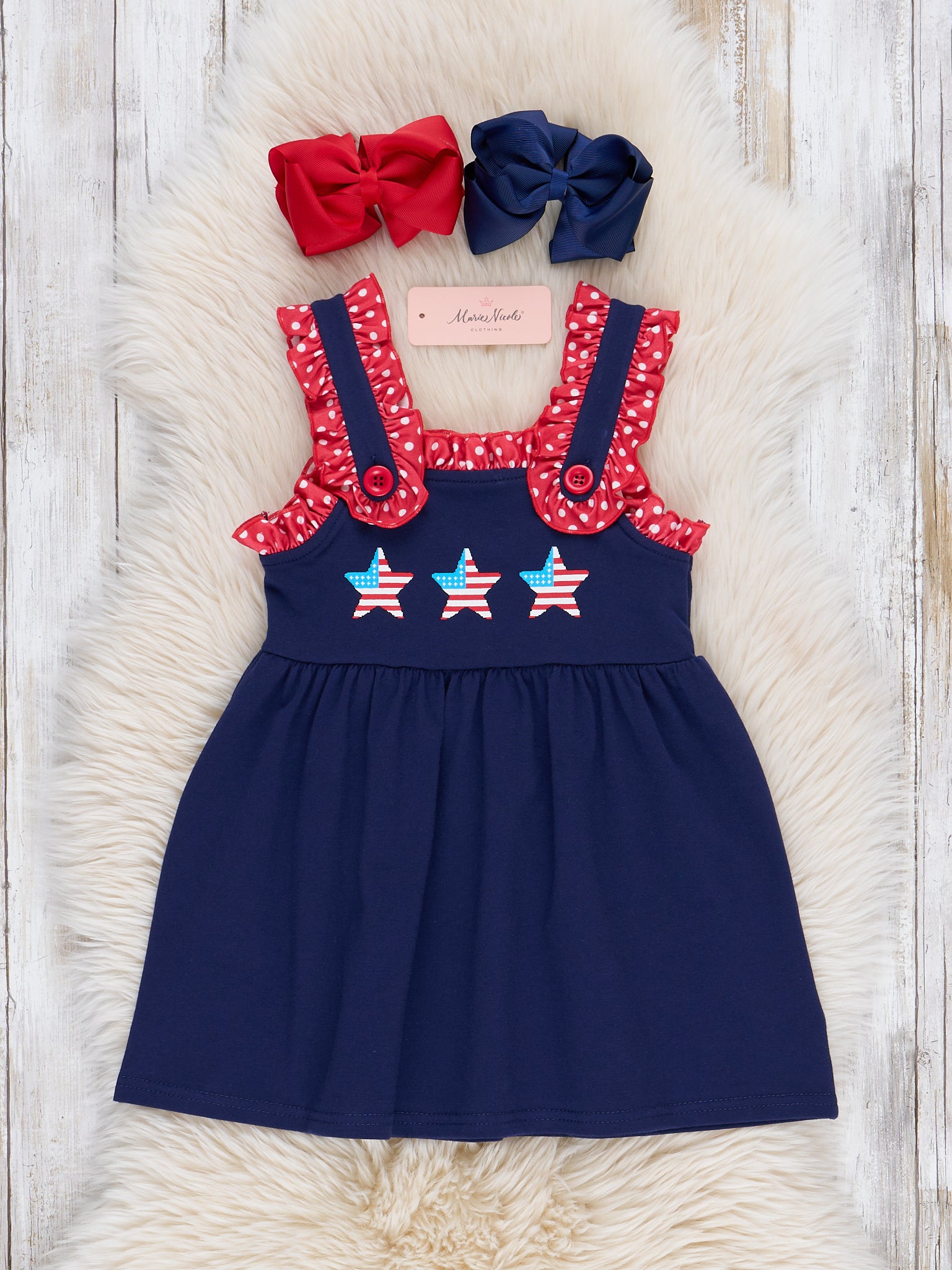 Looking for patriotic kids’ attire for the upcoming holiday? Marie Nicole has many eye-catching children’s outfits perfect for Memorial Day or July 4th. Don your kiddos in their best red, white, and blue to celebrate this summer. Skip the big-box store patriotic kids’ clothing this year and opt for a more distinctive choice with Marie Nicole Clothing.