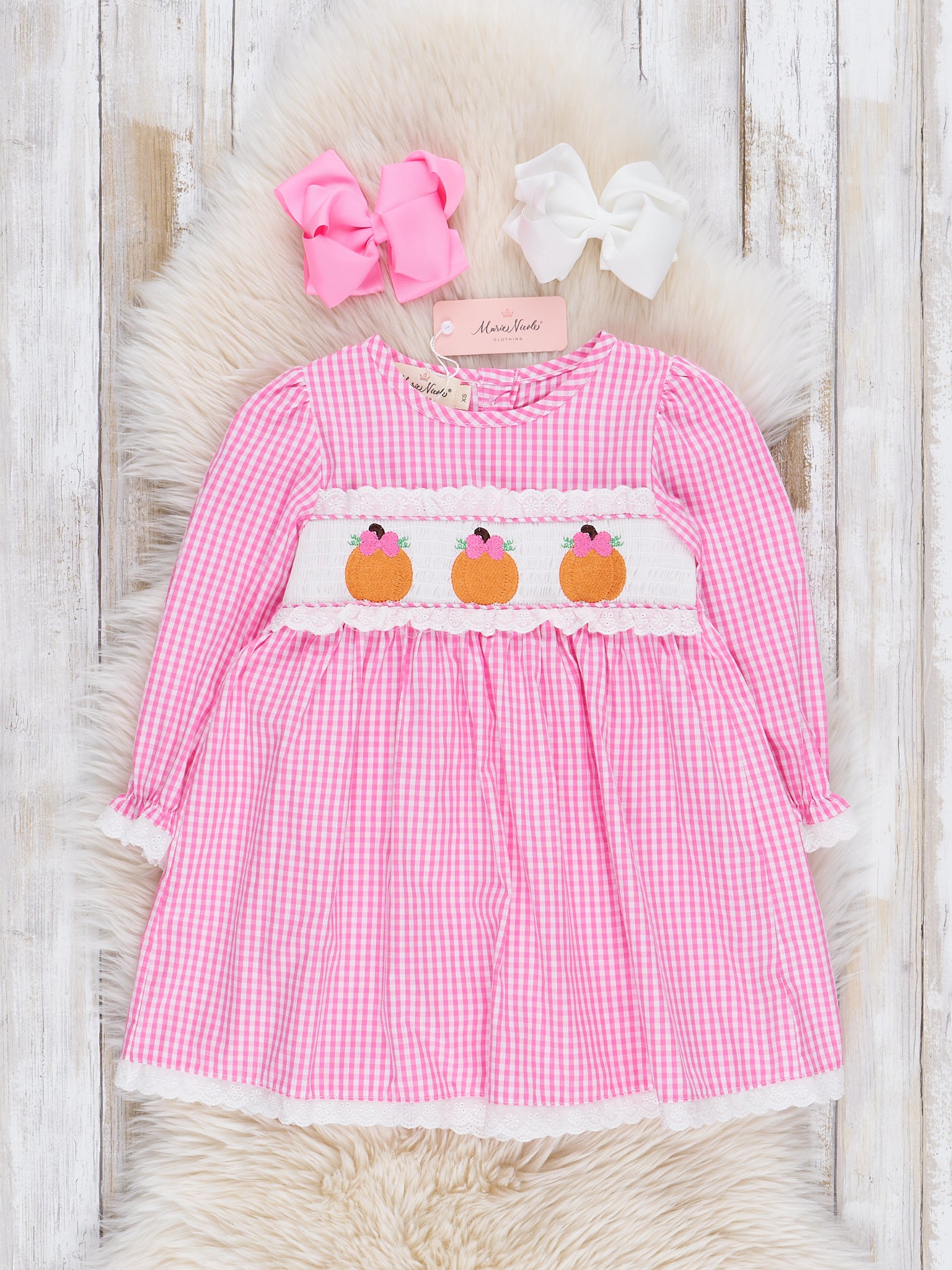 Pink Gingham Smocked Pumpkin Ruffle Dress