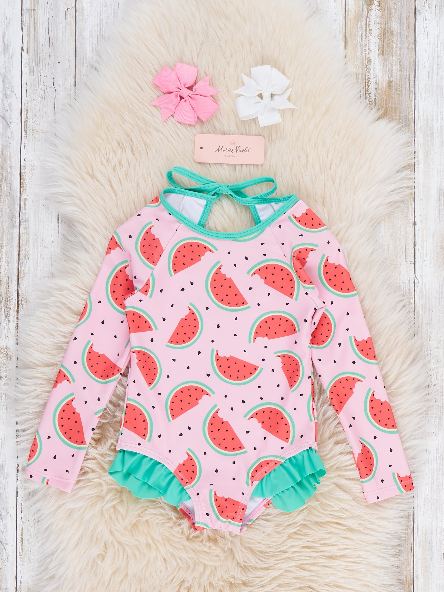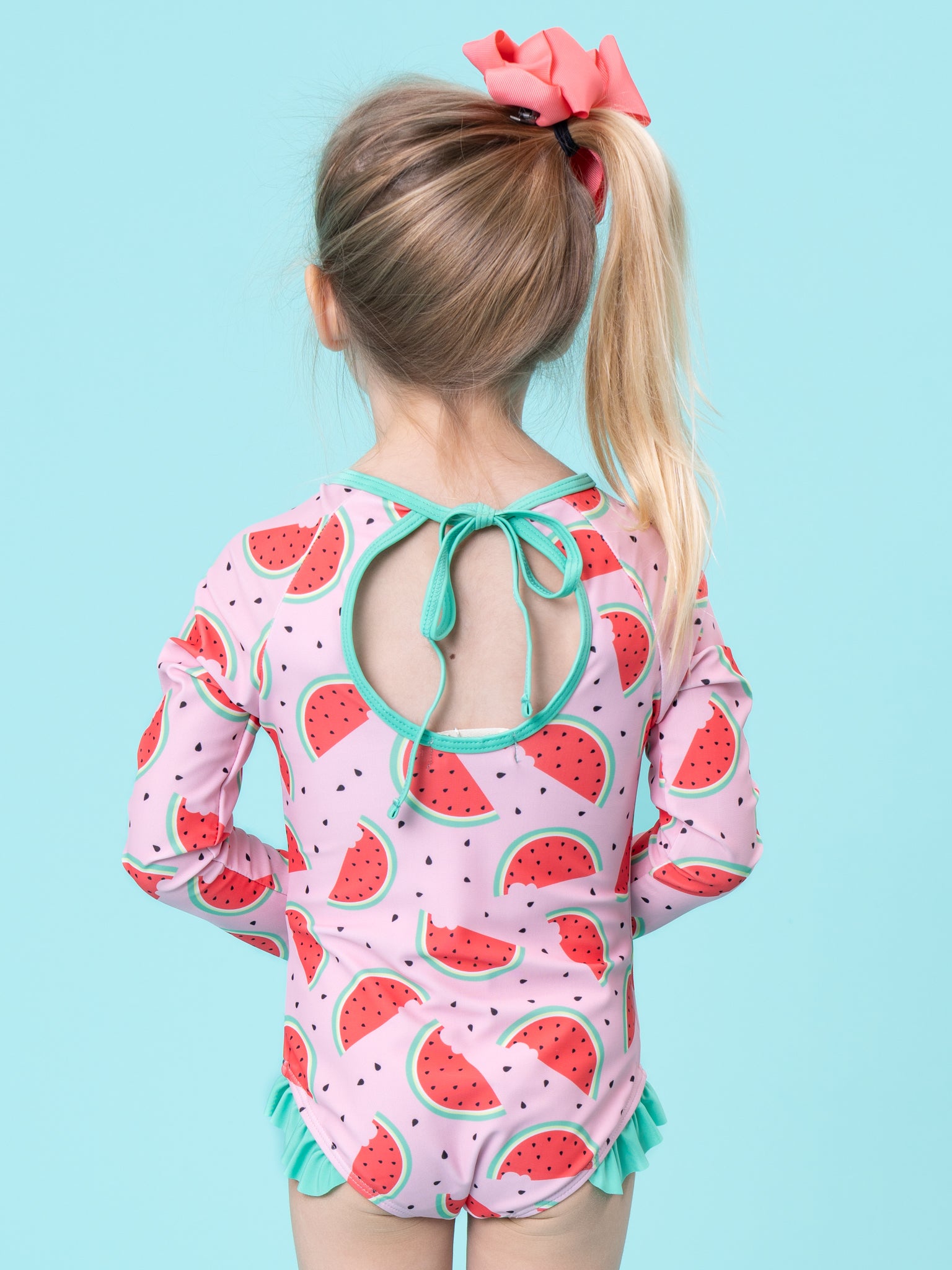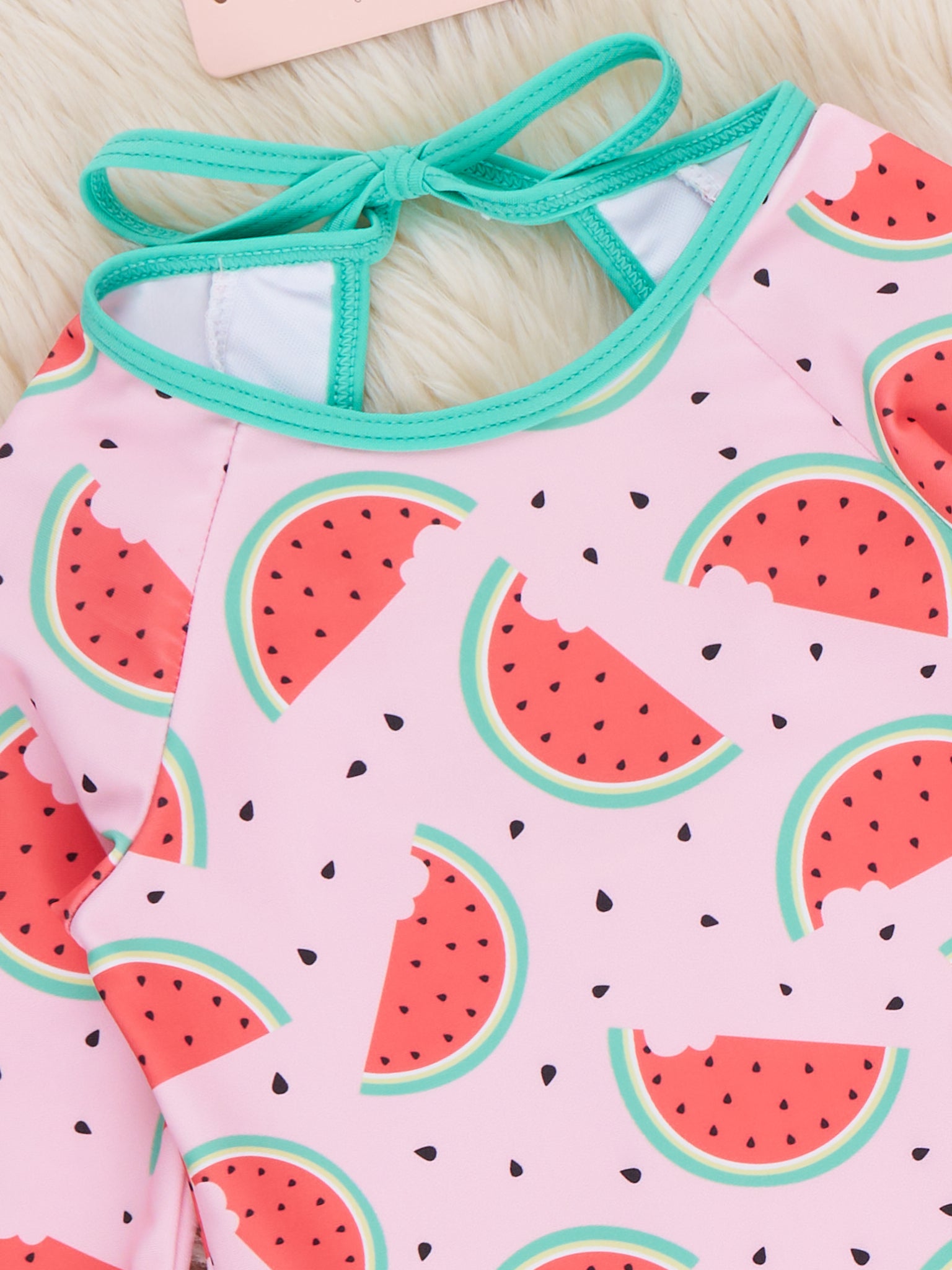 Smiley Rash Guard & Ruffle Bottoms Swimsuit